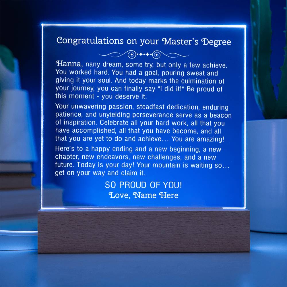 Your plaque will be crafted from premium acrylic with a professionally printed design for a polished look. It comes with a stylish wooden LED base, and you can choose between a USB plug-in option OR a cordless battery-operated option (requires 2 AAA batteries, not included). Both LED bases feature 7 vibrant colors, allowing the user to customize the lighting with various color changes and dynamic cycles.