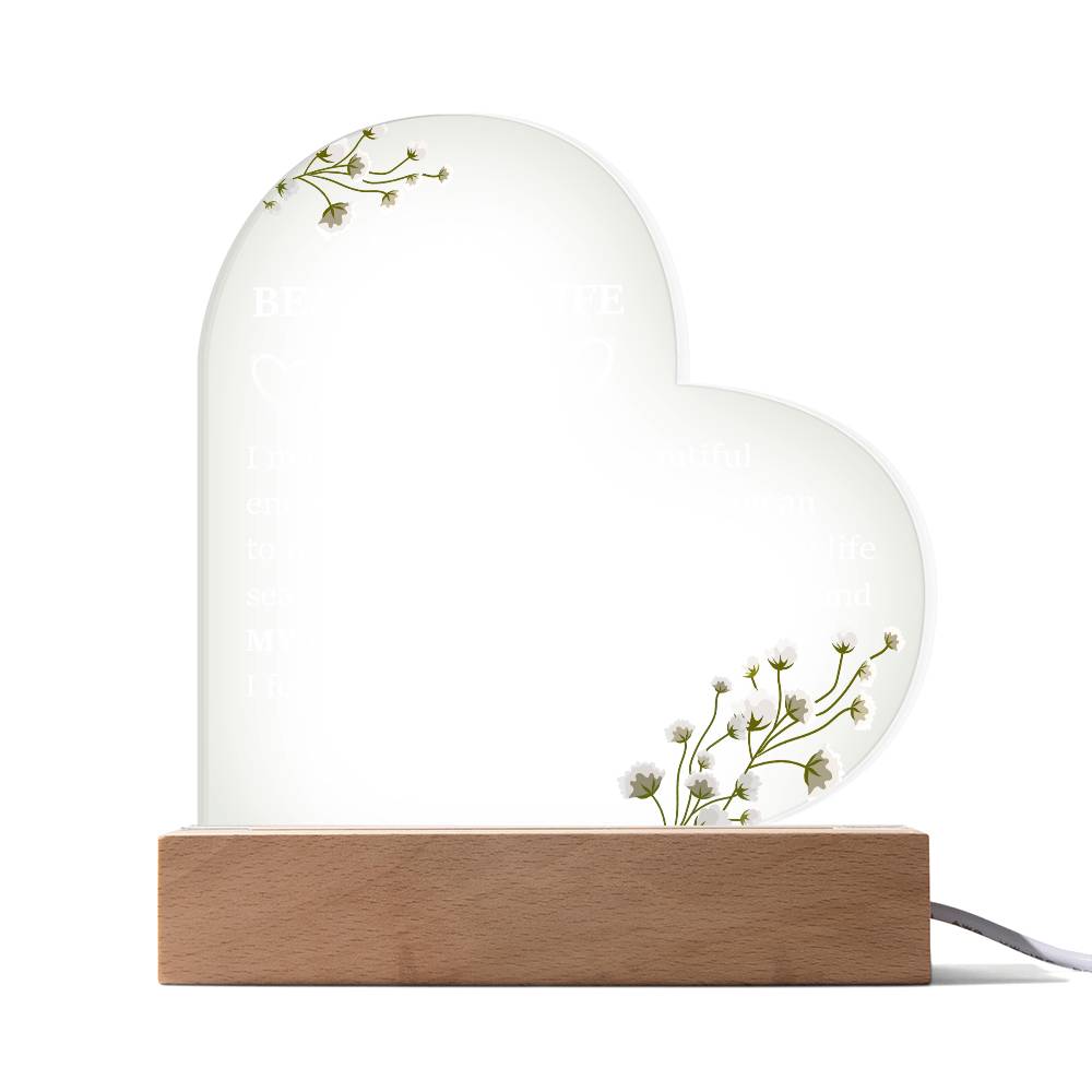 Your plaque will be crafted from premium acrylic with a professionally printed design for a polished look. It comes with a stylish wooden LED base, and you can choose between a USB plug-in option OR a cordless battery-operated option (requires 2 AAA batteries, not included). Both LED bases feature 7 vibrant colors, allowing the user to customize the lighting with various color changes and dynamic cycles.
