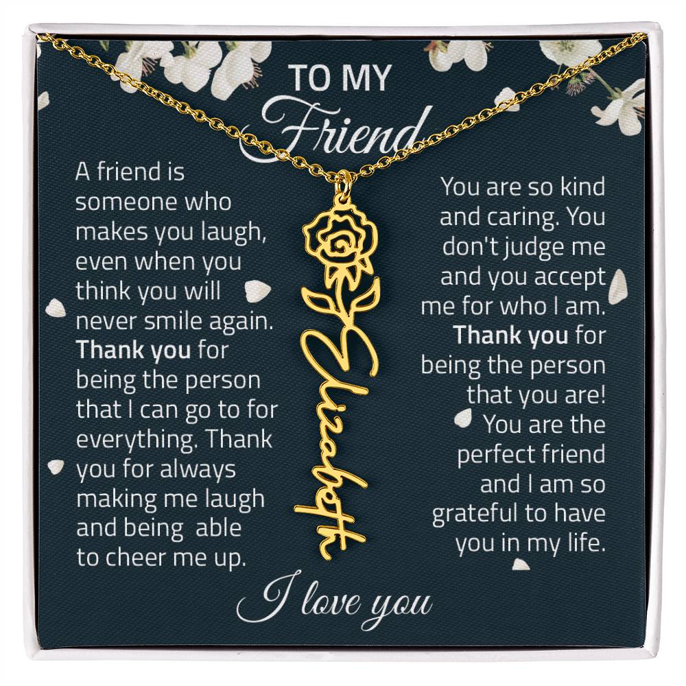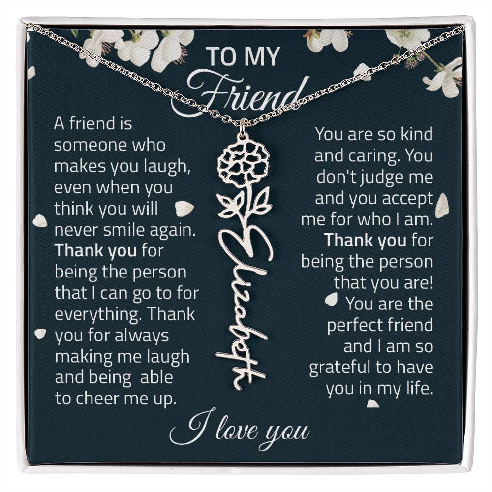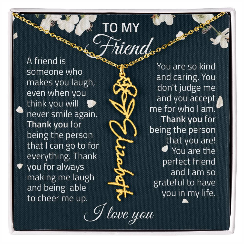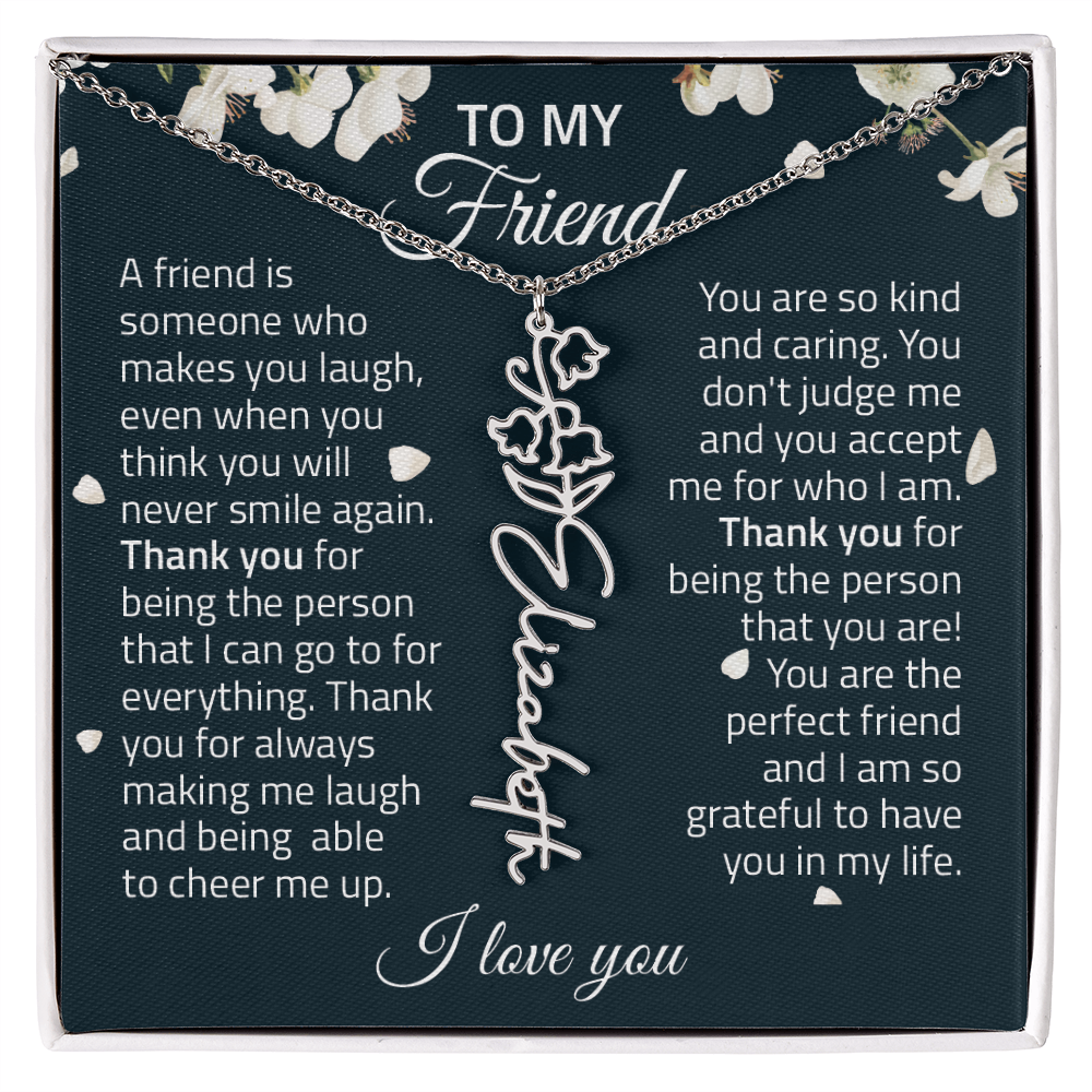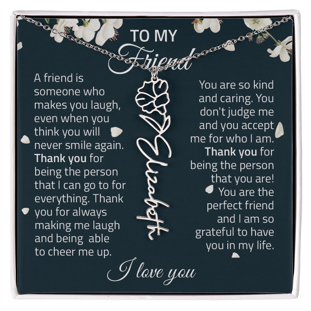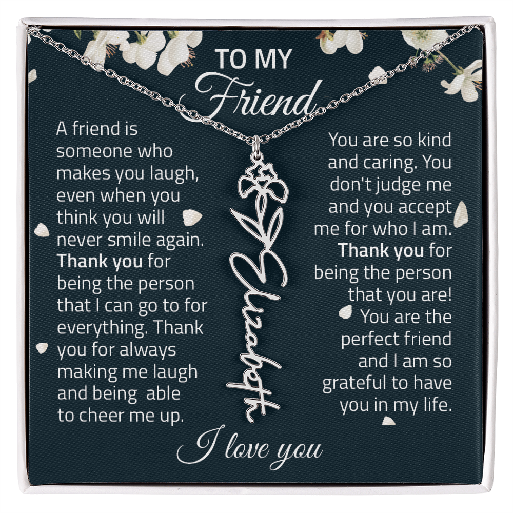 Need a gift that's as unique as she is? Then look no further than our Flower Name Necklace! With a customizable birth flower design, this necklace is a meaningful addition to any jewelry collection. Whether you're dressing up for a special occasion or simply want to add some flair to your everyday look, this necklace is perfect for your special someone. Handcrafted from high-quality materials, it is both stylish and durable. So why wait? Personalize your own floral name necklace today!