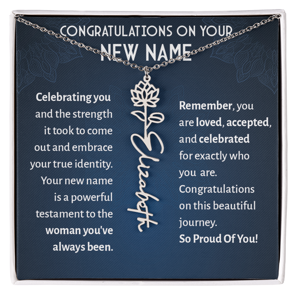 Need a gift that's as unique as she is? Then look no further than our Flower Name Necklace! With a customizable birth flower design, this necklace is a meaningful addition to any jewelry collection. Whether you're dressing up for a special occasion or simply want to add some flair to your everyday look, this necklace is perfect for your special someone. Handcrafted from high-quality materials, it is both stylish and durable. So why wait? Personalize your own floral name necklace today!