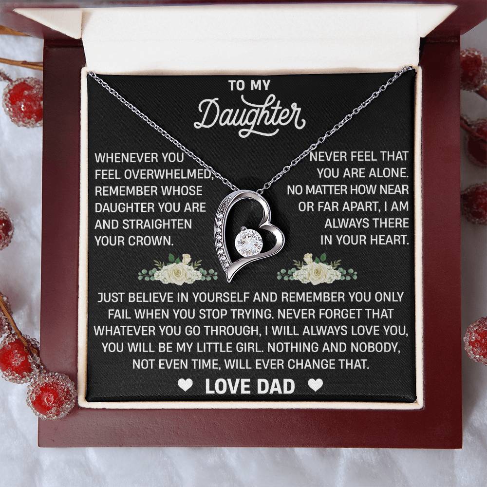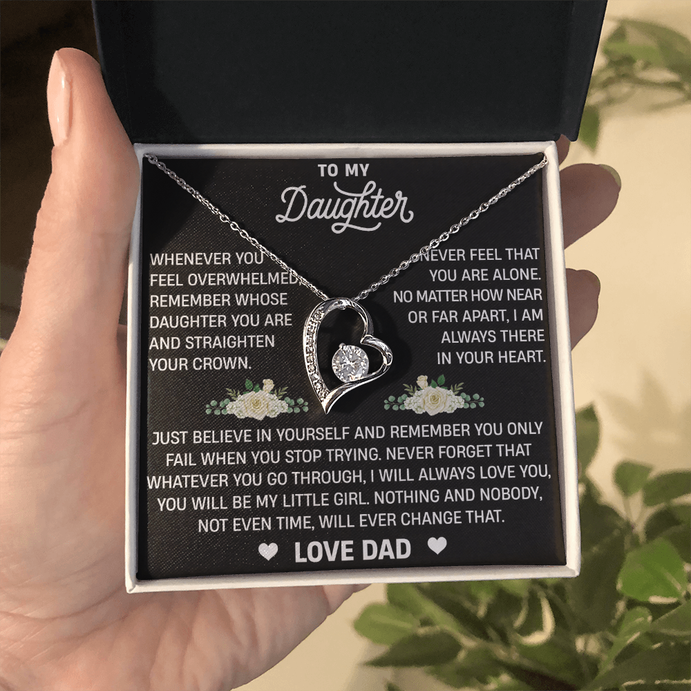 The dazzling Forever Love Necklace is sure to make her heart melt! This necklace features a stunning 6.5mm CZ crystal surrounded by a polished heart pendant embellished with smaller crystals to add extra sparkle and shine. Beautifully crafted with either a white gold or yellow gold finish, be sure to give her a classic gift she can enjoy everyday.