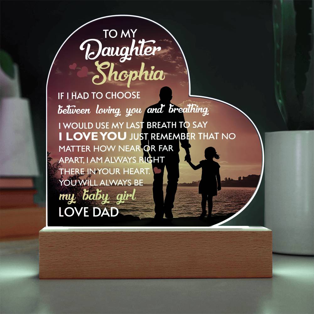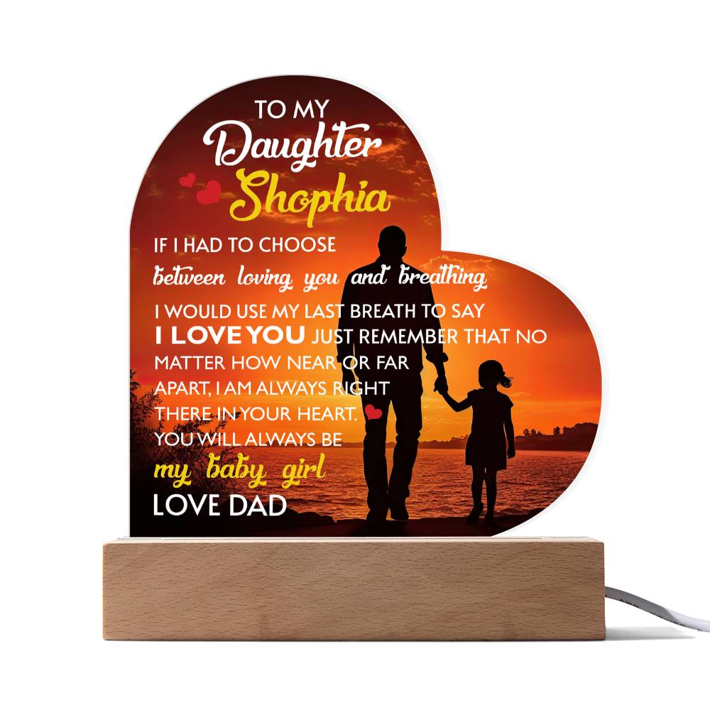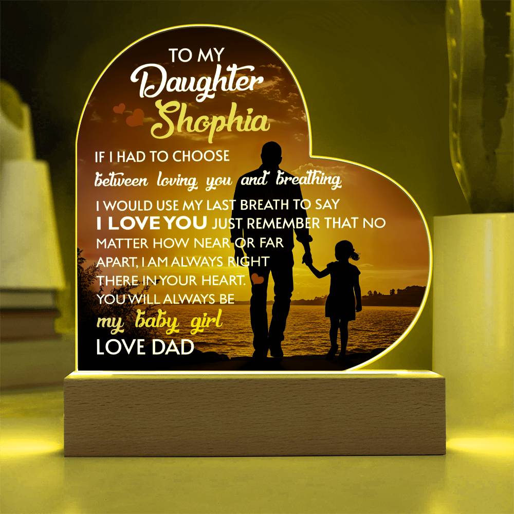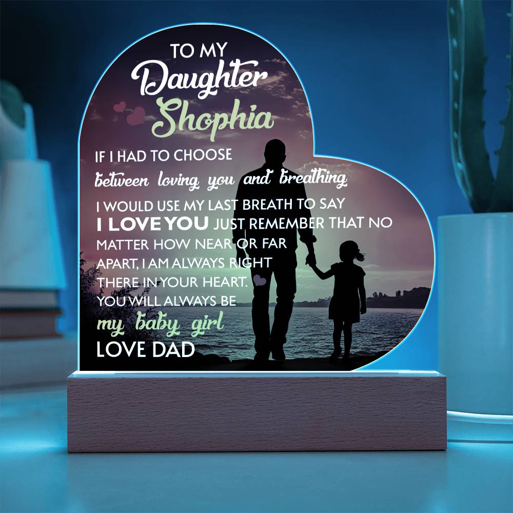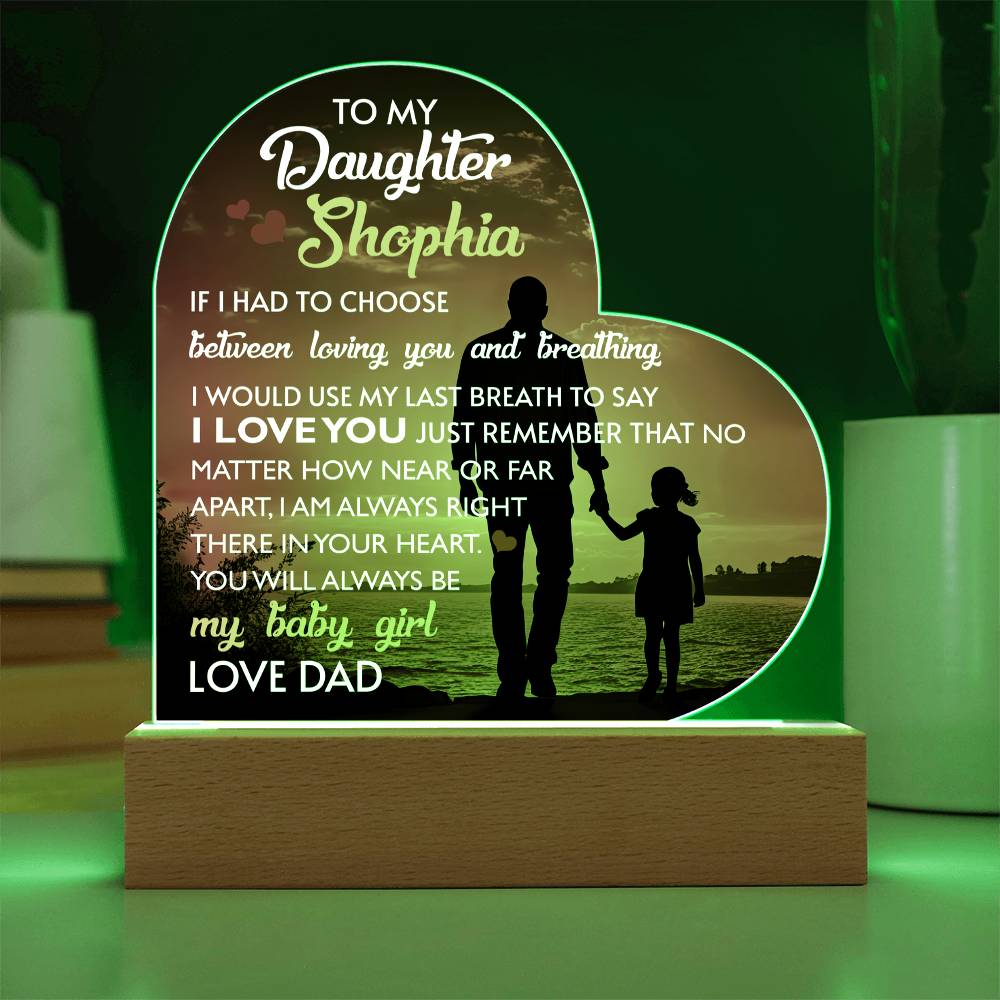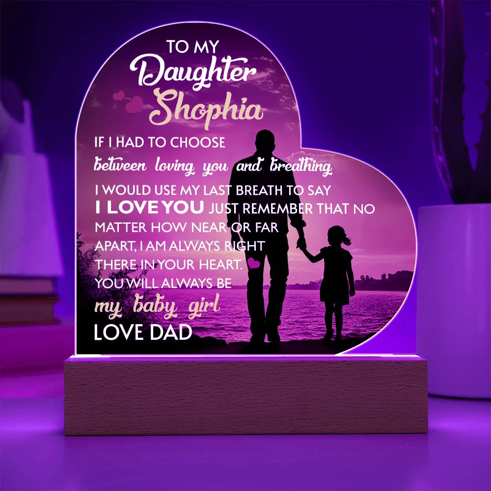 Your plaque will be crafted from premium acrylic with a professionally printed design for a polished look. It comes with a stylish wooden LED base, and you can choose between a USB plug-in option OR a cordless battery-operated option (requires 2 AAA batteries, not included). Both LED bases feature 7 vibrant colors, allowing the user to customize the lighting with various color changes and dynamic cycles.