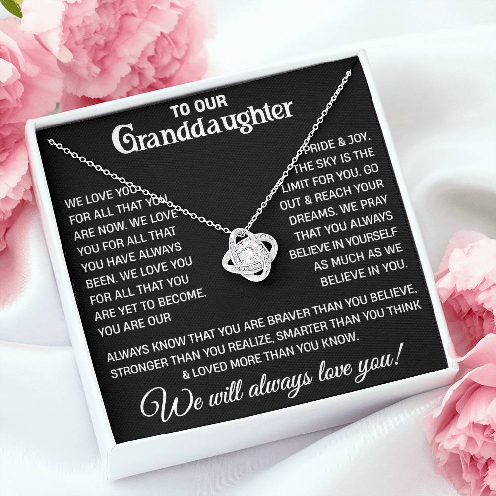 Imagine her reaction receiving this beautiful Love Knot Necklace. Representing an unbreakable bond between two souls, this piece features a beautiful pendant embellished with premium cubic zirconia crystals. Surprise your loved one with this gorgeous gift today!