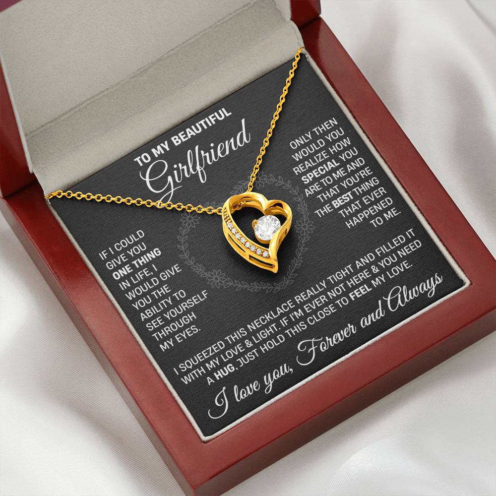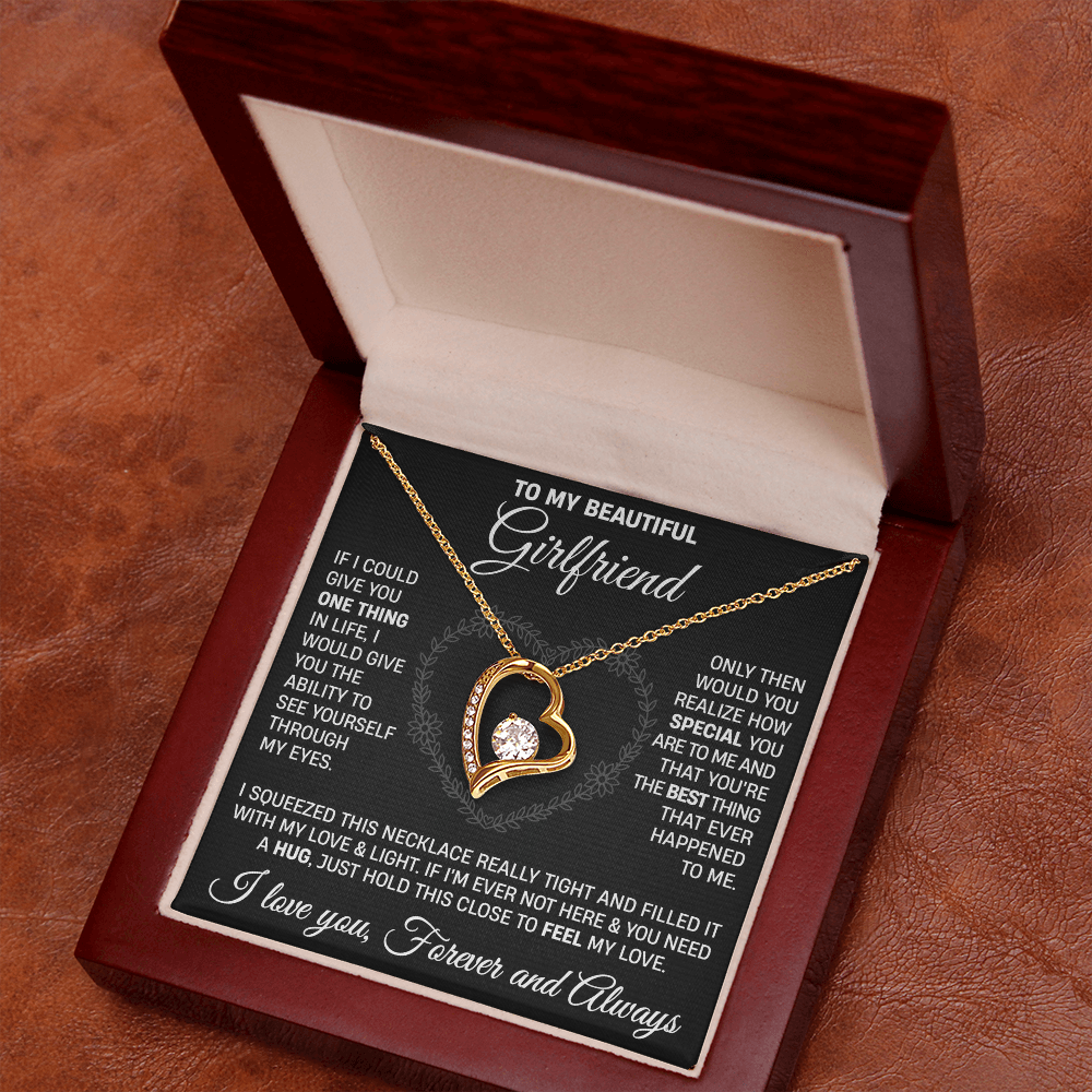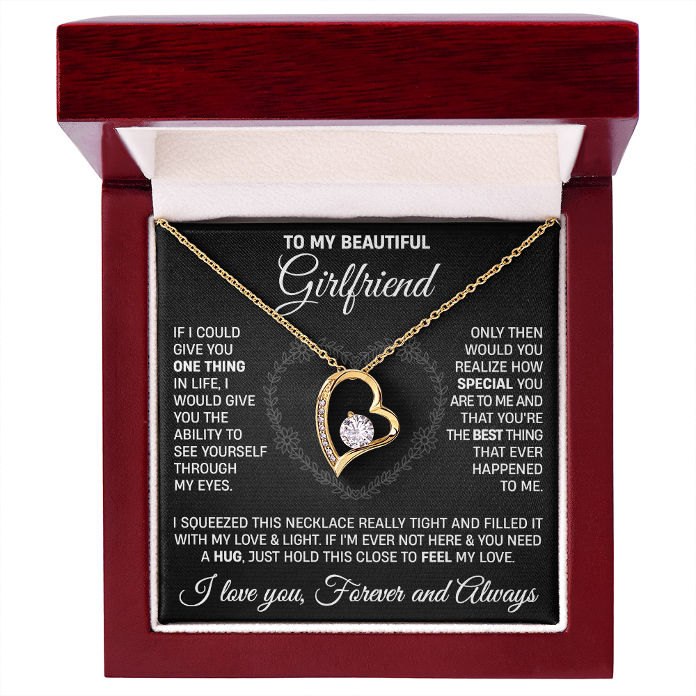 The dazzling Forever Love Necklace is sure to make her heart melt! This necklace features a stunning 6.5mm CZ crystal surrounded by a polished heart pendant embellished with smaller crystals to add extra sparkle and shine. Beautifully crafted with either a white gold or yellow gold finish, be sure to give her a classic gift she can enjoy everyday.