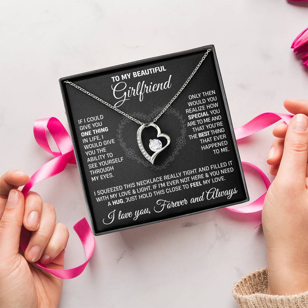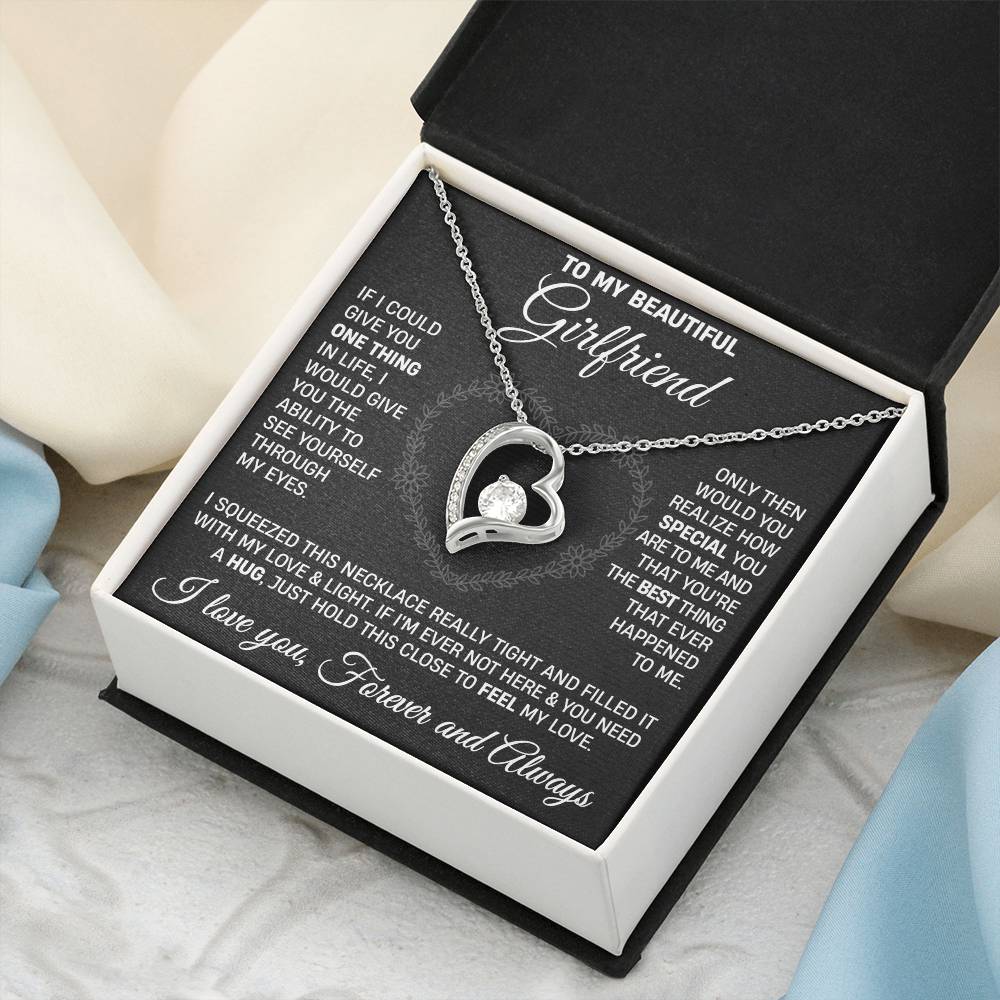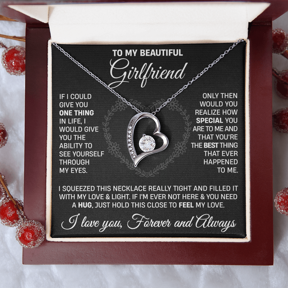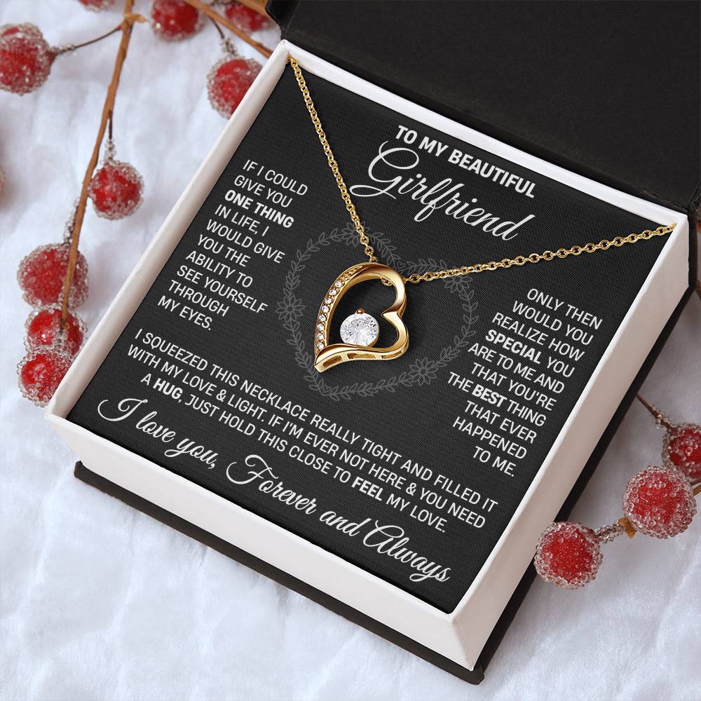 The dazzling Forever Love Necklace is sure to make her heart melt! This necklace features a stunning 6.5mm CZ crystal surrounded by a polished heart pendant embellished with smaller crystals to add extra sparkle and shine. Beautifully crafted with either a white gold or yellow gold finish, be sure to give her a classic gift she can enjoy everyday.