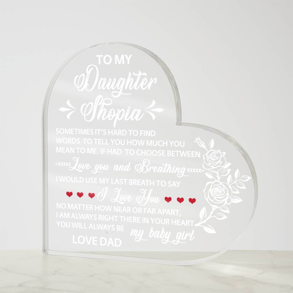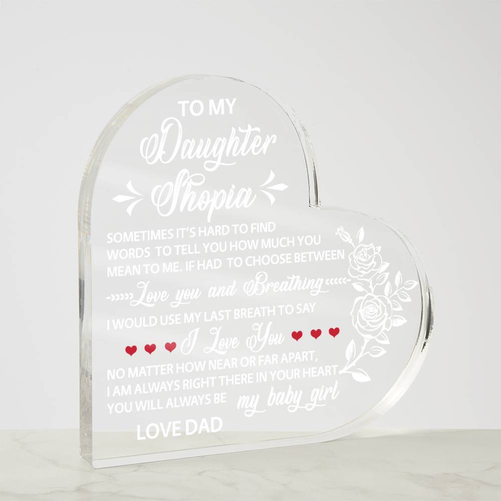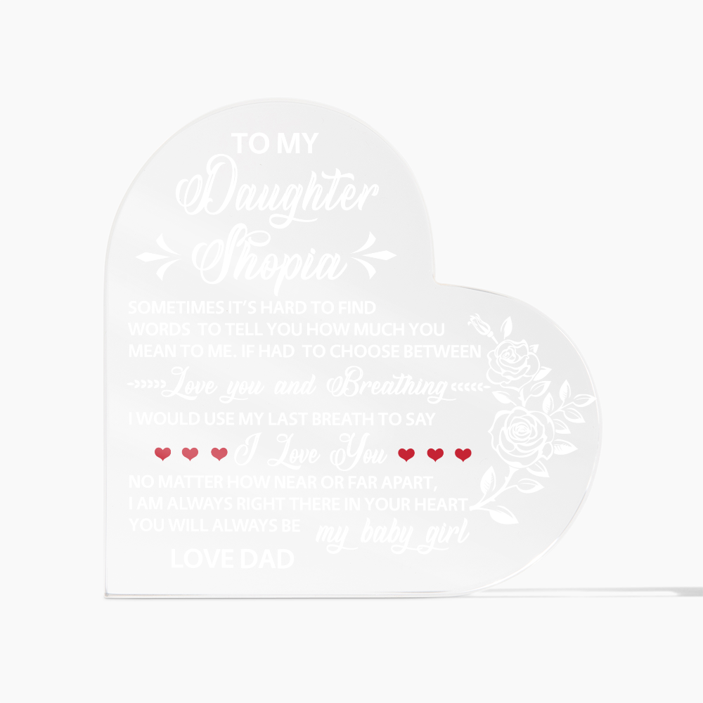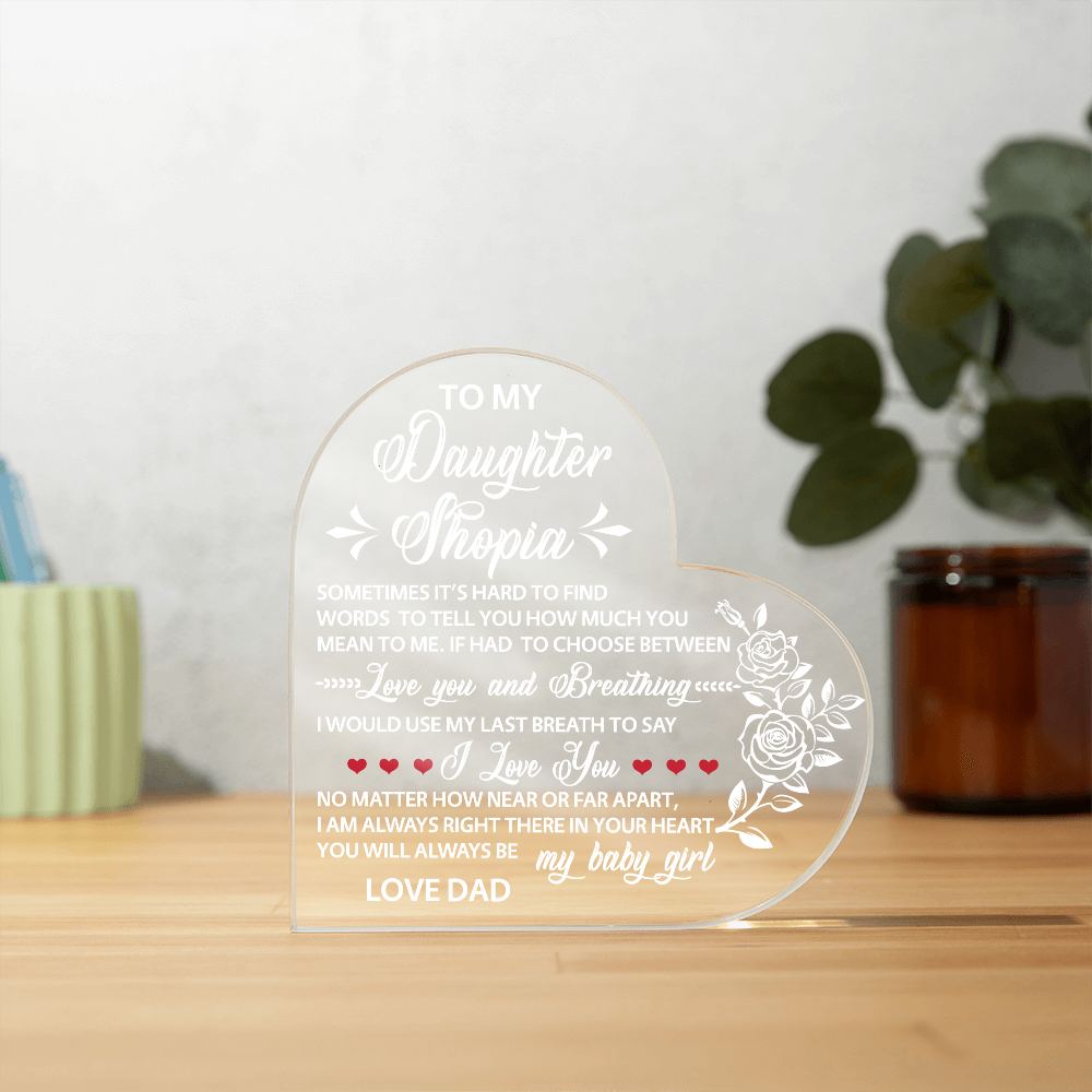 Show your loved ones how much you care with our Printed Heart Shaped Acrylic Plaque! Crafted with precision and care, this stunning piece of art is a perfect expression of your heartfelt emotions. Made from premium quality acrylic, it boasts a crystal-clear finish that catches the light, adding a touch of elegance to any space. The vibrant printed design creates a unique gift giving experience that will leave your special someone speechless! This is the ideal present for your beloved partner, family members, or dear friends on special occasions like anniversaries, weddings, birthdays, or Valentine's Day. Let your loved ones know how much they mean to you by purchasing today!