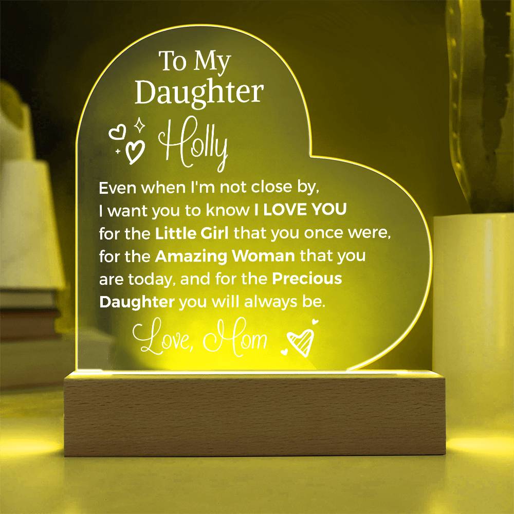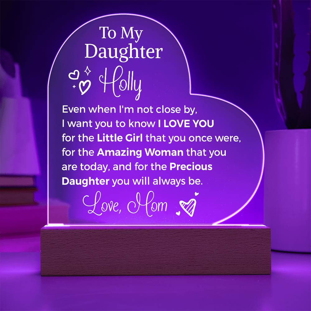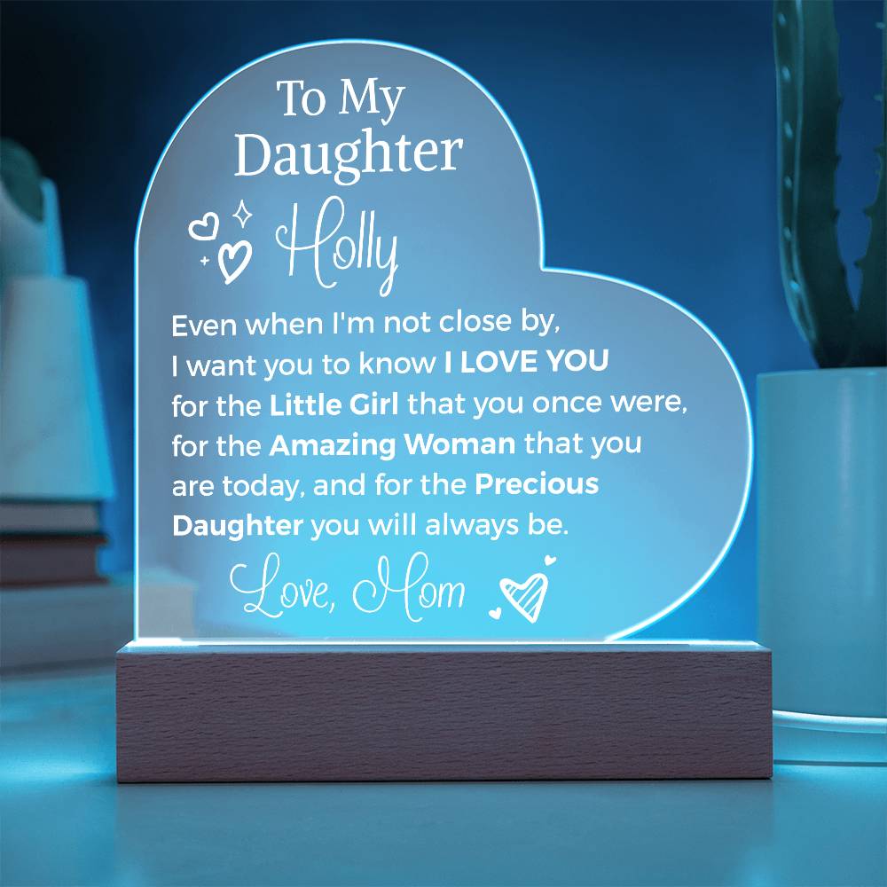 Your plaque will be crafted from premium acrylic with a professionally printed design for a polished look. It comes with a stylish wooden LED base, and you can choose between a USB plug-in option OR a cordless battery-operated option (requires 2 AAA batteries, not included). Both LED bases feature 7 vibrant colors, allowing the user to customize the lighting with various color changes and dynamic cycles.