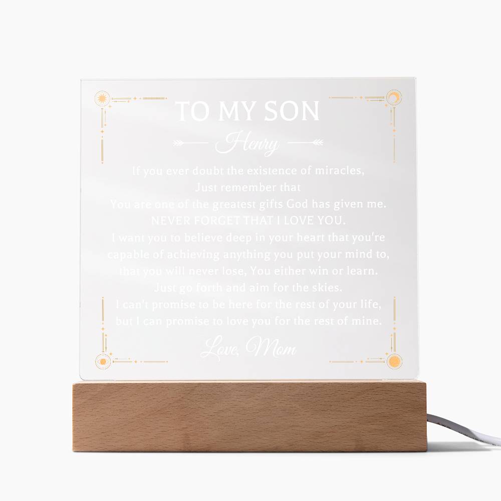 Your plaque will be crafted from premium acrylic with a professionally printed design for a polished look. It comes with a stylish wooden LED base, and you can choose between a USB plug-in option OR a cordless battery-operated option (requires 2 AAA batteries, not included). Both LED bases feature 7 vibrant colors, allowing the user to customize the lighting with various color changes and dynamic cycles.