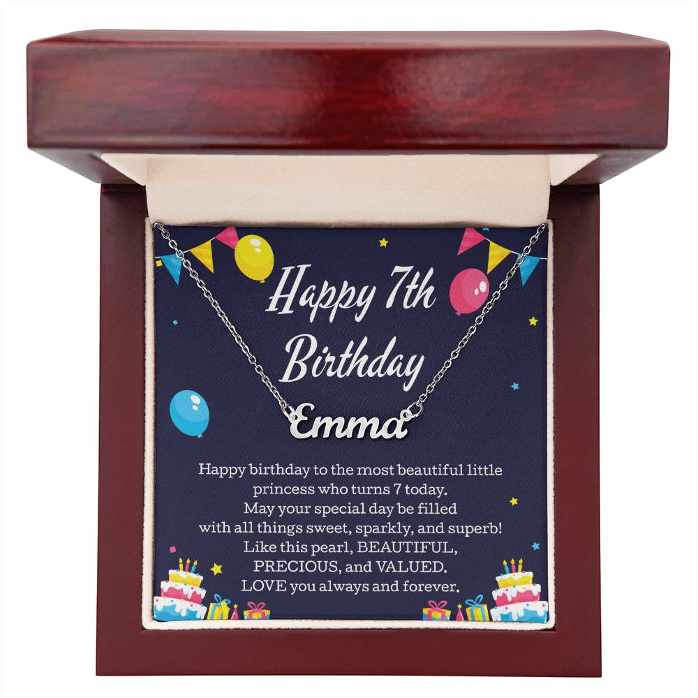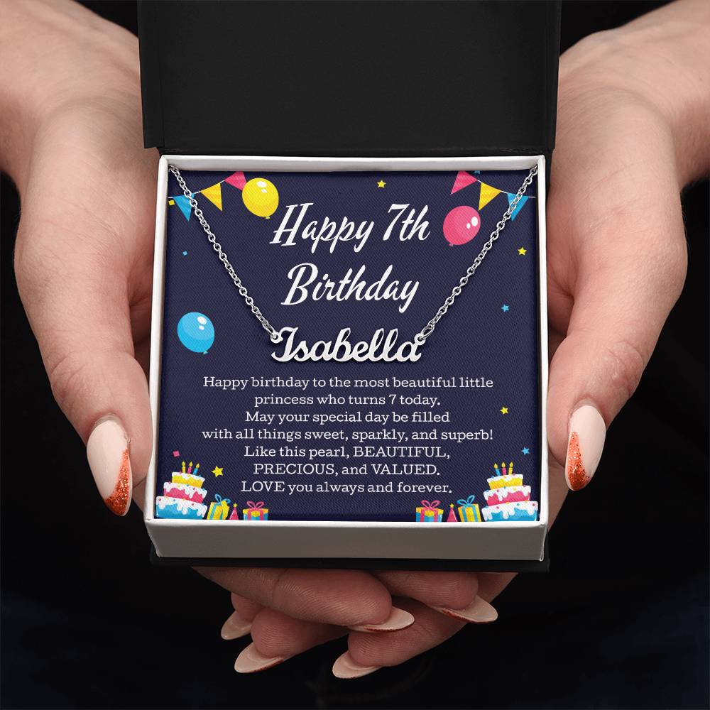 7th Birthday Gift Seventh Birthday Necklace Name Custom for Girls Personalized Birthday Gifts for Kids, Granddaughter, Stepdaughter, Niece