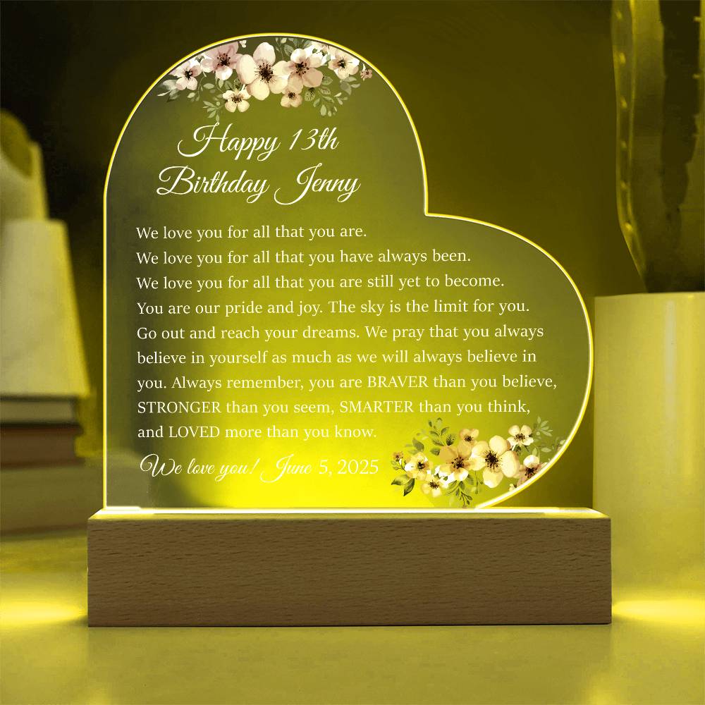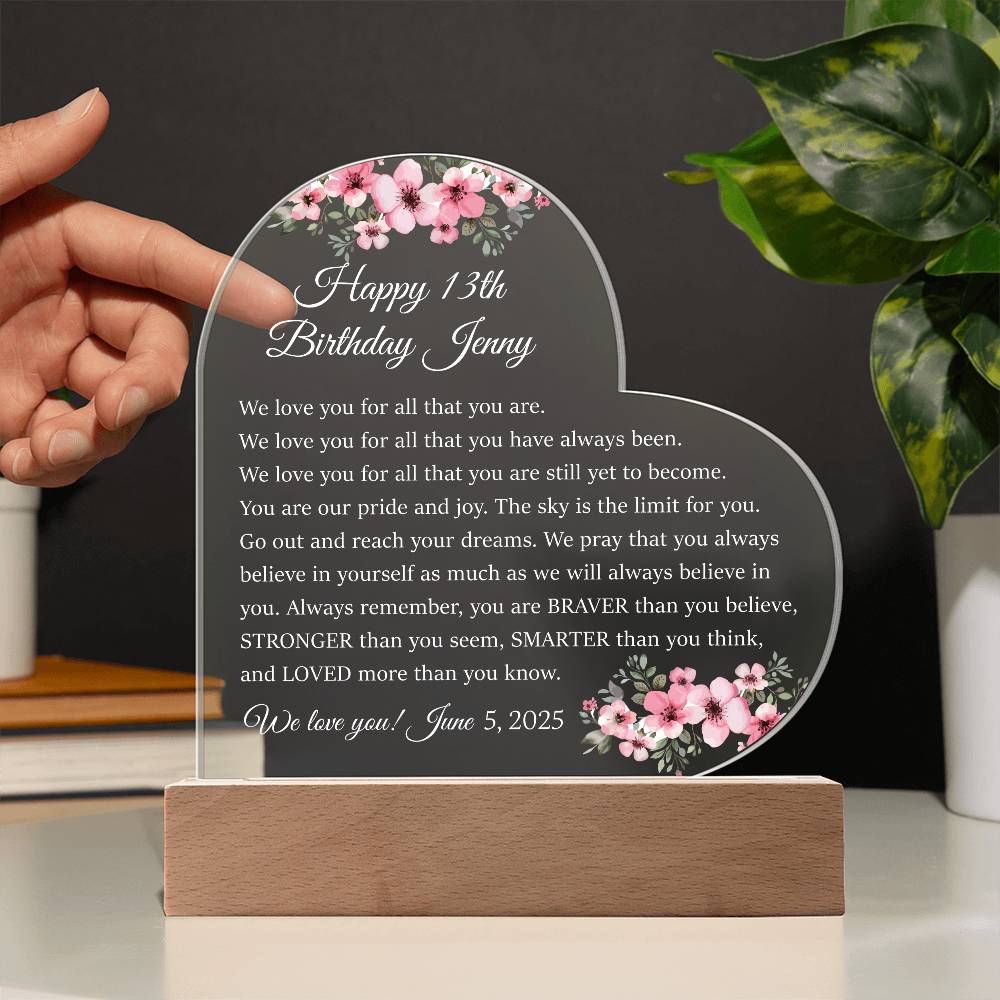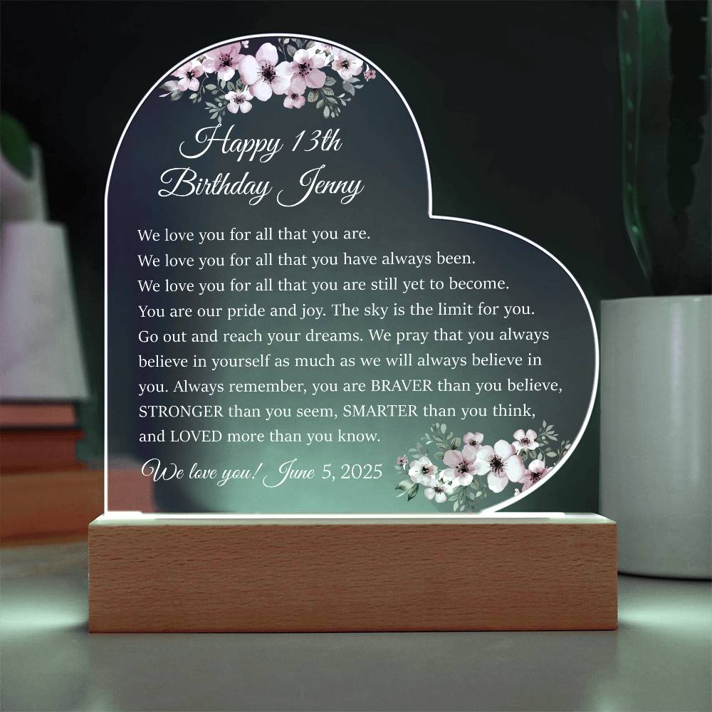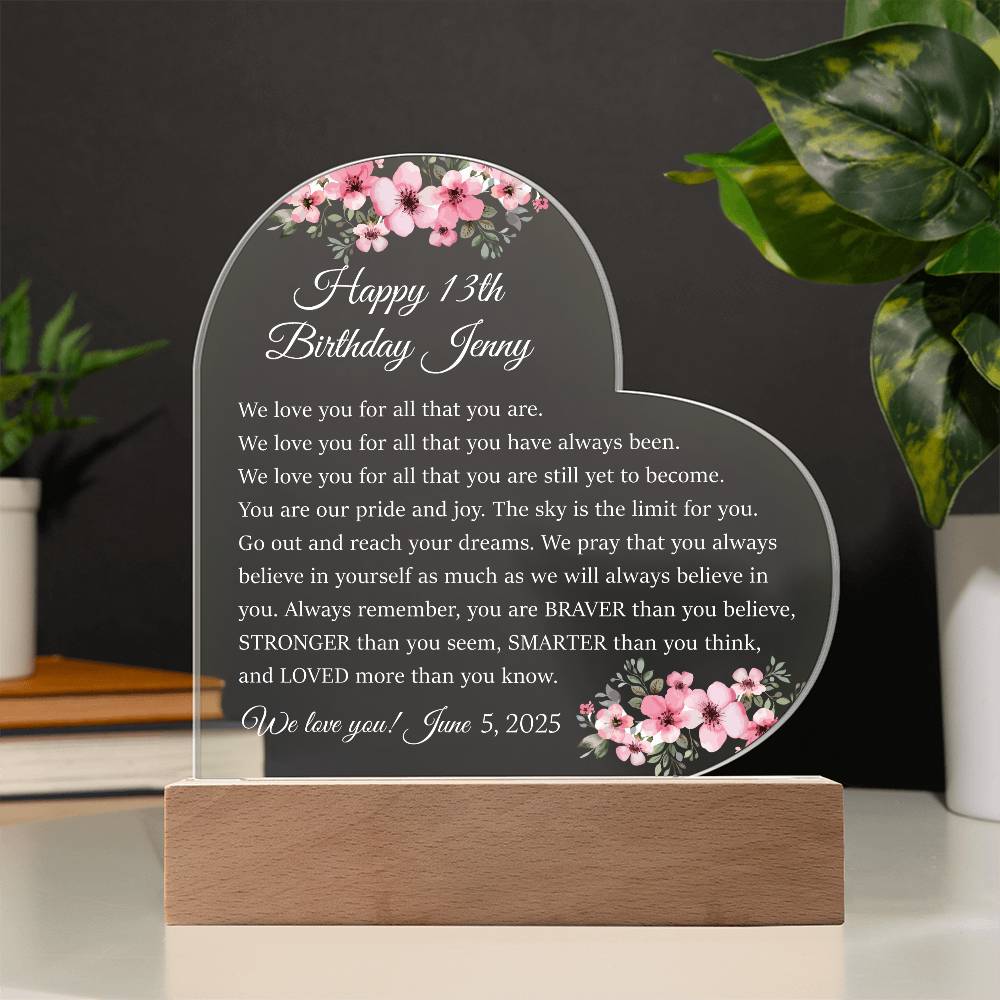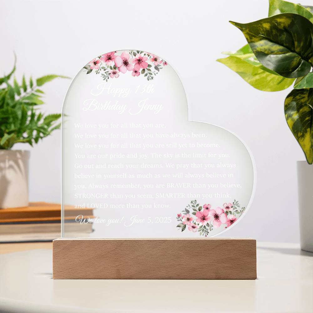 Create a memorable welcome to any room with our Printed Heart Acrylic Plaque. This beautiful sign is handcrafted using premium acrylic and a vibrantly printed design. Display your beautiful plaque in your own home or give it as a gift to make a statement. This would make an ideal gift for your beloved partner, family members, or dear friends on special occasions like anniversaries, birthdays, or any event where you want to express your love and appreciation in an unforgettable way.