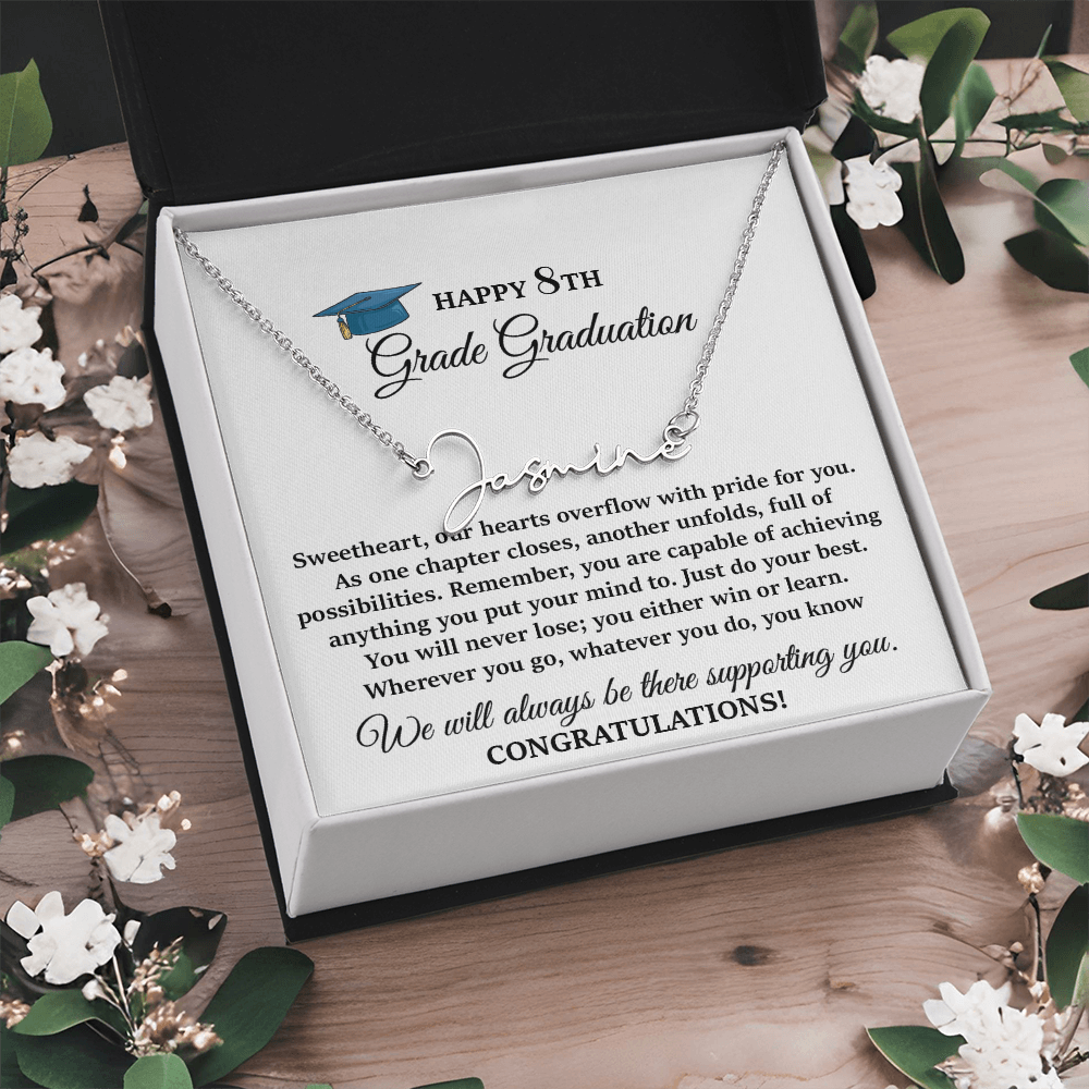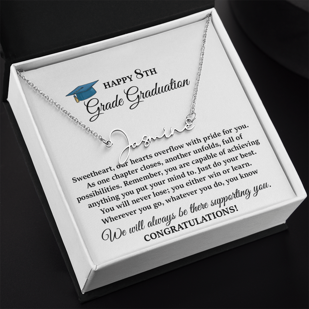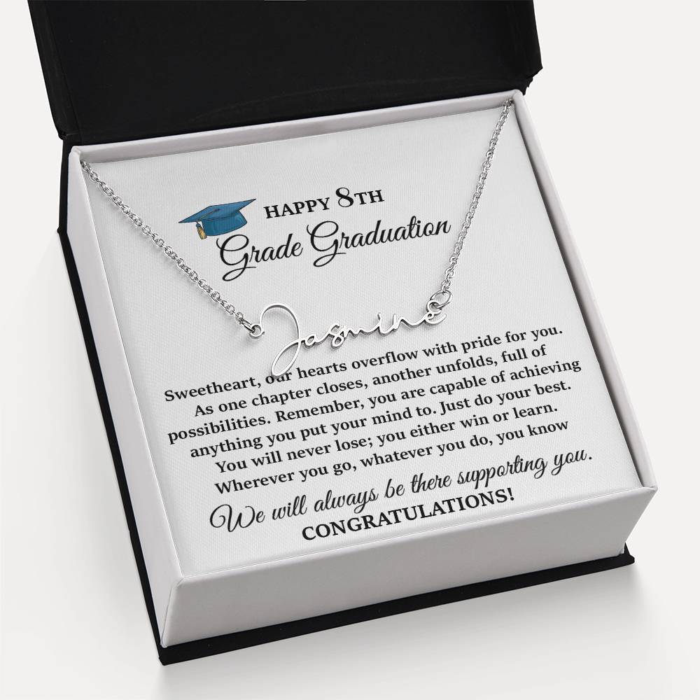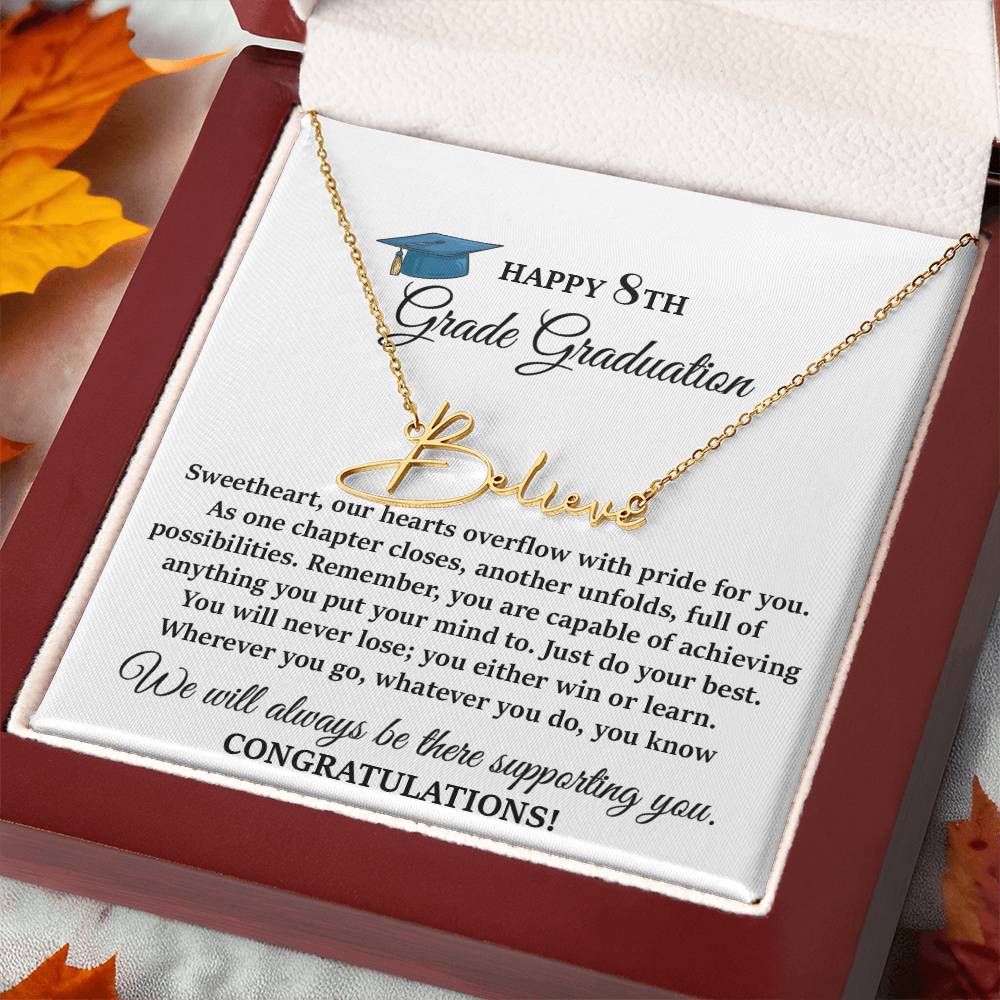 Looking to give your loved one a stylish and personalized gift that will melt their heart? Check out our Signature Style Name Necklace! This adorable custom necklace features a contemporary font that is sure to become a favorite accessory! From a heart-warming holiday present, special occasion gift, or just because, this unique necklace adds a trendy touch to any outfit