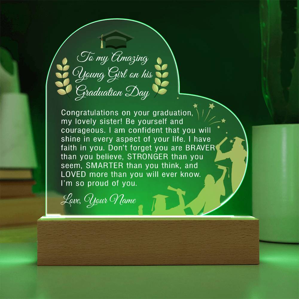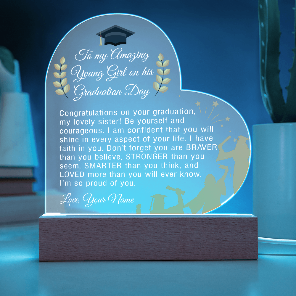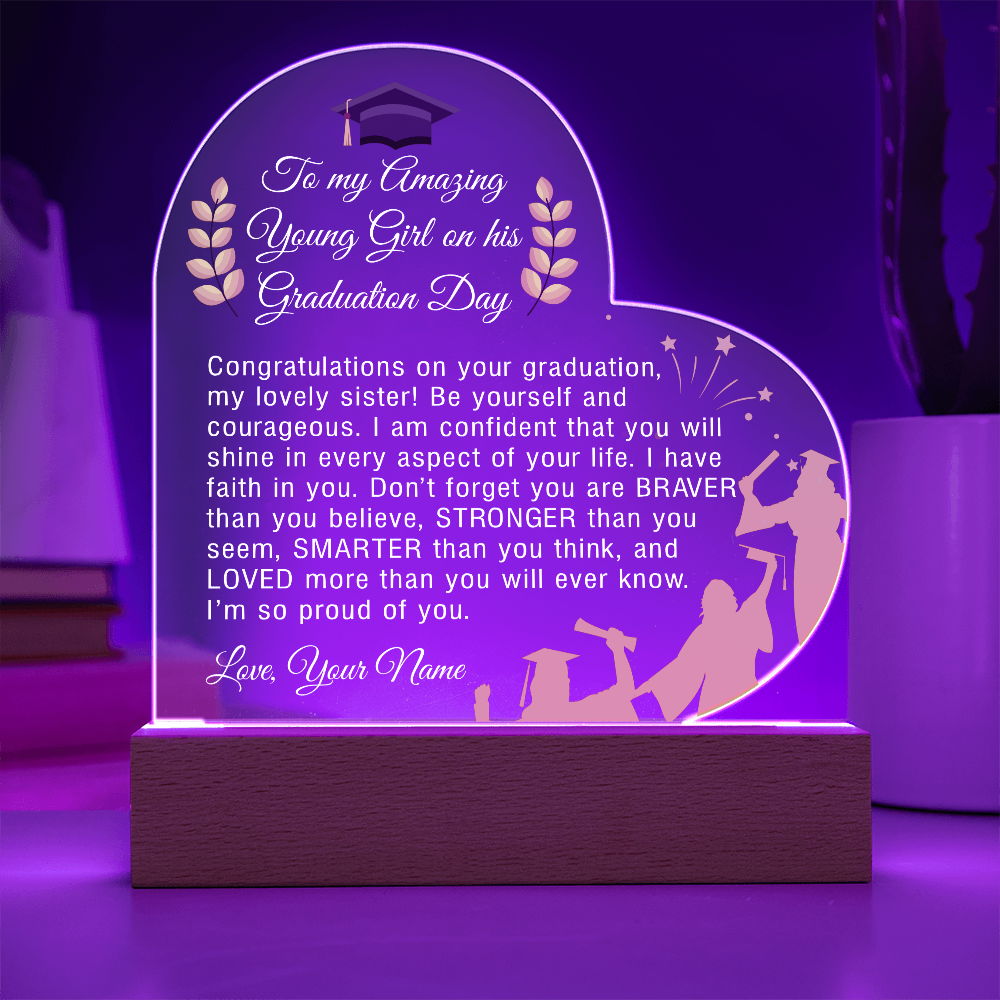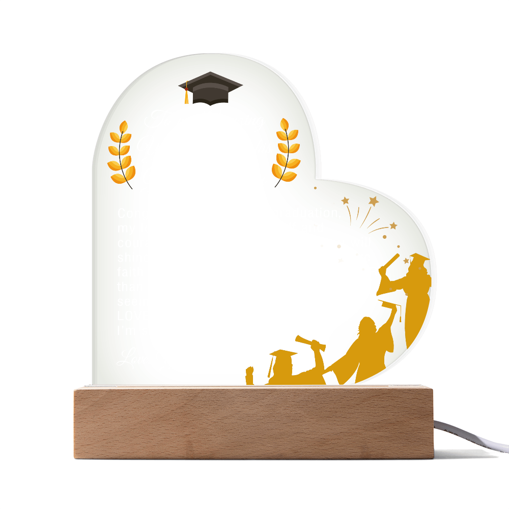 Your plaque will be crafted from premium acrylic with a professionally printed design for a polished look. It comes with a stylish wooden LED base, and you can choose between a USB plug-in option OR a cordless battery-operated option (requires 2 AAA batteries, not included). Both LED bases feature 7 vibrant colors, allowing the user to customize the lighting with various color changes and dynamic cycles.