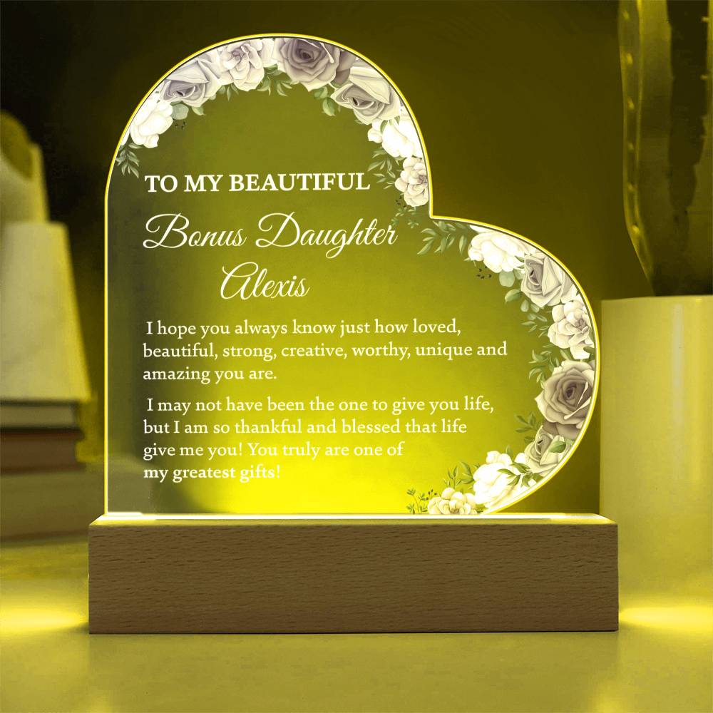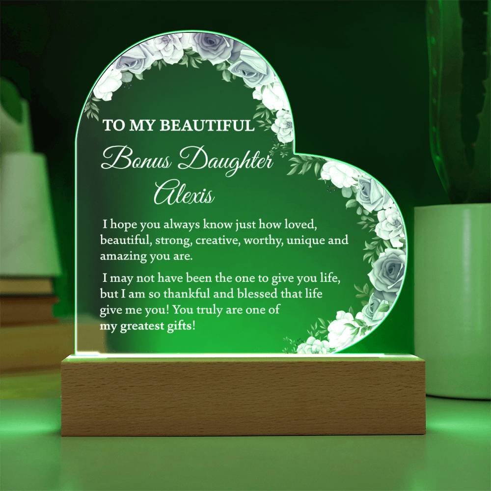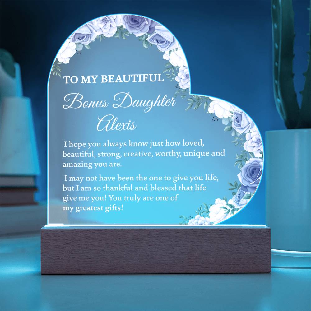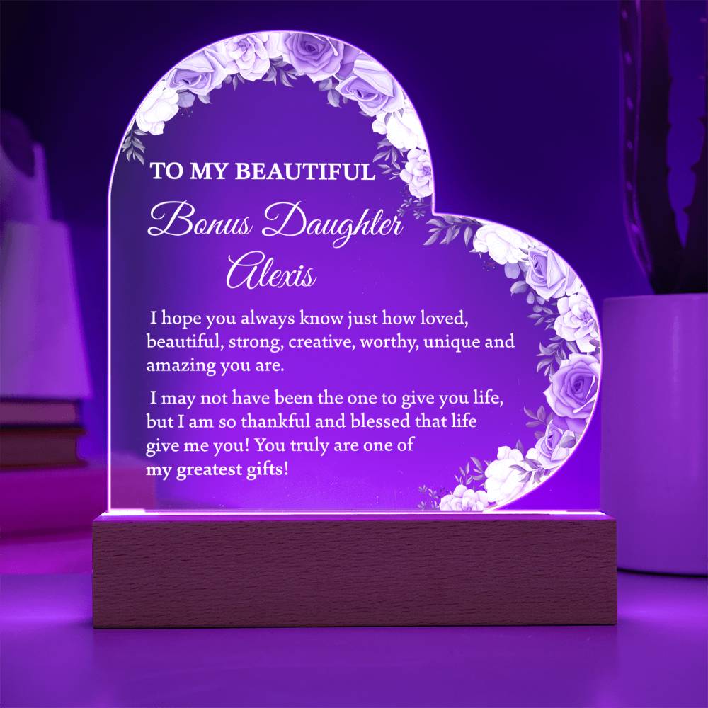 Your plaque will be crafted from premium acrylic with a professionally printed design for a polished look. It comes with a stylish wooden LED base, and you can choose between a USB plug-in option OR a cordless battery-operated option (requires 2 AAA batteries, not included). Both LED bases feature 7 vibrant colors, allowing the user to customize the lighting with various color changes and dynamic cycles.