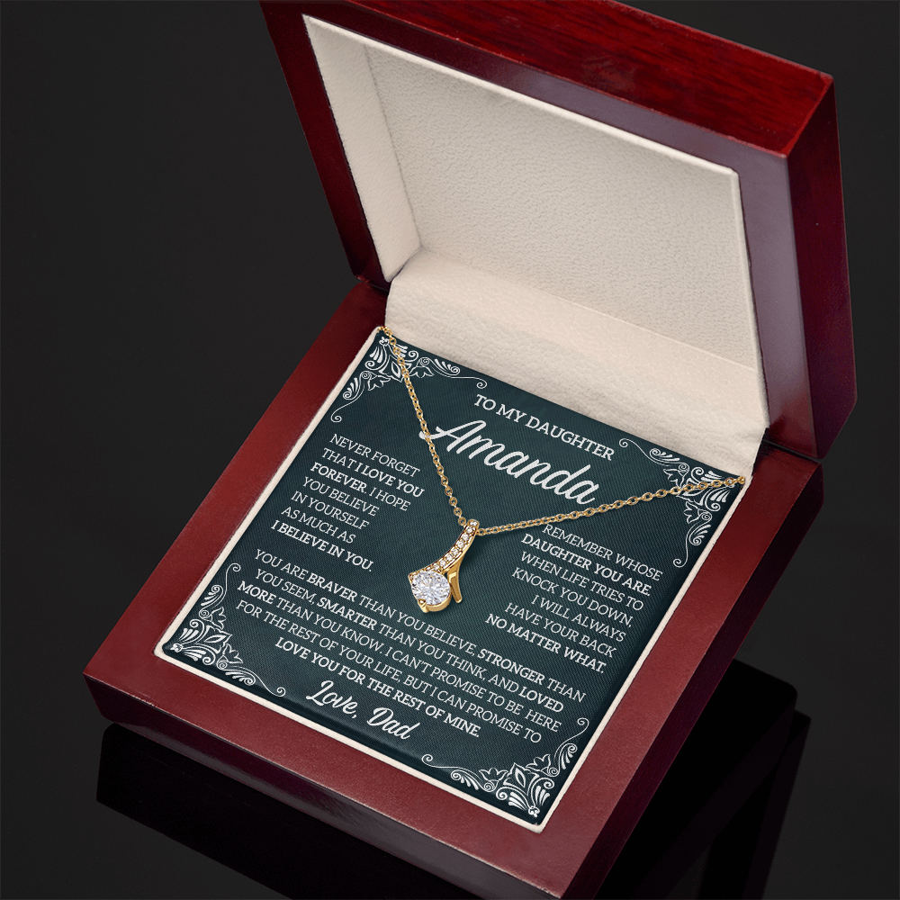 Imagine her reaction when she opens this stunning gift! The Alluring Beauty necklace features a petite ribbon shaped pendant that is sure to dazzle your special someone. Whether it's a birthday or anniversary, make sure to get her a gift she will love for years to come.