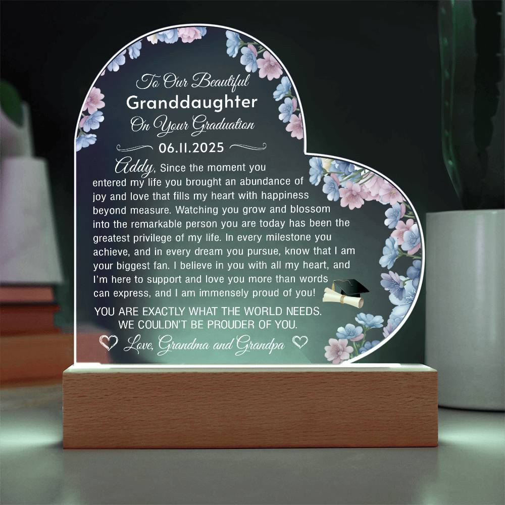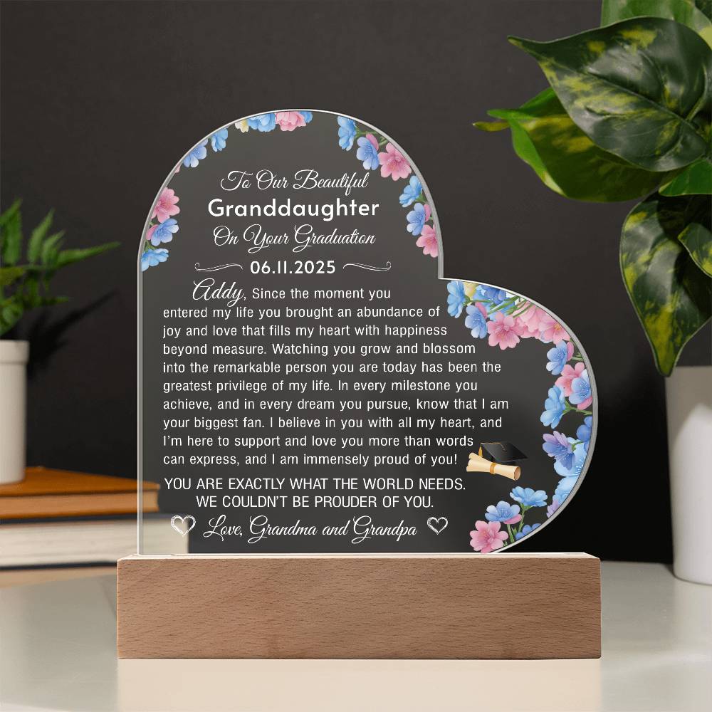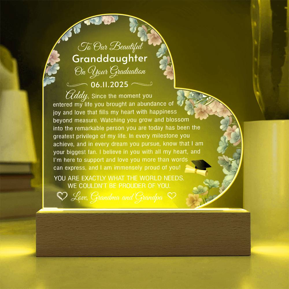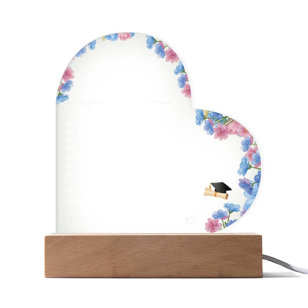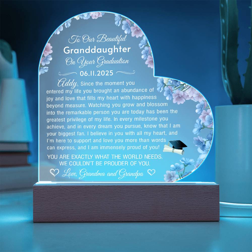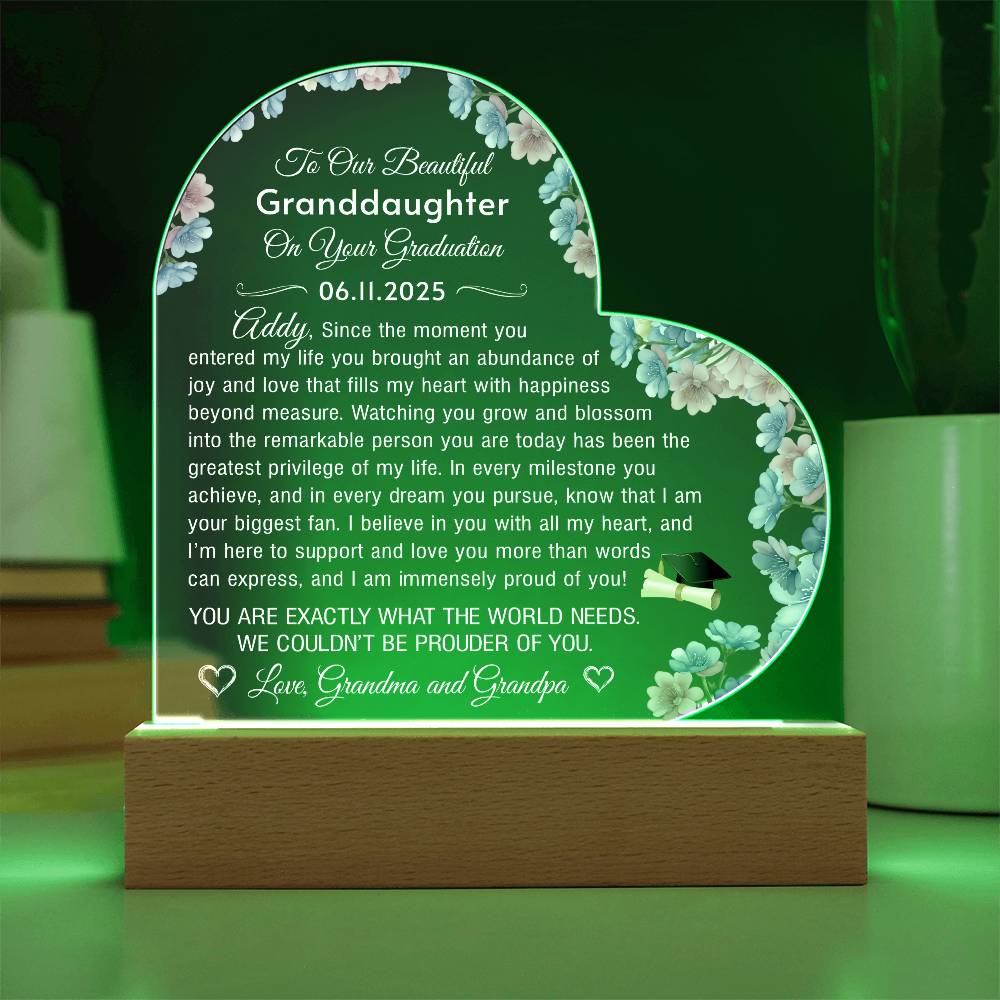 Your plaque will be crafted from premium acrylic with a professionally printed design for a polished look. It comes with a stylish wooden LED base, and you can choose between a USB plug-in option OR a cordless battery-operated option (requires 2 AAA batteries, not included). Both LED bases feature 7 vibrant colors, allowing the user to customize the lighting with various color changes and dynamic cycles.