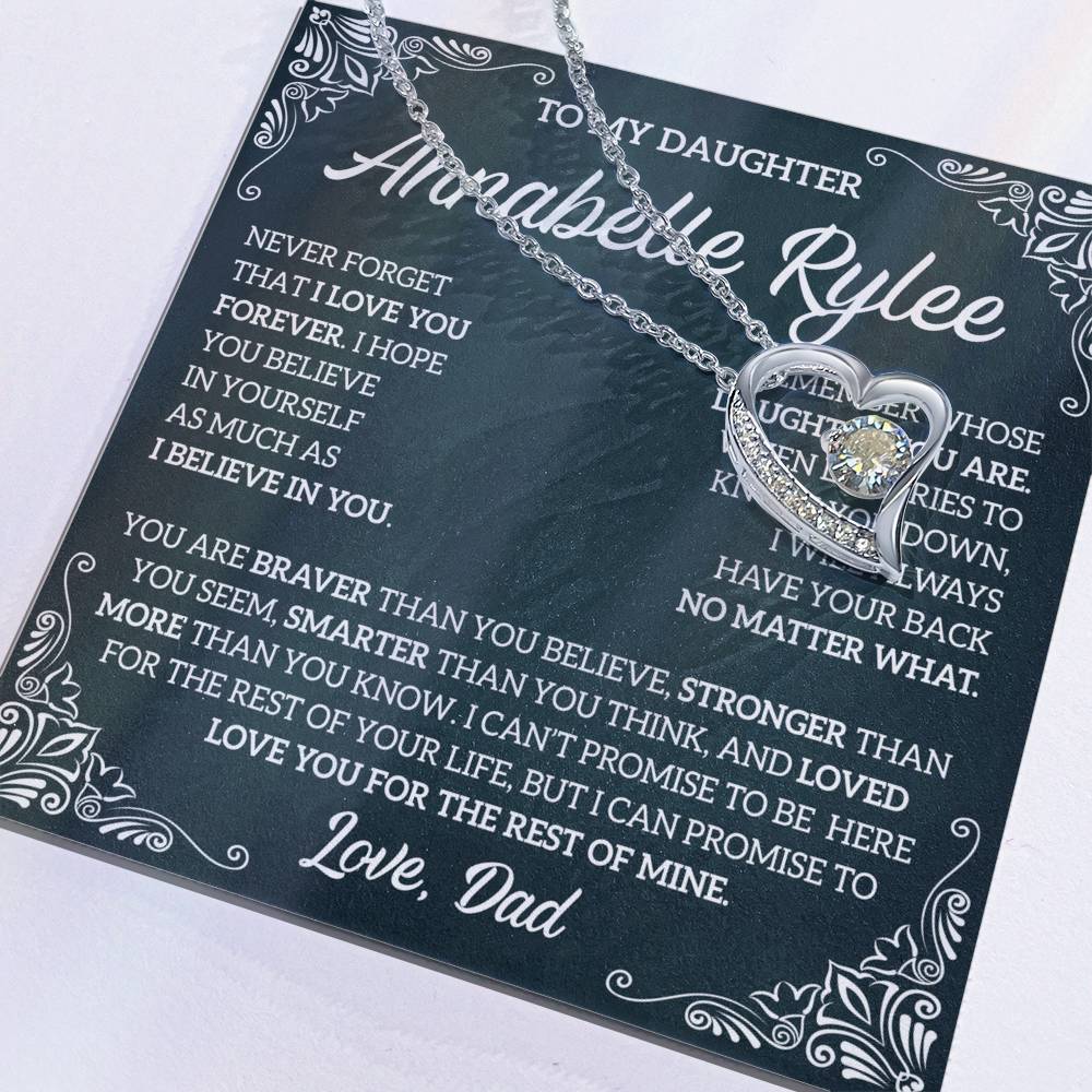The dazzling Forever Love Necklace is sure to make her heart melt! This necklace features a stunning 6.5mm CZ crystal surrounded by a polished heart pendant embellished with smaller crystals to add extra sparkle and shine. Beautifully crafted with either a white gold or yellow gold finish, be sure to give her a classic gift she can enjoy everyday.