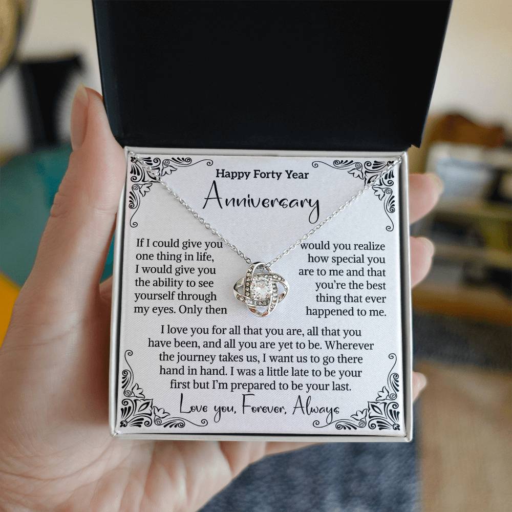 Imagine her reaction receiving this beautiful Love Knot Necklace. Representing an unbreakable bond between two souls, this piece features a beautiful pendant embellished with premium cubic zirconia crystals. Surprise your loved one with this gorgeous gift today!