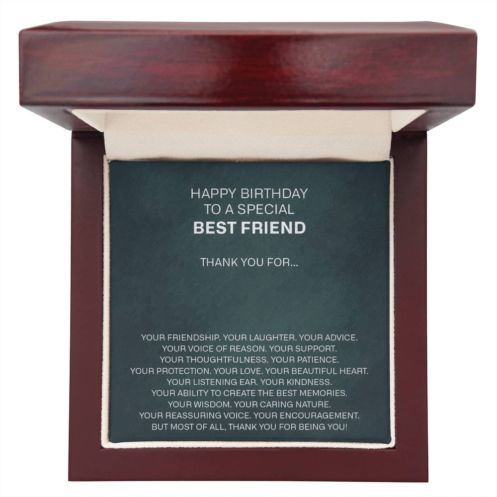 Your piece is lovingly packaged in a complimentary soft touch box for easy gifting. Elevate your presentation by upgrading to the mahogany style luxury box, which features a brilliant LED spotlight.