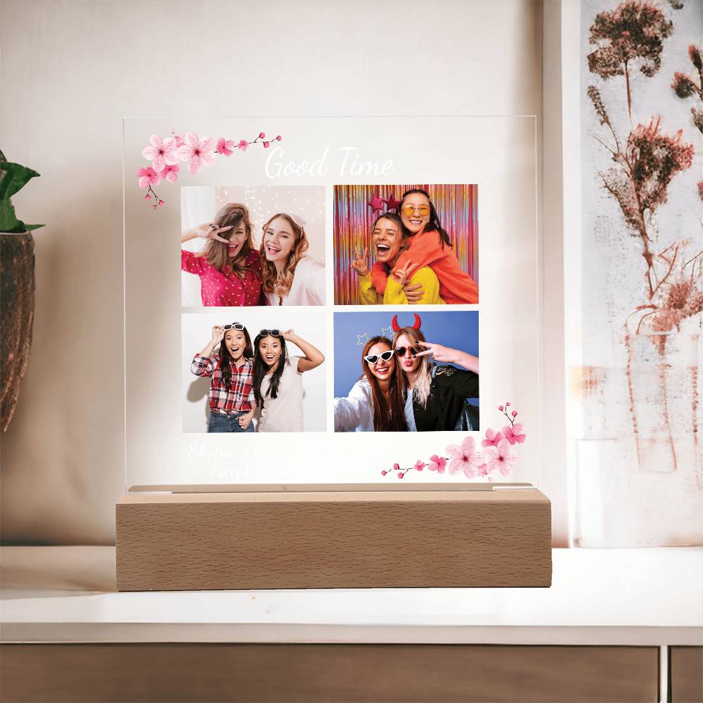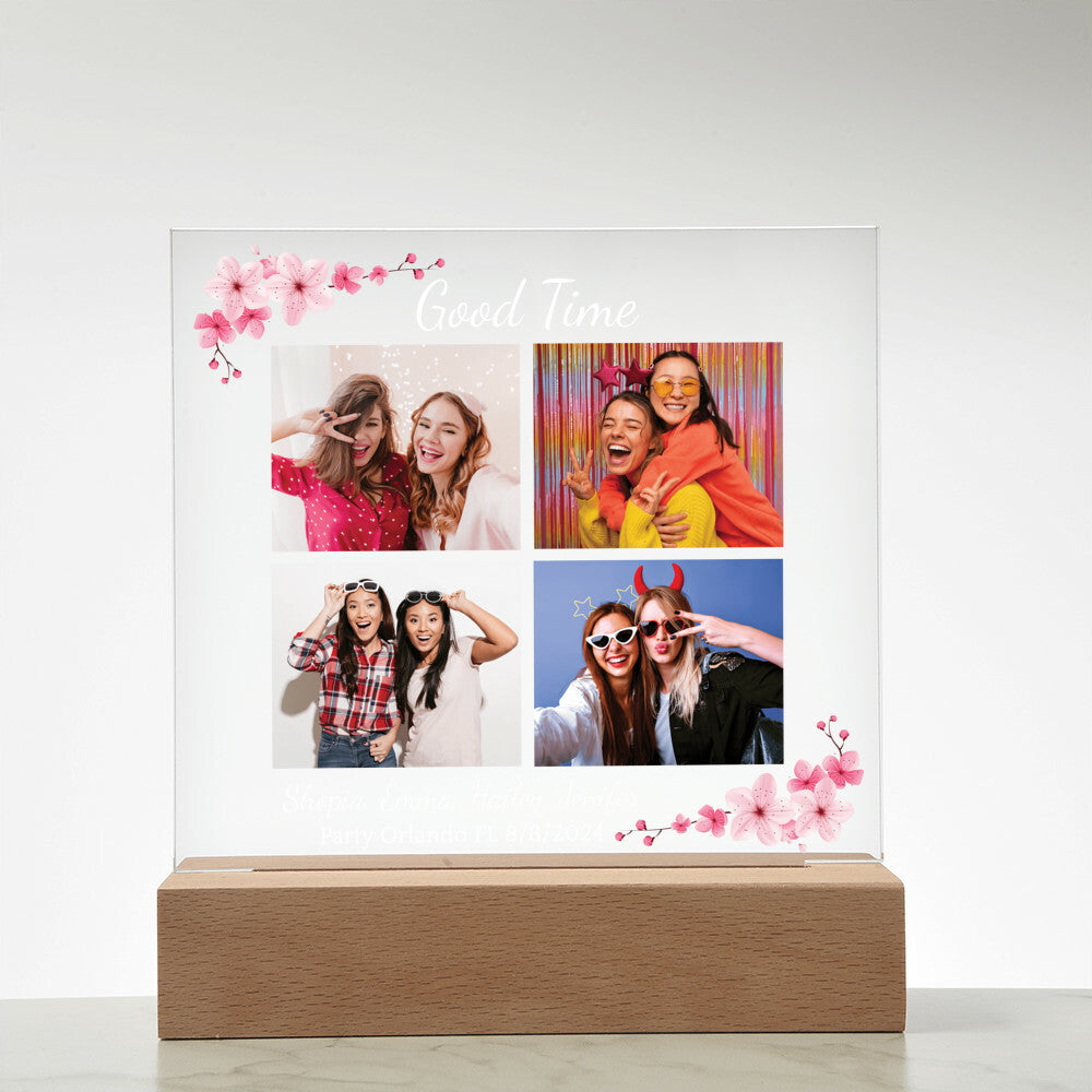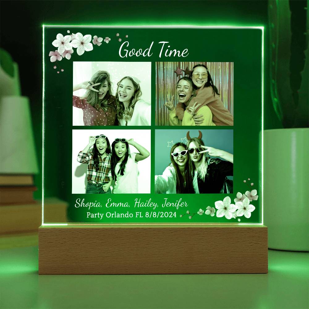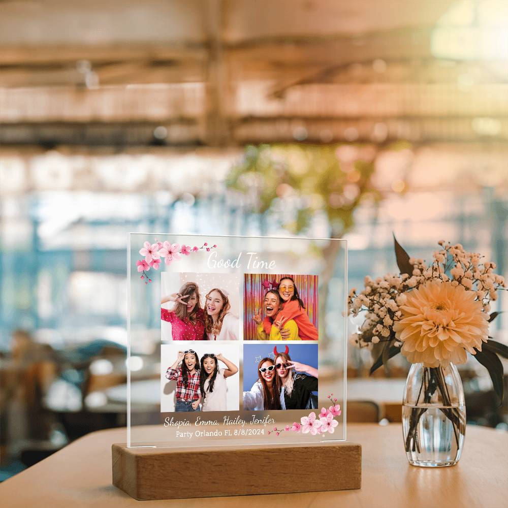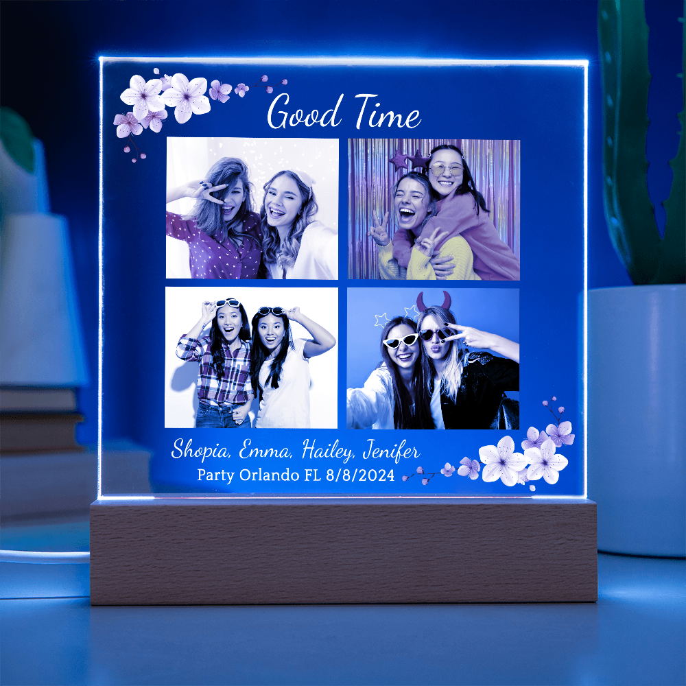Your plaque will be crafted from premium acrylic with a professionally printed design for a polished look. It comes with a stylish wooden LED base, and you can choose between a USB plug-in option OR a cordless battery-operated option (requires 2 AAA batteries, not included). Both LED bases feature 7 vibrant colors, allowing the user to customize the lighting with various color changes and dynamic cycles.