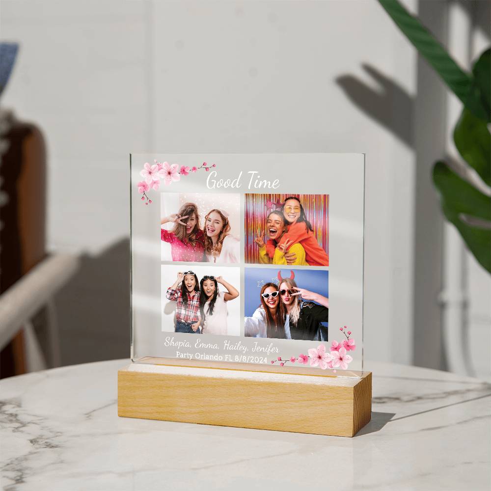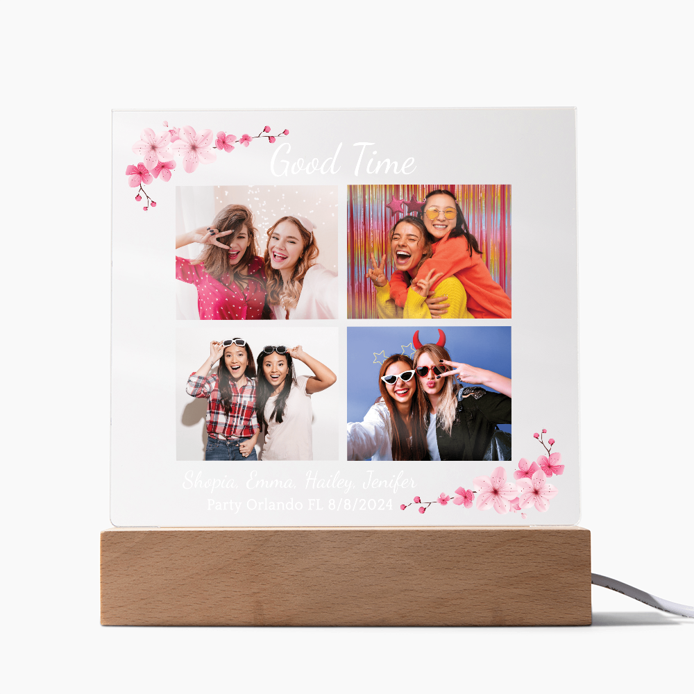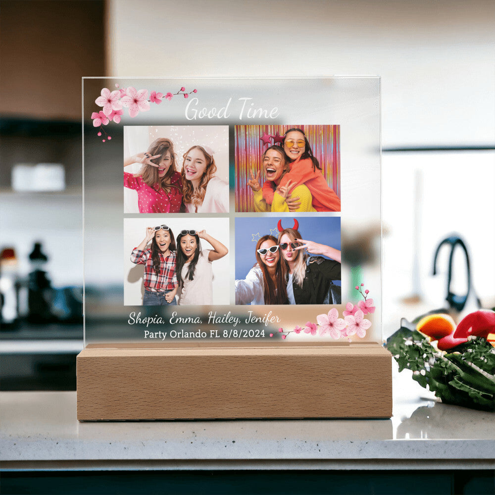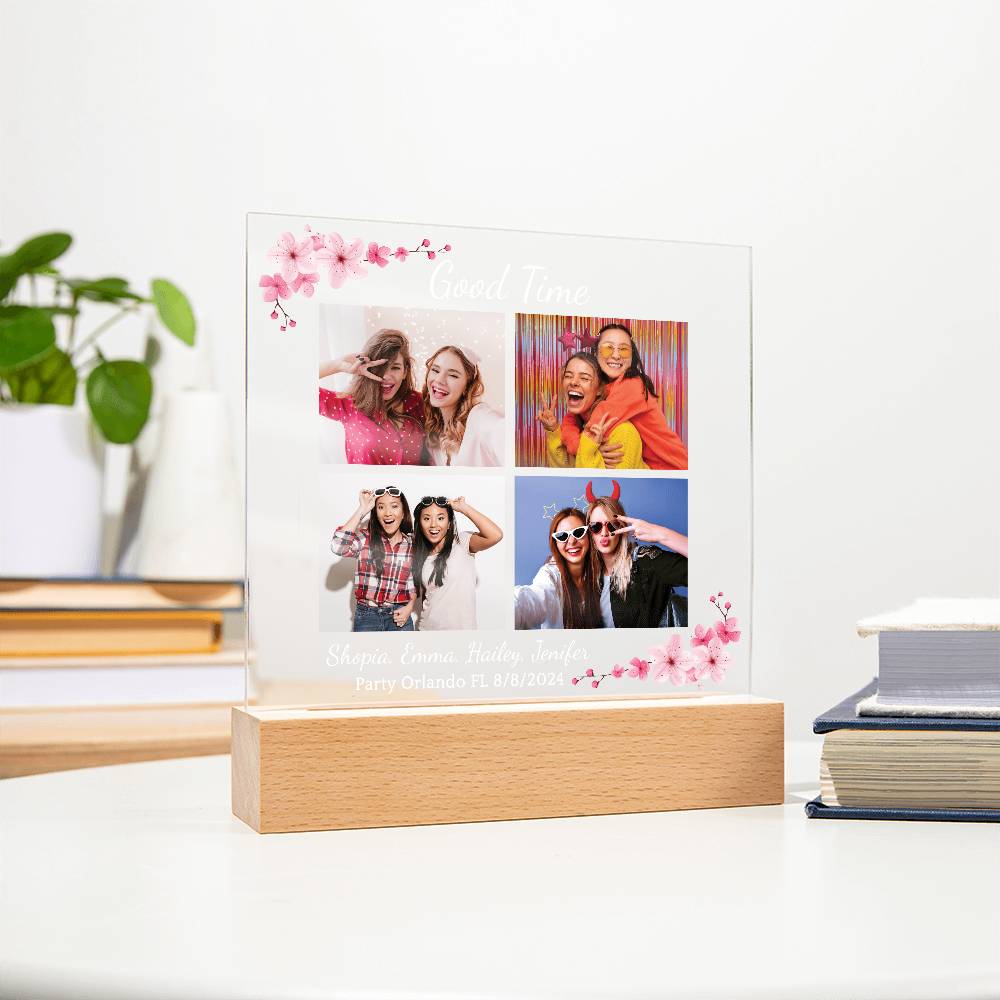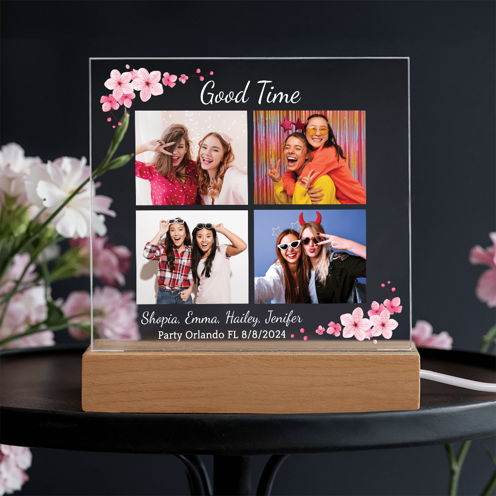 Your plaque will be crafted from premium acrylic with a professionally printed design for a polished look. It comes with a stylish wooden LED base, and you can choose between a USB plug-in option OR a cordless battery-operated option (requires 2 AAA batteries, not included). Both LED bases feature 7 vibrant colors, allowing the user to customize the lighting with various color changes and dynamic cycles.