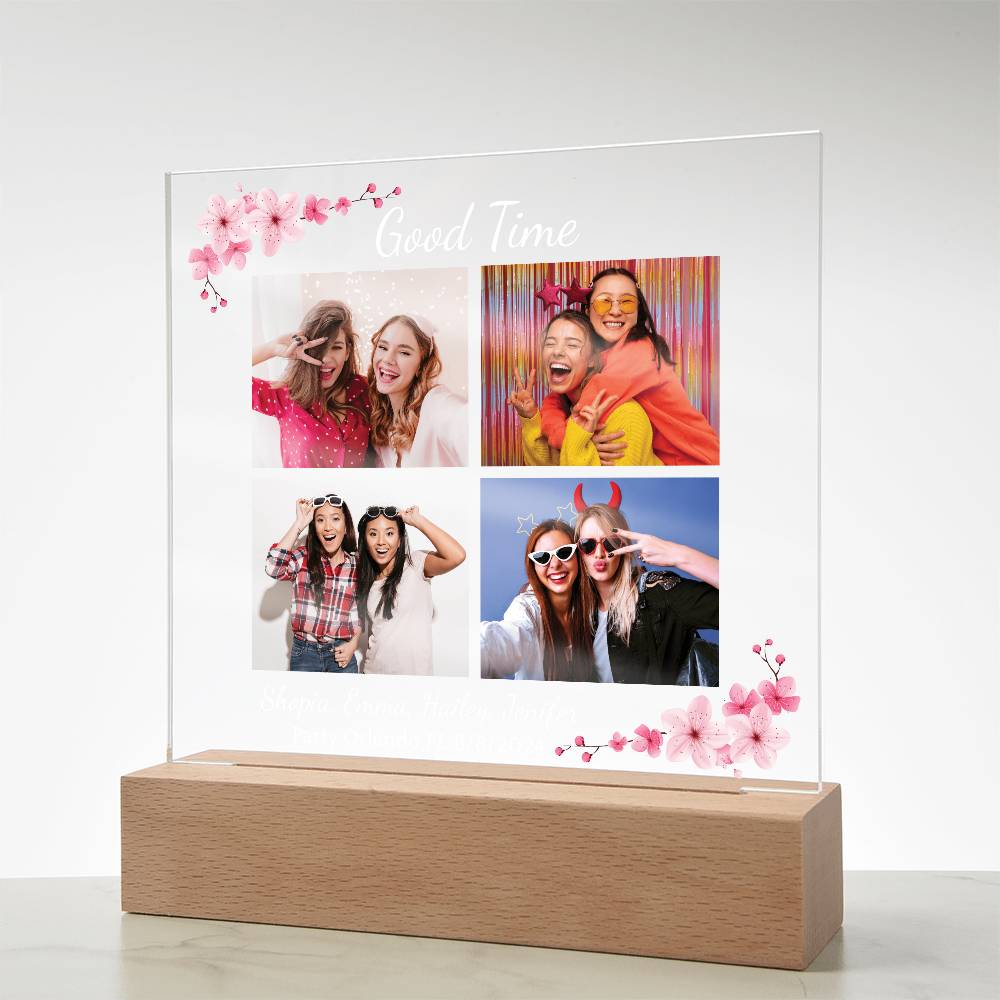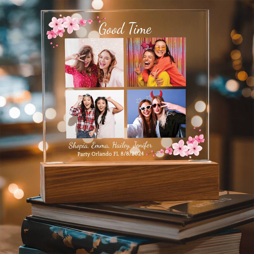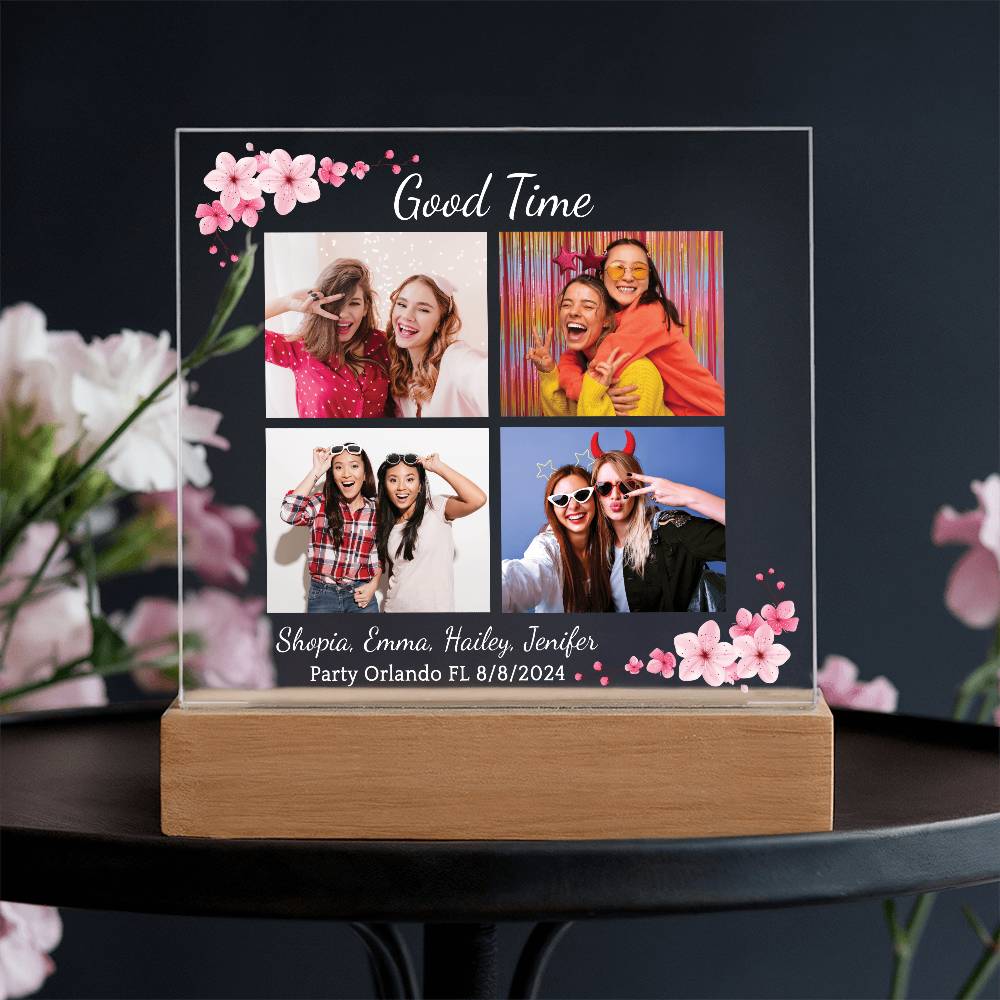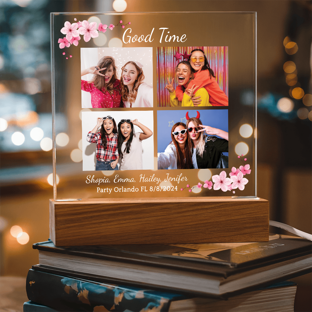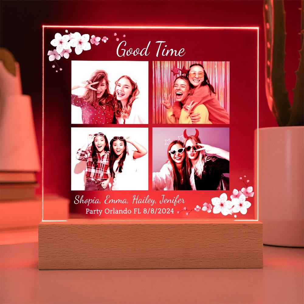 Your plaque will be crafted from premium acrylic with a professionally printed design for a polished look. It comes with a stylish wooden LED base, and you can choose between a USB plug-in option OR a cordless battery-operated option (requires 2 AAA batteries, not included). Both LED bases feature 7 vibrant colors, allowing the user to customize the lighting with various color changes and dynamic cycles.