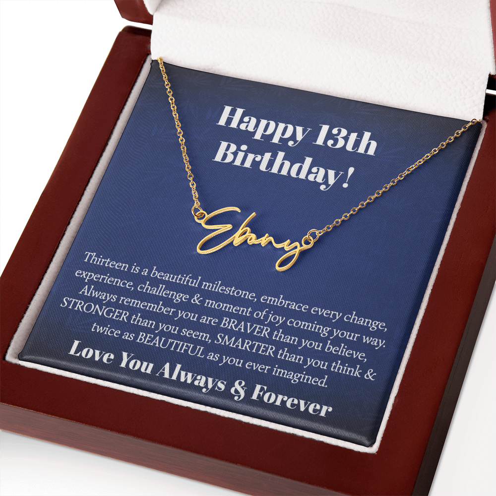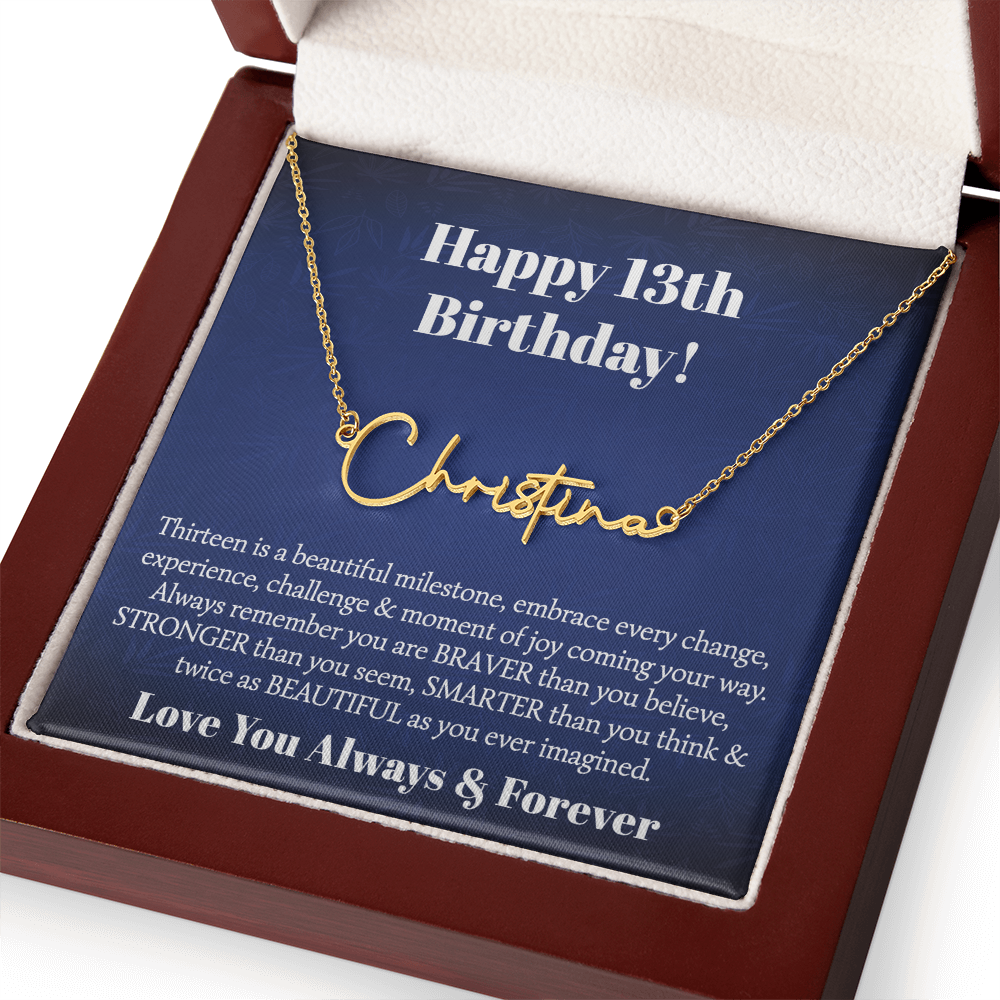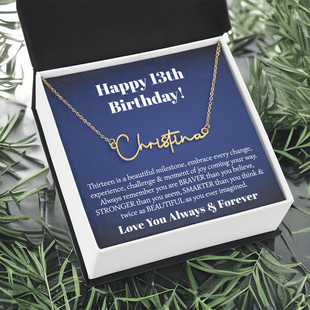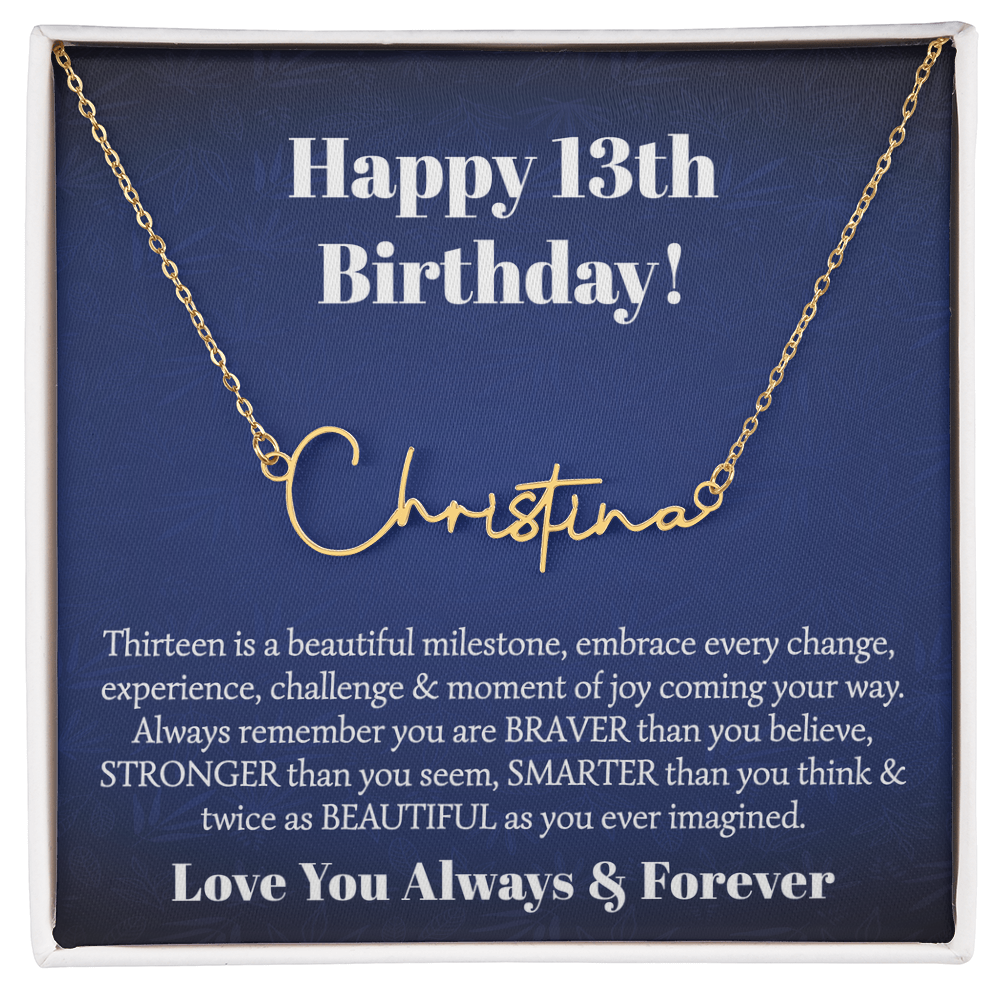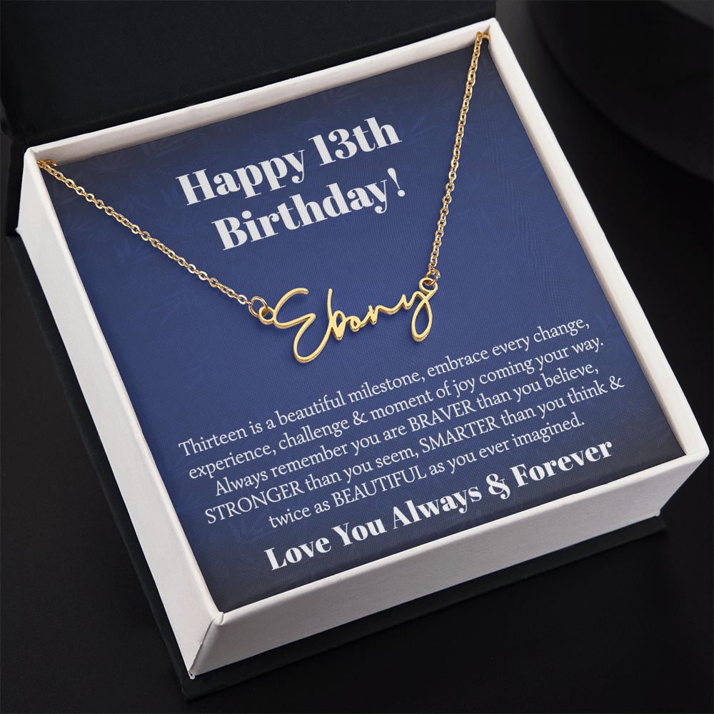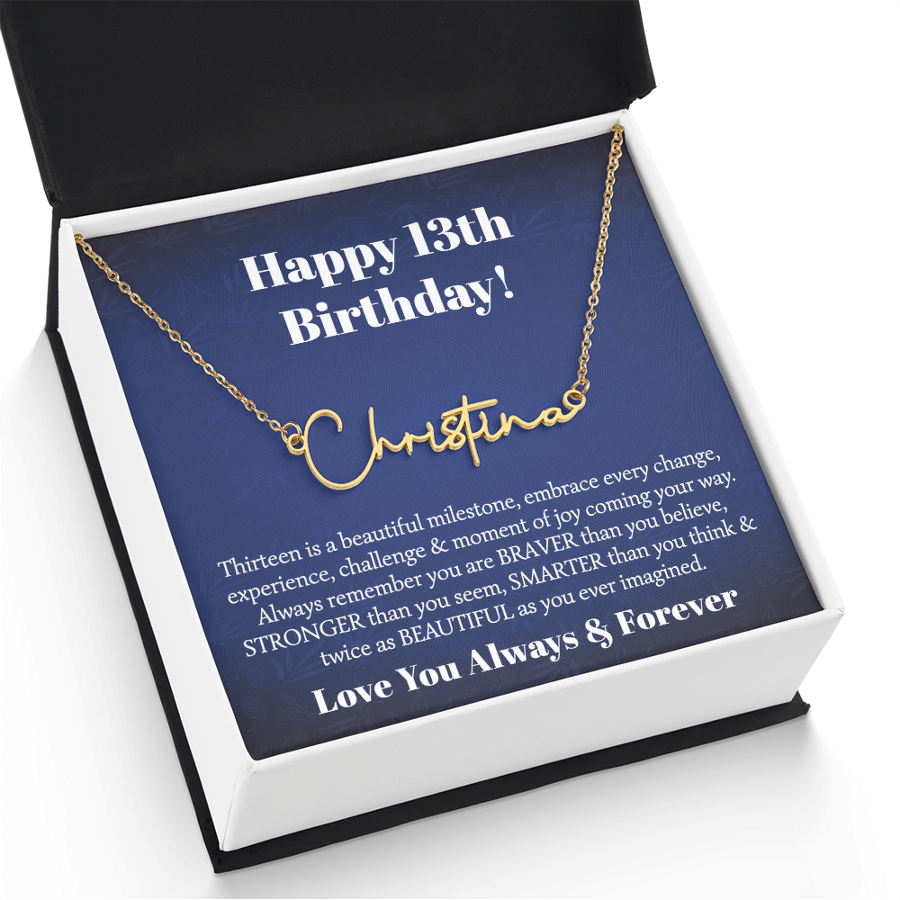 Looking to give your loved one a stylish and personalized gift that will melt their heart? Check out our Signature Style Name Necklace! This adorable custom necklace features a contemporary font that is sure to become a favorite accessory! From a heart-warming holiday present, special occasion gift, or just because, this unique necklace adds a trendy touch to any outfit