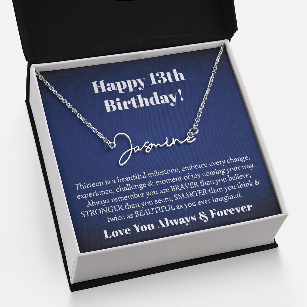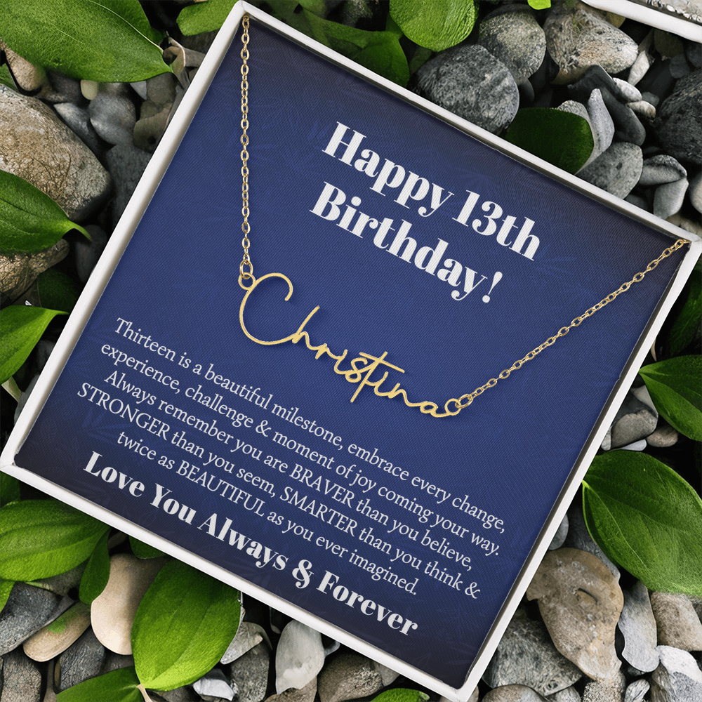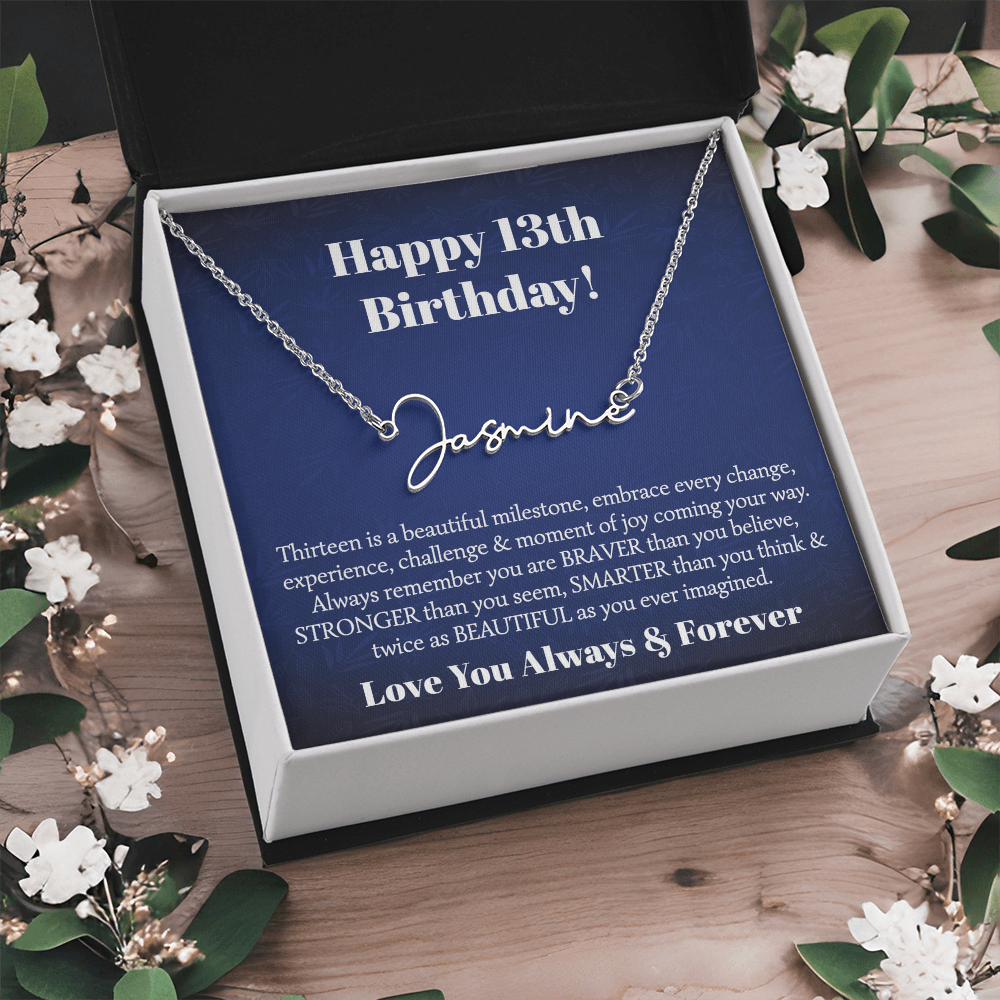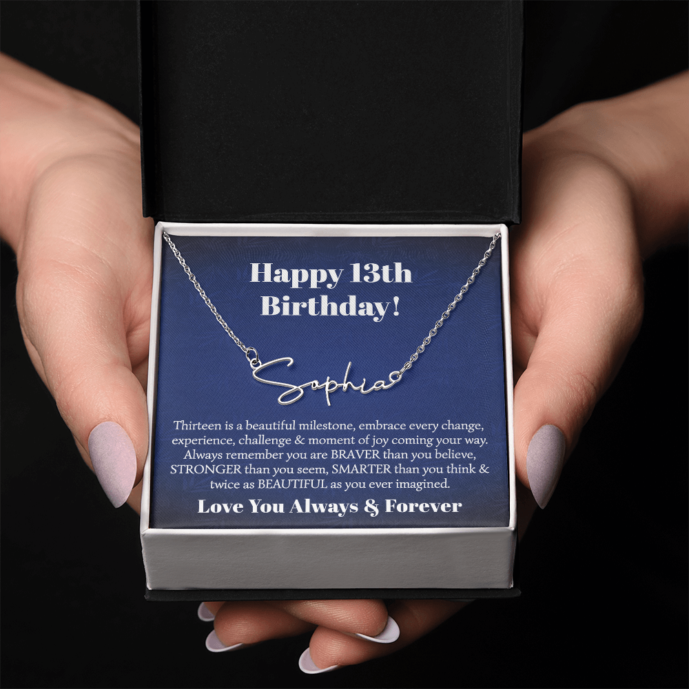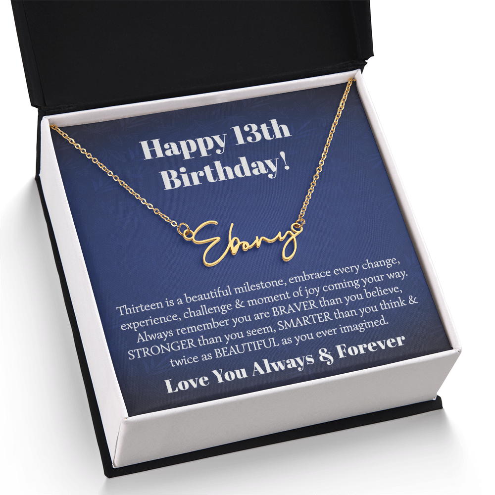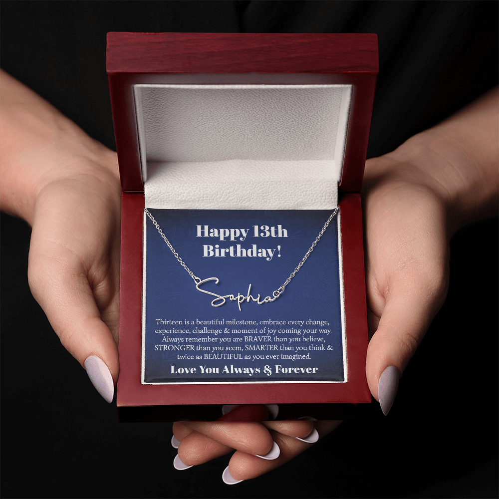 Looking to give your loved one a stylish and personalized gift that will melt their heart? Check out our Signature Style Name Necklace! This adorable custom necklace features a contemporary font that is sure to become a favorite accessory! From a heart-warming holiday present, special occasion gift, or just because, this unique necklace adds a trendy touch to any outfit
