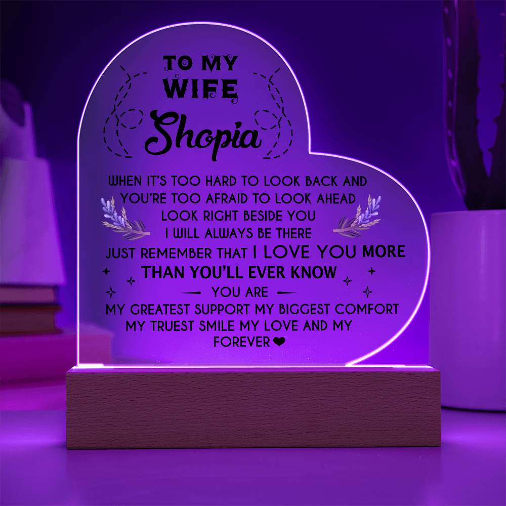 Your plaque will be crafted from premium acrylic with a professionally printed design for a polished look. It comes with a stylish wooden LED base, and you can choose between a USB plug-in option OR a cordless battery-operated option (requires 2 AAA batteries, not included). Both LED bases feature 7 vibrant colors, allowing the user to customize the lighting with various color changes and dynamic cycles.