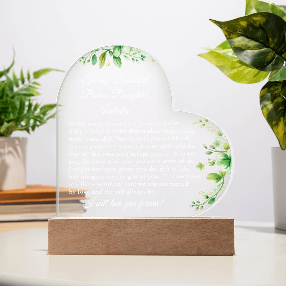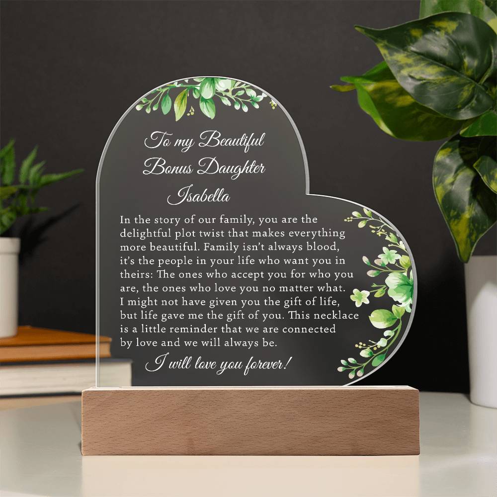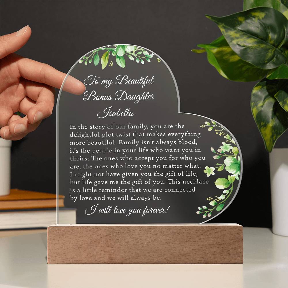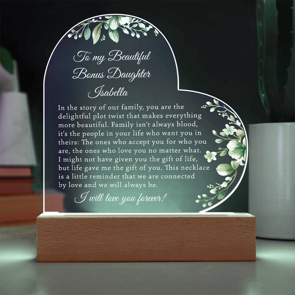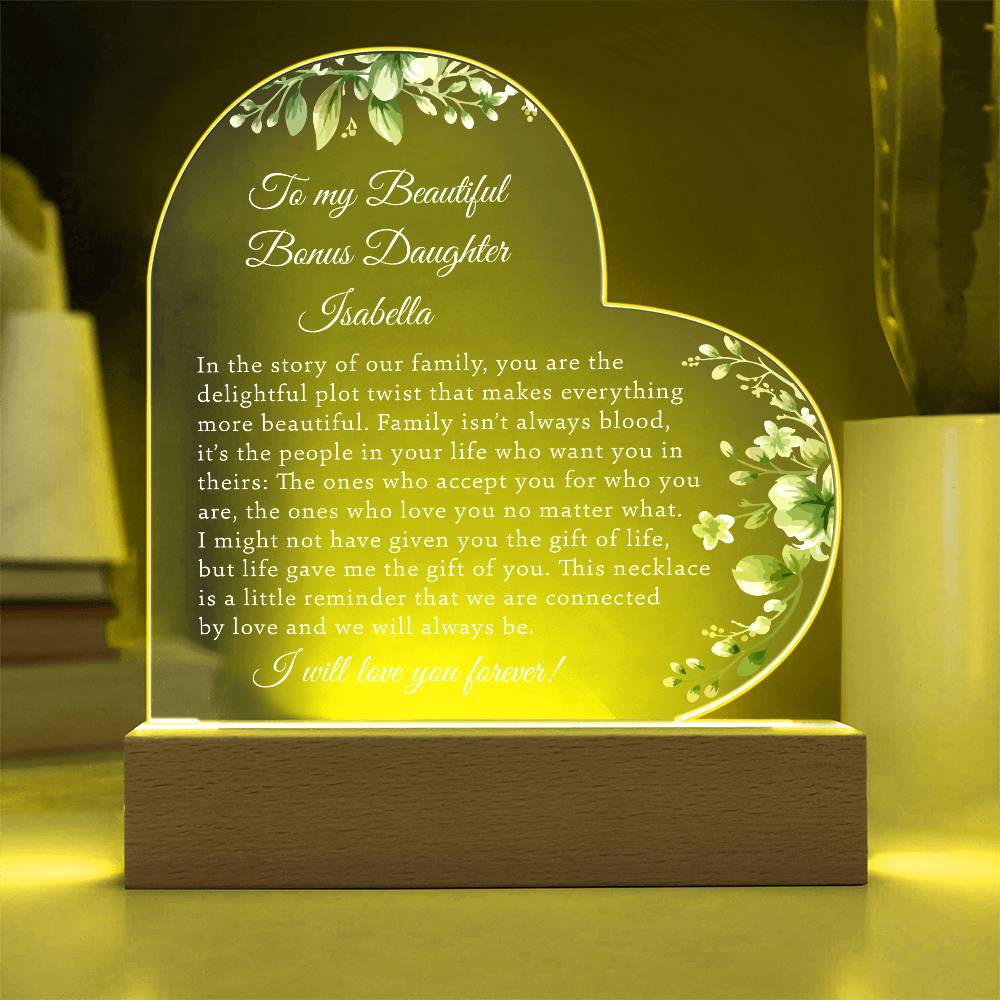 Your plaque will be crafted from premium acrylic with a professionally printed design for a polished look. It comes with a stylish wooden LED base, and you can choose between a USB plug-in option OR a cordless battery-operated option (requires 2 AAA batteries, not included). Both LED bases feature 7 vibrant colors, allowing the user to customize the lighting with various color changes and dynamic cycles.