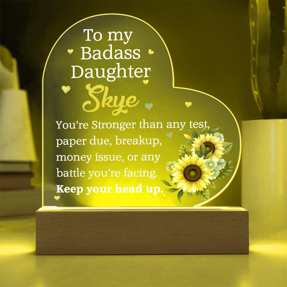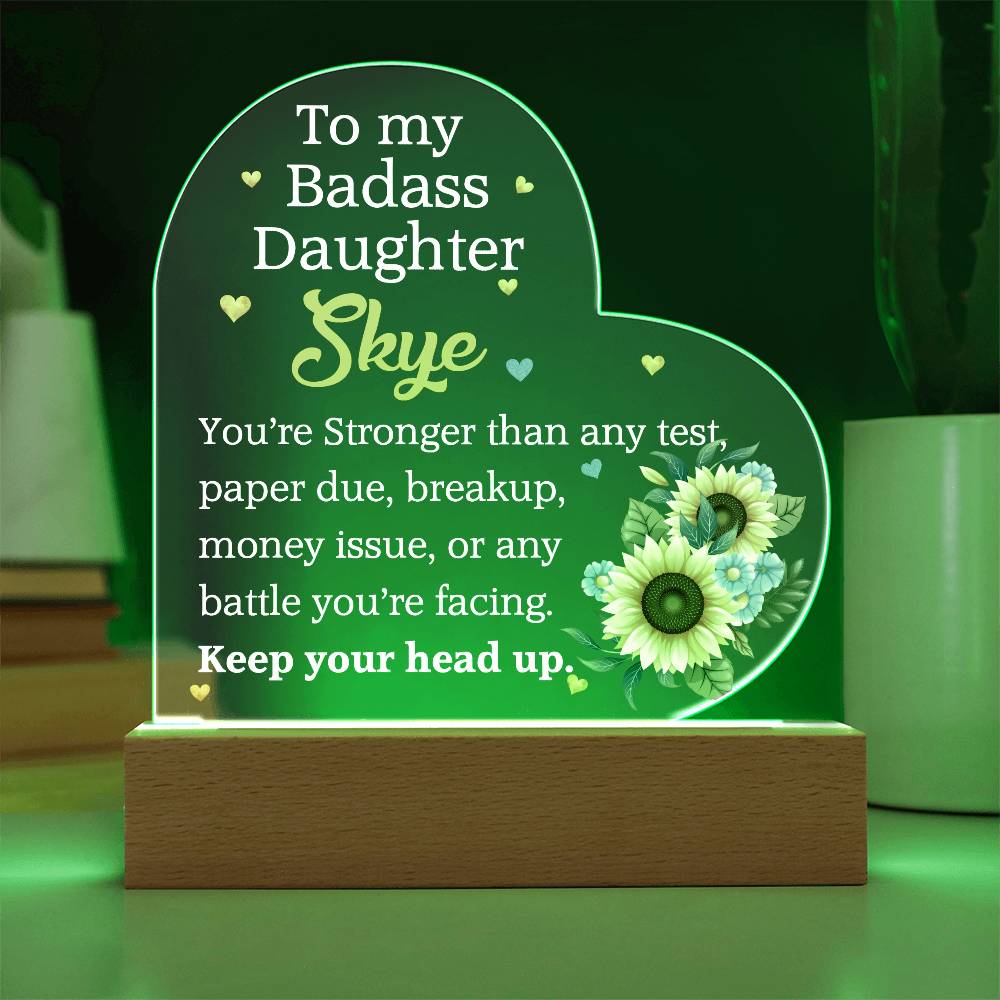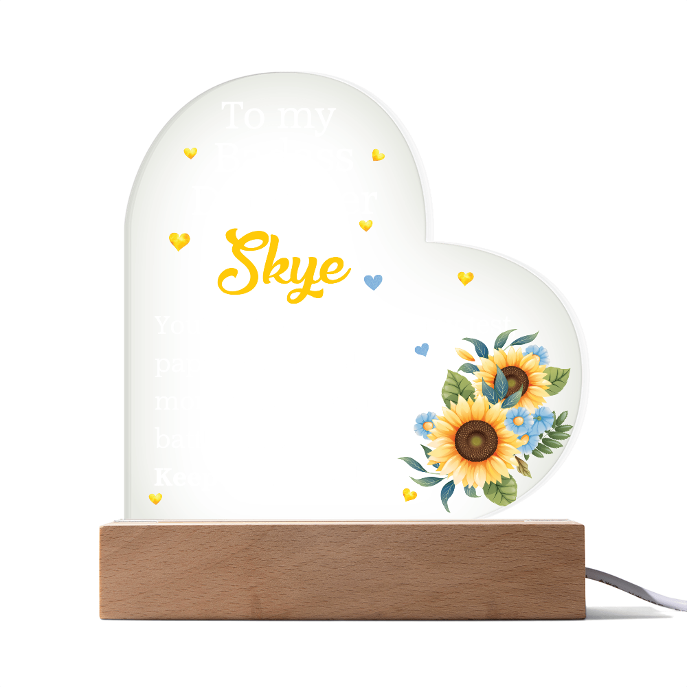 Your plaque will be crafted from premium acrylic with a professionally printed design for a polished look. It comes with a stylish wooden LED base, and you can choose between a USB plug-in option OR a cordless battery-operated option (requires 2 AAA batteries, not included). Both LED bases feature 7 vibrant colors, allowing the user to customize the lighting with various color changes and dynamic cycles.