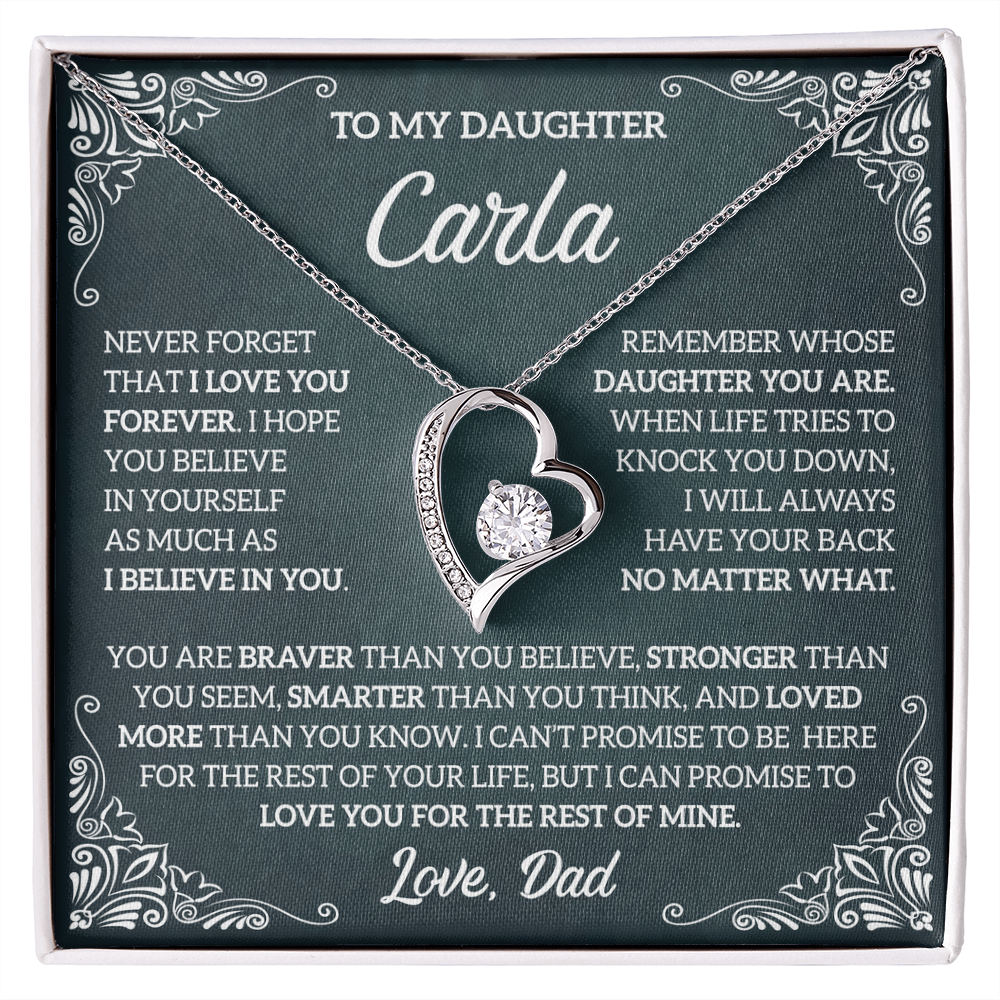 The dazzling Forever Love Necklace is sure to make her heart melt! This necklace features a stunning 6.5mm CZ crystal surrounded by a polished heart pendant embellished with smaller crystals to add extra sparkle and shine. Beautifully crafted with either a white gold or yellow gold finish, be sure to give her a classic gift she can enjoy everyday.