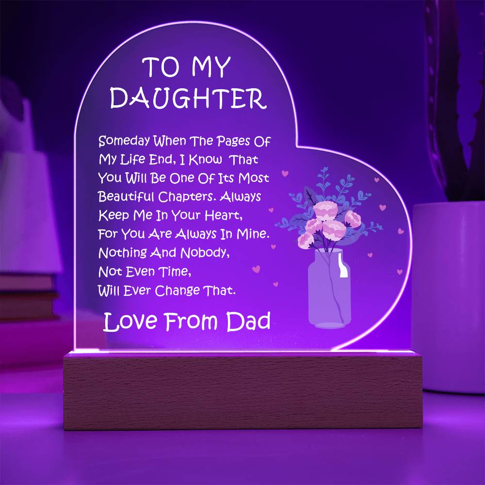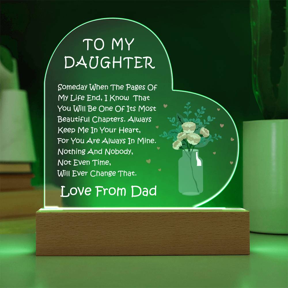 Your plaque will be crafted from premium acrylic with a professionally printed design for a polished look. It comes with a stylish wooden LED base, and you can choose between a USB plug-in option OR a cordless battery-operated option (requires 2 AAA batteries, not included). Both LED bases feature 7 vibrant colors, allowing the user to customize the lighting with various color changes and dynamic cycles.