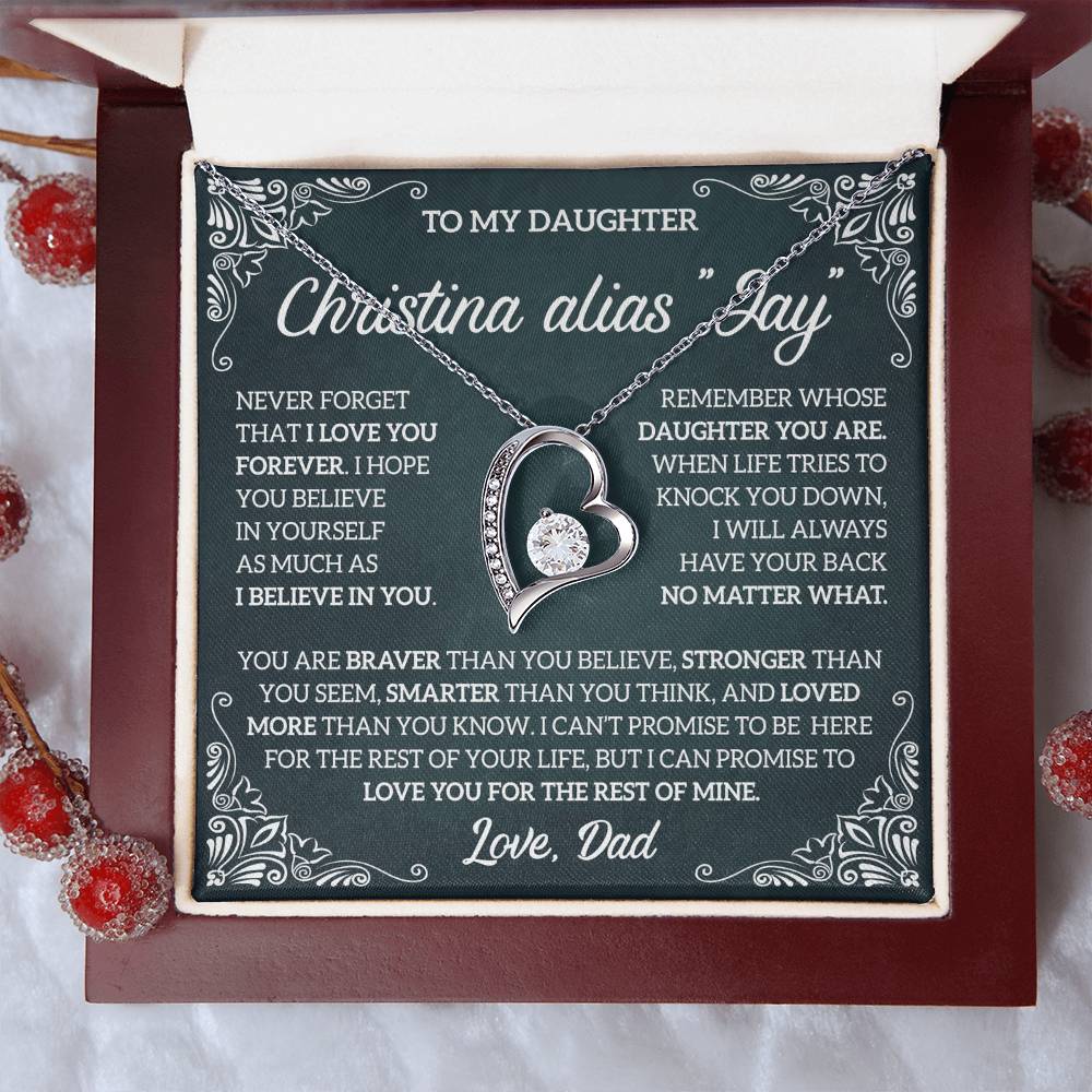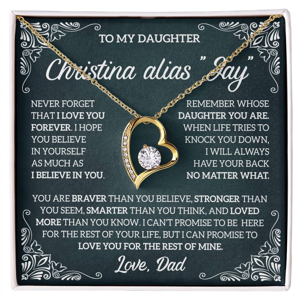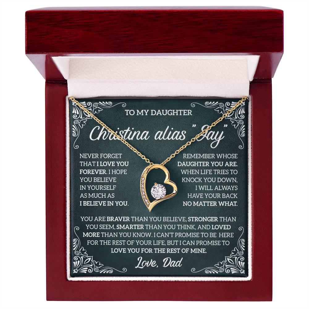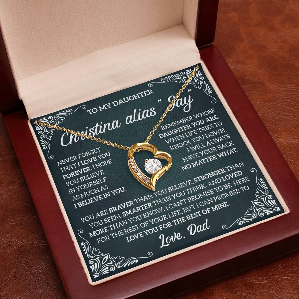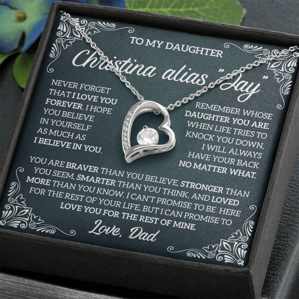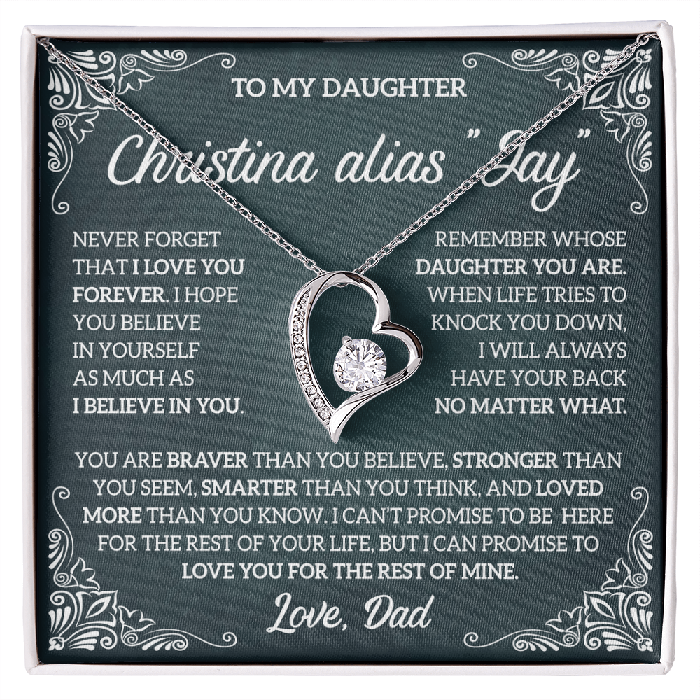 The dazzling Forever Love Necklace is sure to make her heart melt! This necklace features a stunning 6.5mm CZ crystal surrounded by a polished heart pendant embellished with smaller crystals to add extra sparkle and shine. Beautifully crafted with either a white gold or yellow gold finish, be sure to give her a classic gift she can enjoy everyday.