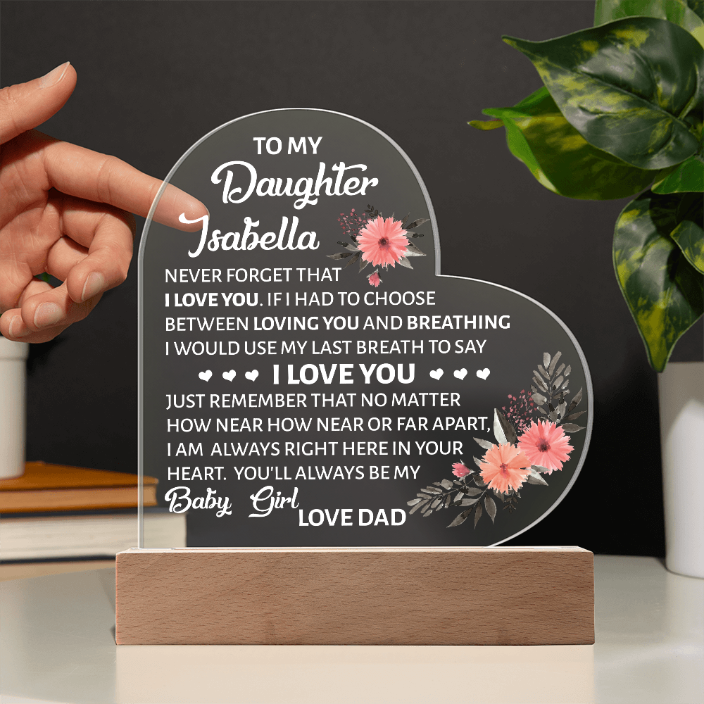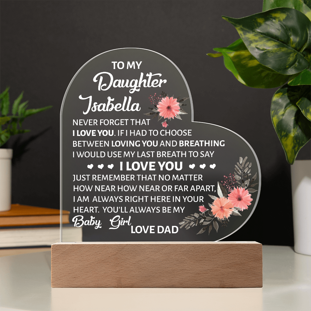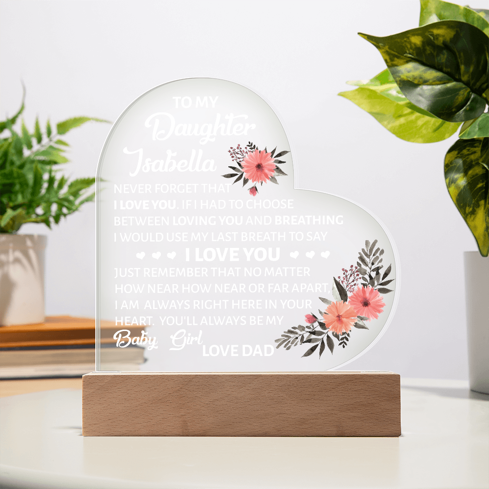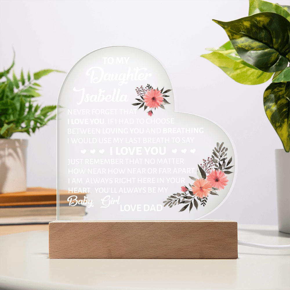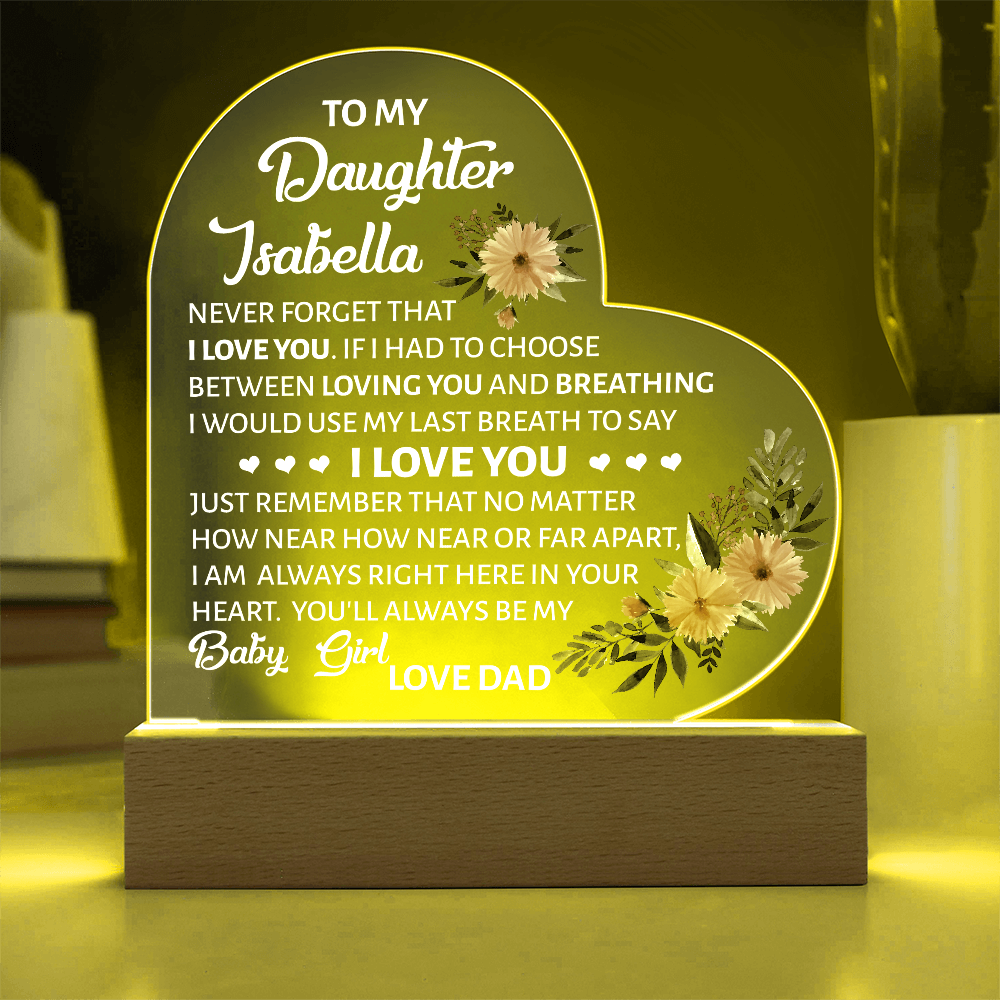 Your plaque will be crafted from premium acrylic with a professionally printed design for a polished look. It comes with a stylish wooden LED base, and you can choose between a USB plug-in option OR a cordless battery-operated option (requires 2 AAA batteries, not included). Both LED bases feature 7 vibrant colors, allowing the user to customize the lighting with various color changes and dynamic cycles.