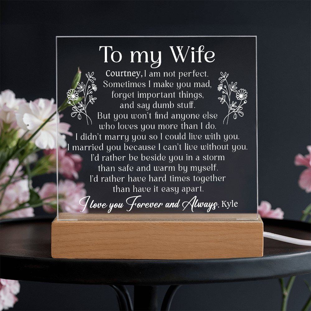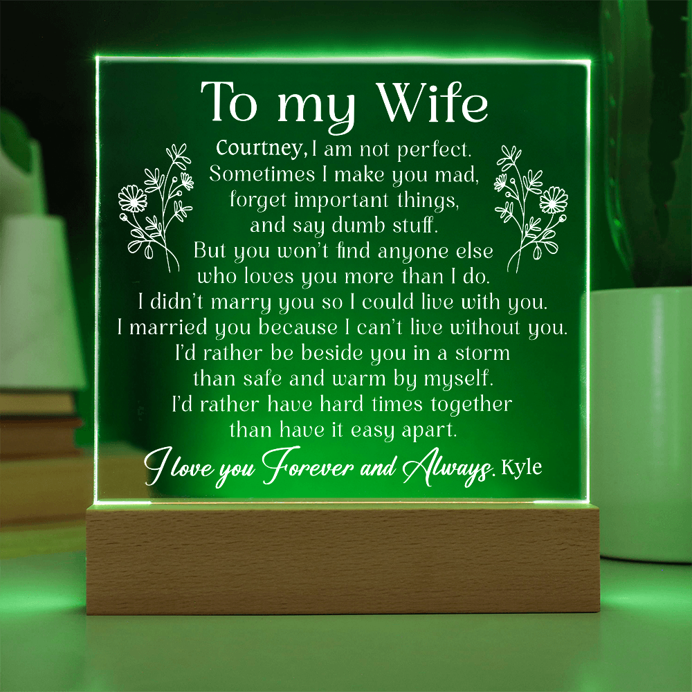 Your plaque will be crafted from premium acrylic with a professionally printed design for a polished look. It comes with a stylish wooden LED base, and you can choose between a USB plug-in option OR a cordless battery-operated option (requires 2 AAA batteries, not included). Both LED bases feature 7 vibrant colors, allowing the user to customize the lighting with various color changes and dynamic cycles.