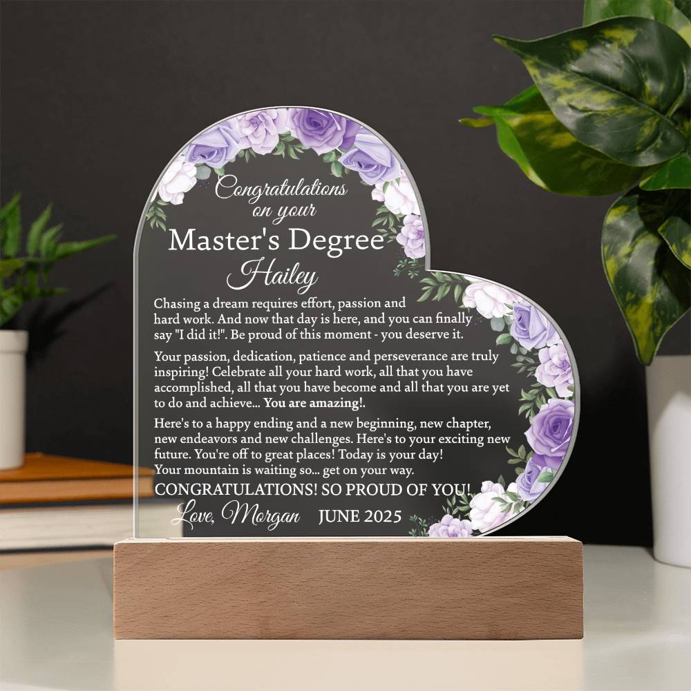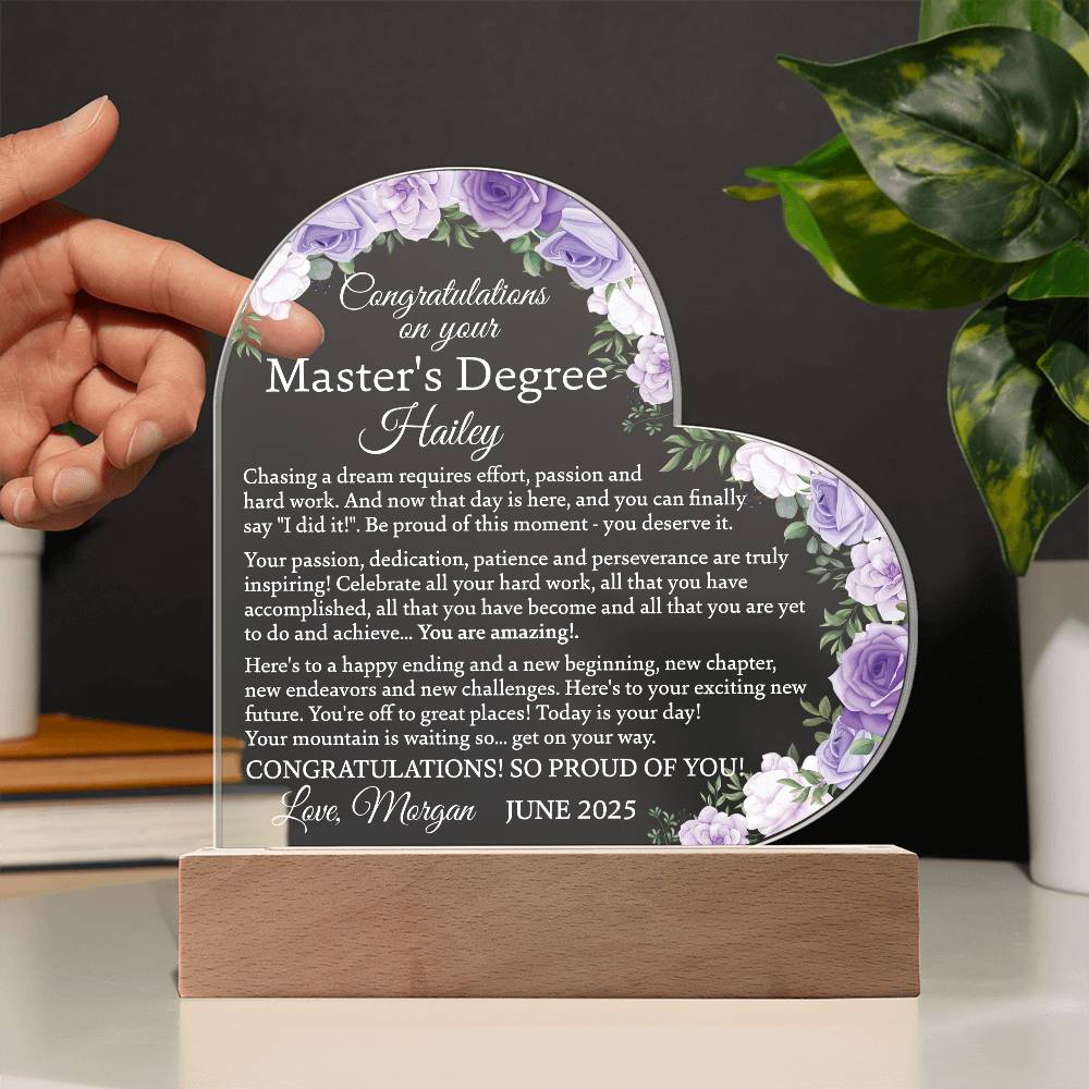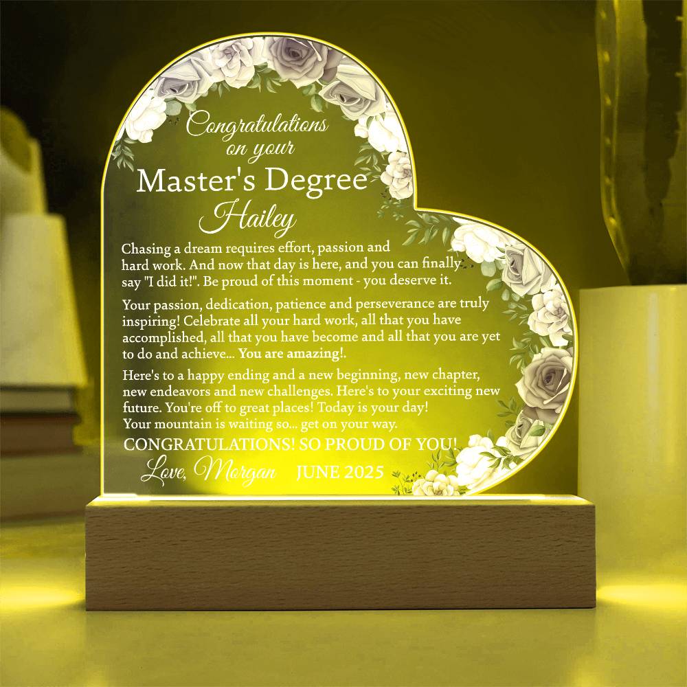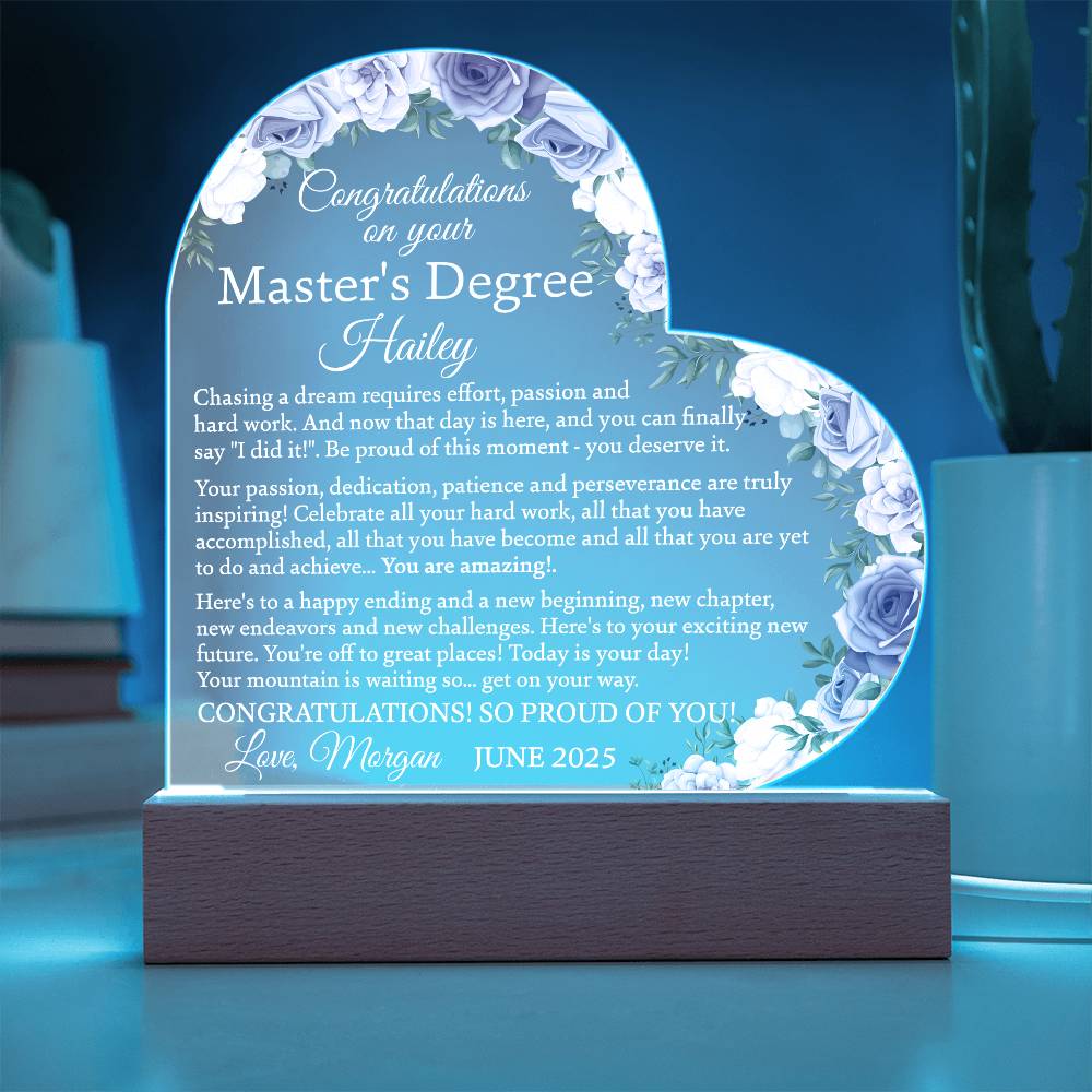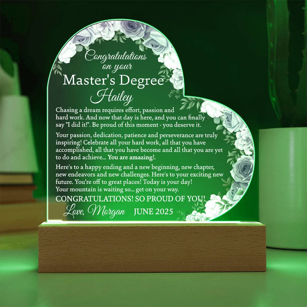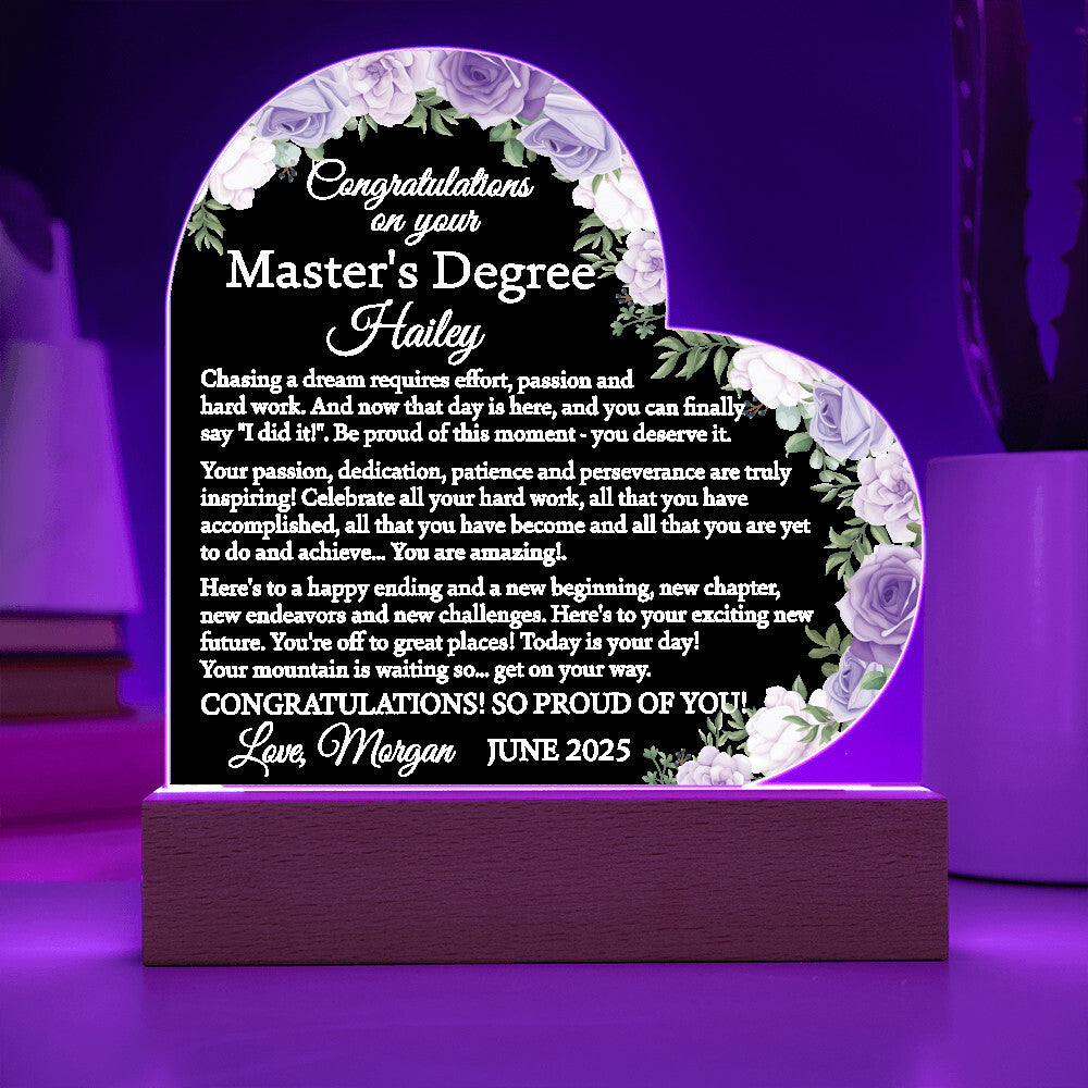 Your plaque will be crafted from premium acrylic with a professionally printed design for a polished look. It comes with a stylish wooden LED base, and you can choose between a USB plug-in option OR a cordless battery-operated option (requires 2 AAA batteries, not included). Both LED bases feature 7 vibrant colors, allowing the user to customize the lighting with various color changes and dynamic cycles.