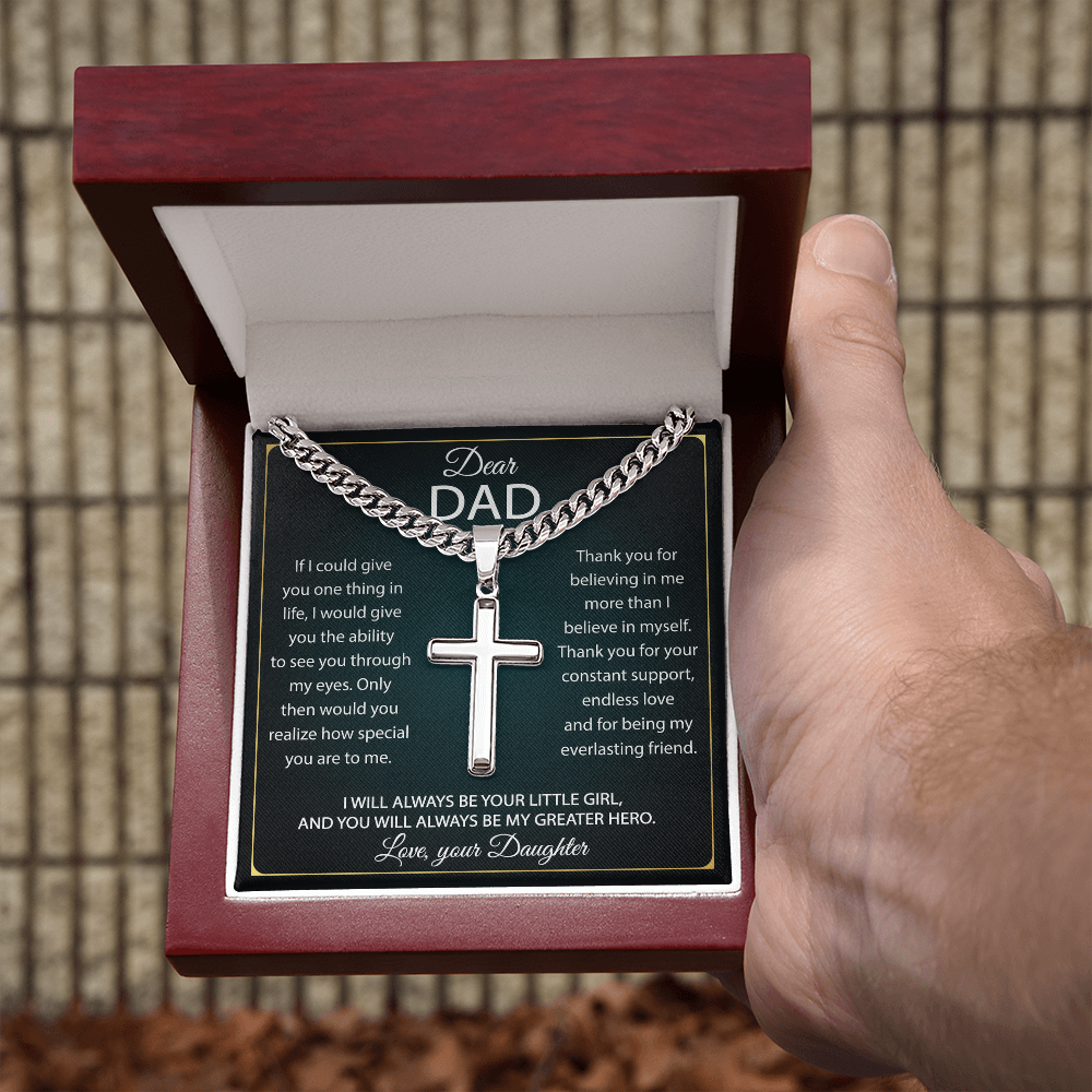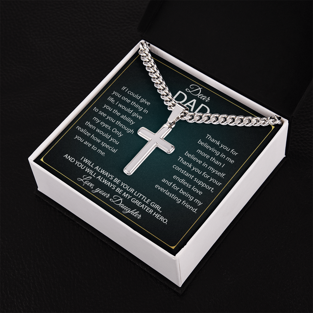 Wear your faith proudly with this Cuban Chain with Artisan Cross Necklace. Perfect for special occasions or everyday wear, this makes a wonderful gift idea for you or your loved one. Personalizing the back of the cross pendant will surely make this gift treasured for years to come!