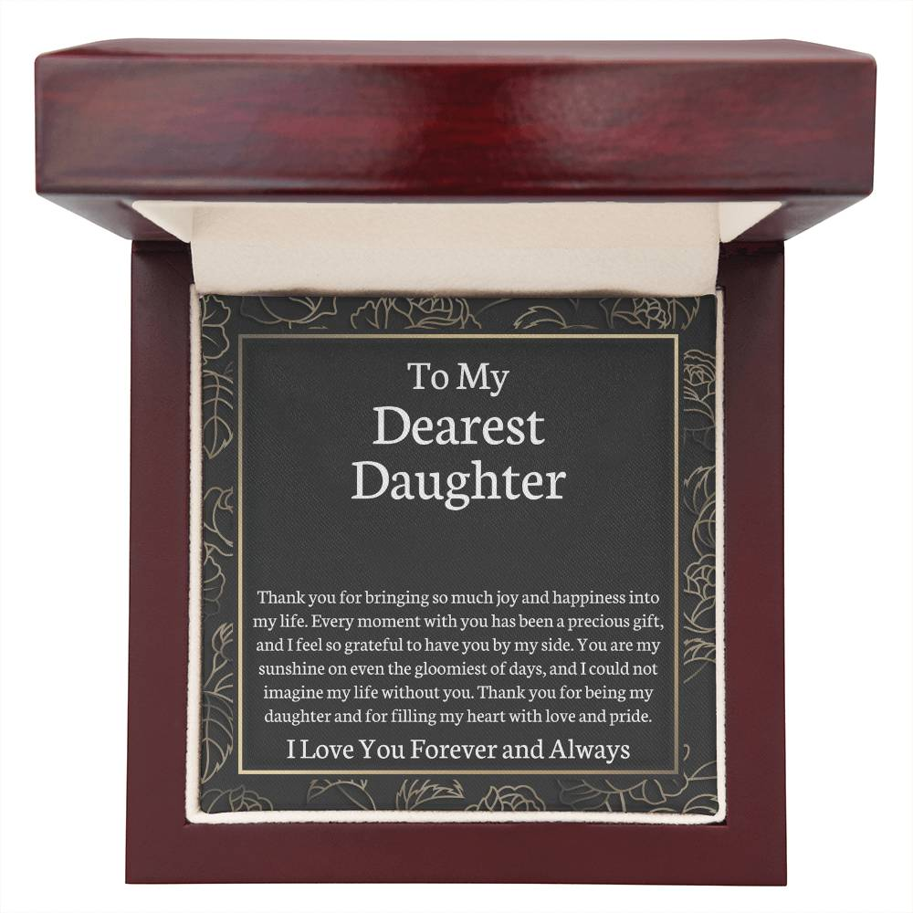 Your piece is lovingly packaged in a complimentary soft touch box for easy gifting. Elevate your presentation by upgrading to the mahogany style luxury box, which features a brilliant LED spotlight.