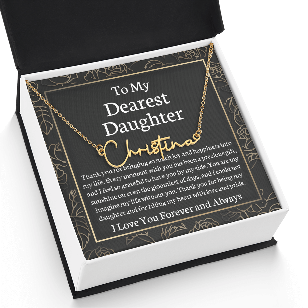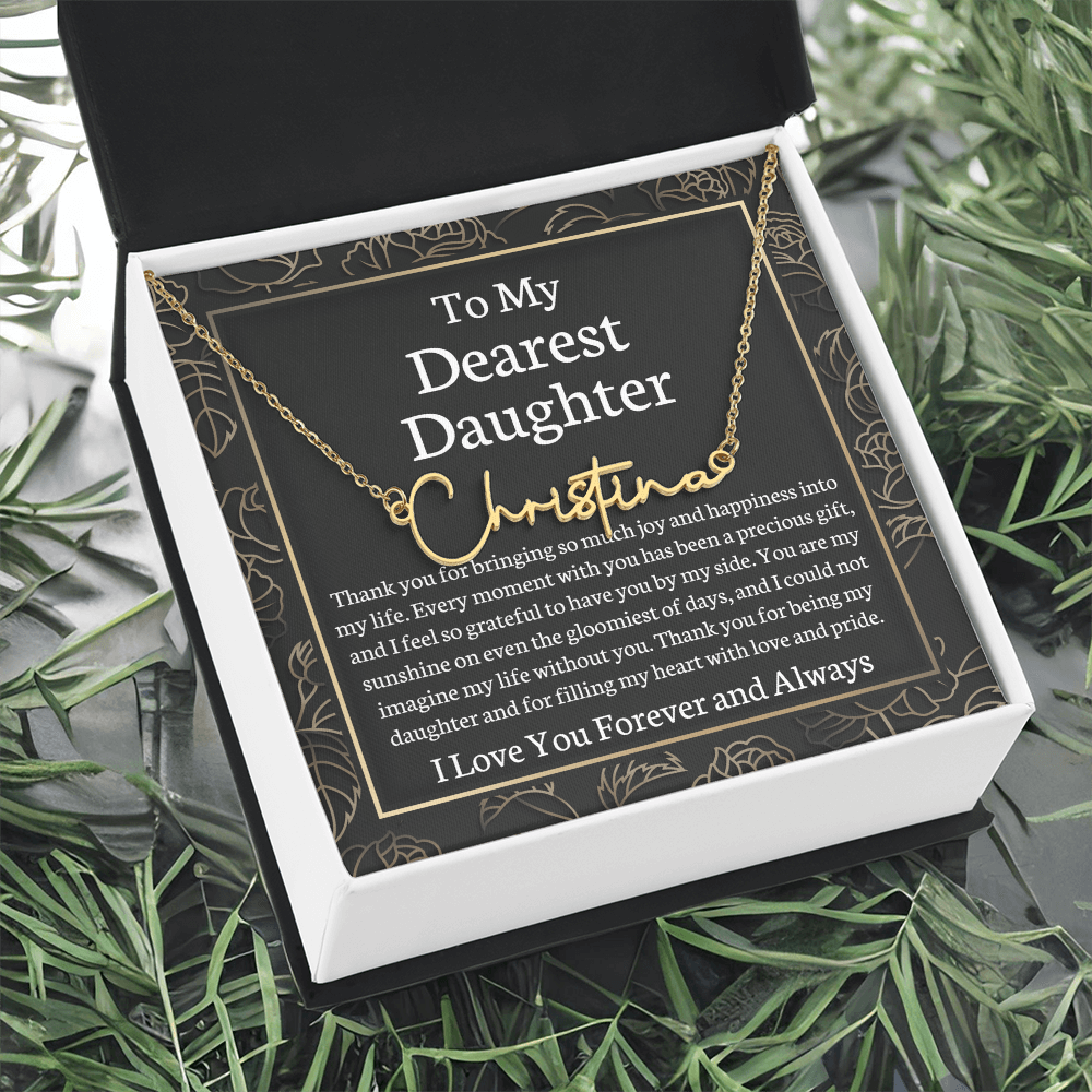 Looking to give your loved one a stylish and personalized gift that will melt their heart? Check out our Signature Style Name Necklace! This adorable custom necklace features a contemporary font that is sure to become a favorite accessory! From a heart-warming holiday present, special occasion gift, or just because, this unique necklace adds a trendy touch to any outfit