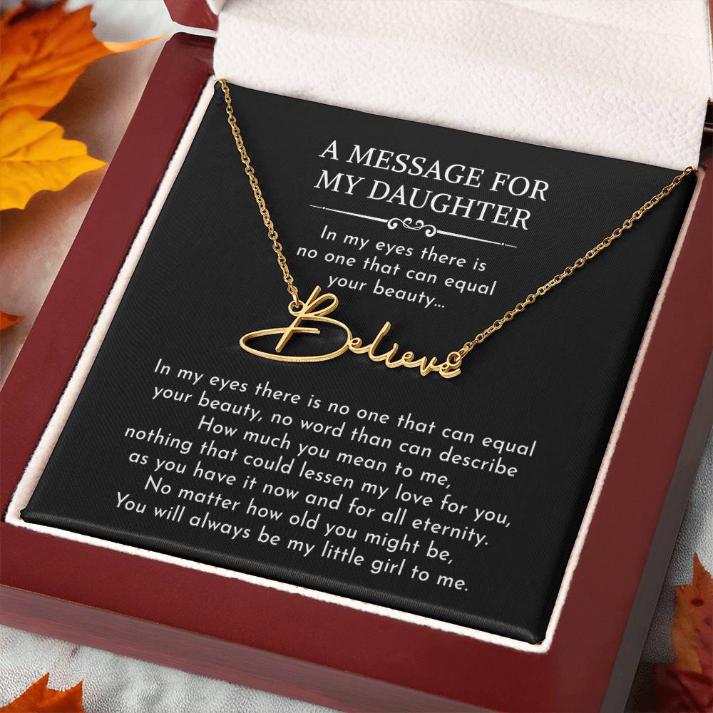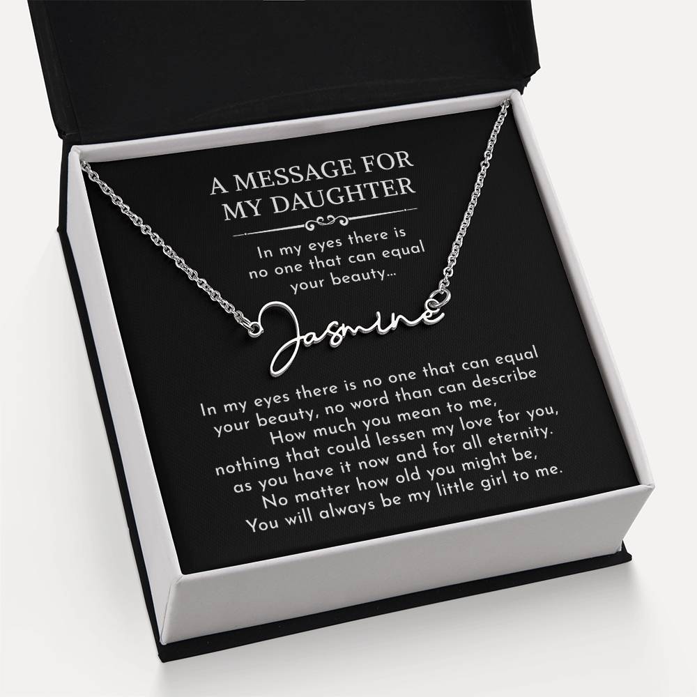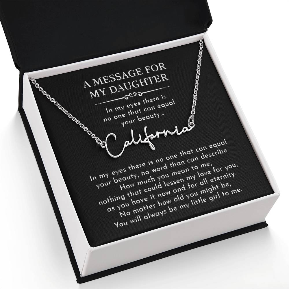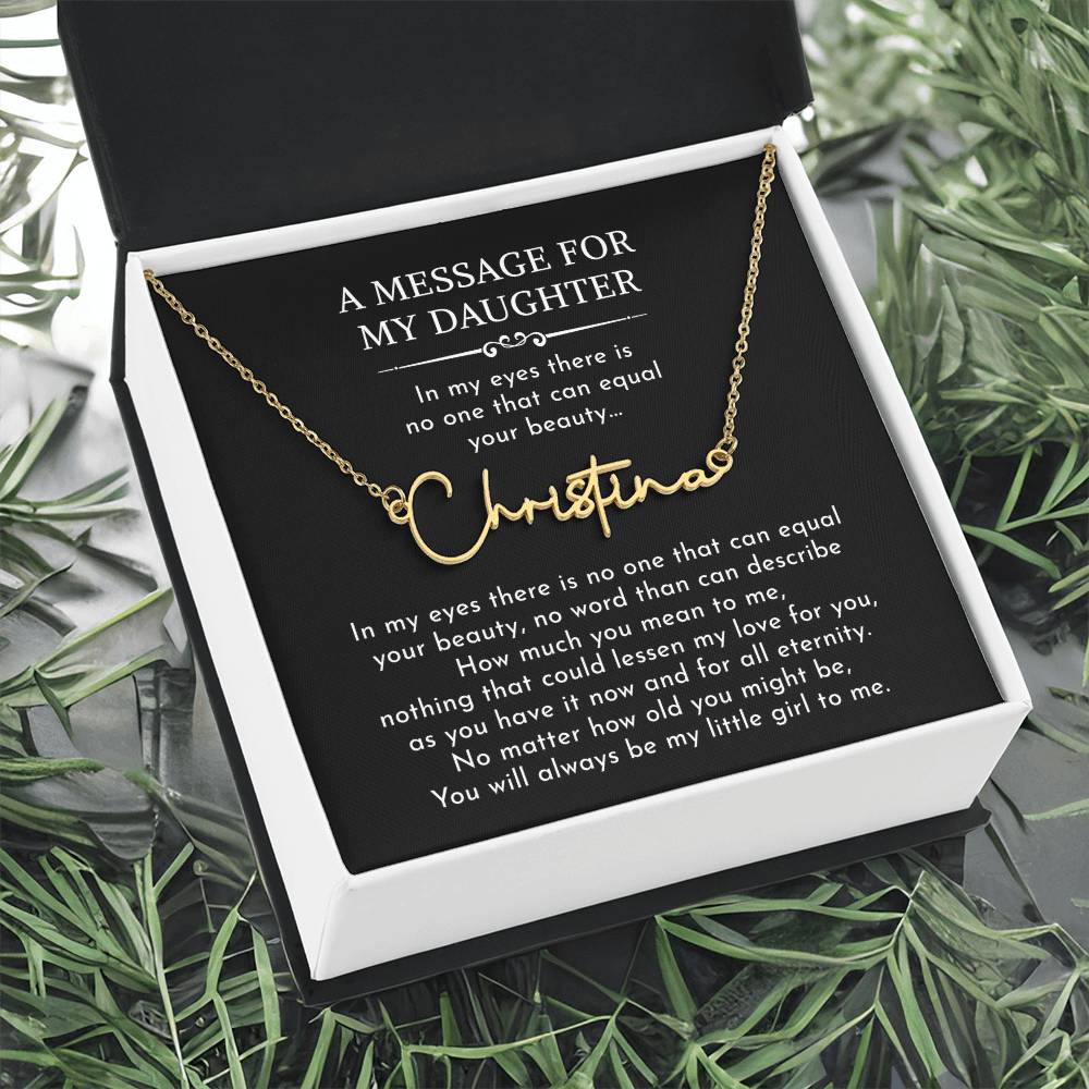 Looking to give your loved one a stylish and personalized gift that will melt their heart? Check out our Signature Style Name Necklace! This adorable custom necklace features a contemporary font that is sure to become a favorite accessory! From a heart-warming holiday present, special occasion gift, or just because, this unique necklace adds a trendy touch to any outfit