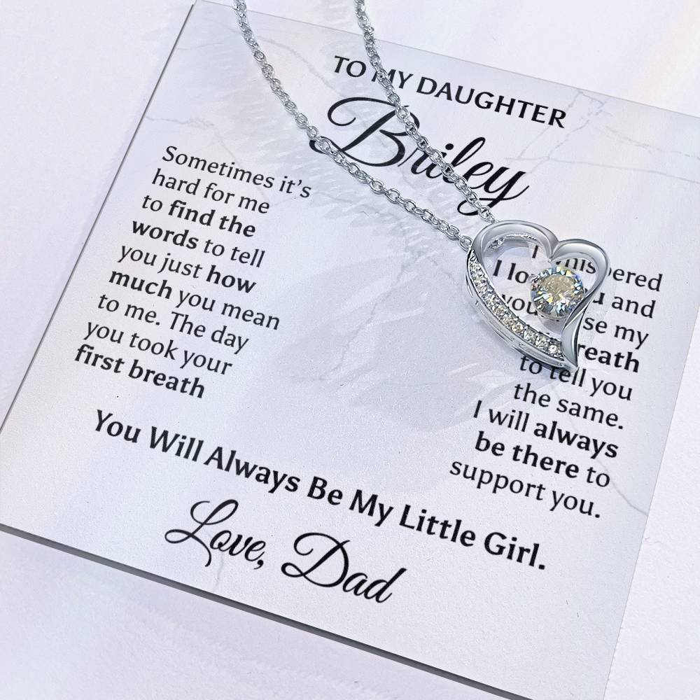The dazzling Forever Love Necklace is sure to make her heart melt! This necklace features a stunning 6.5mm CZ crystal surrounded by a polished heart pendant embellished with smaller crystals to add extra sparkle and shine. Beautifully crafted with either a white gold or yellow gold finish, be sure to give her a classic gift she can enjoy everyday.
