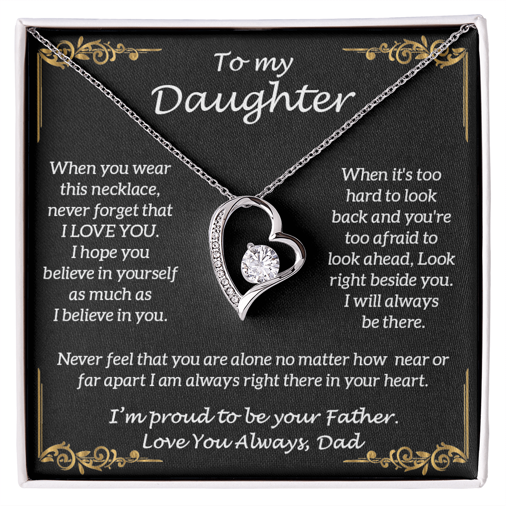 The dazzling Forever Love Necklace is sure to make her heart melt! This necklace features a stunning 6.5mm CZ crystal surrounded by a polished heart pendant embellished with smaller crystals to add extra sparkle and shine. Beautifully crafted with either a white gold or yellow gold finish, be sure to give her a classic gift she can enjoy everyday.