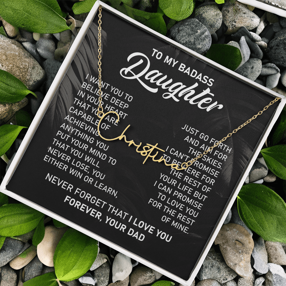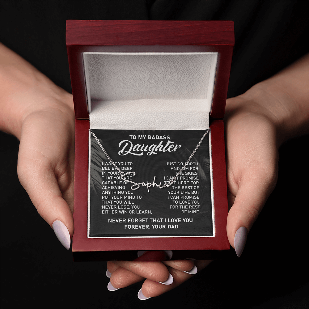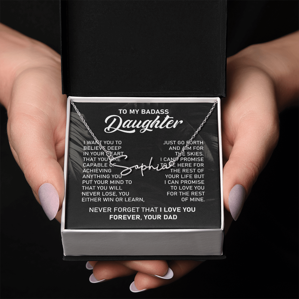 Looking to give your loved one a stylish and personalized gift that will melt their heart? Check out our Signature Style Name Necklace! This adorable custom necklace features a contemporary font that is sure to become a favorite accessory! From a heart-warming holiday present, special occasion gift, or just because, this unique necklace adds a trendy touch to any outfit