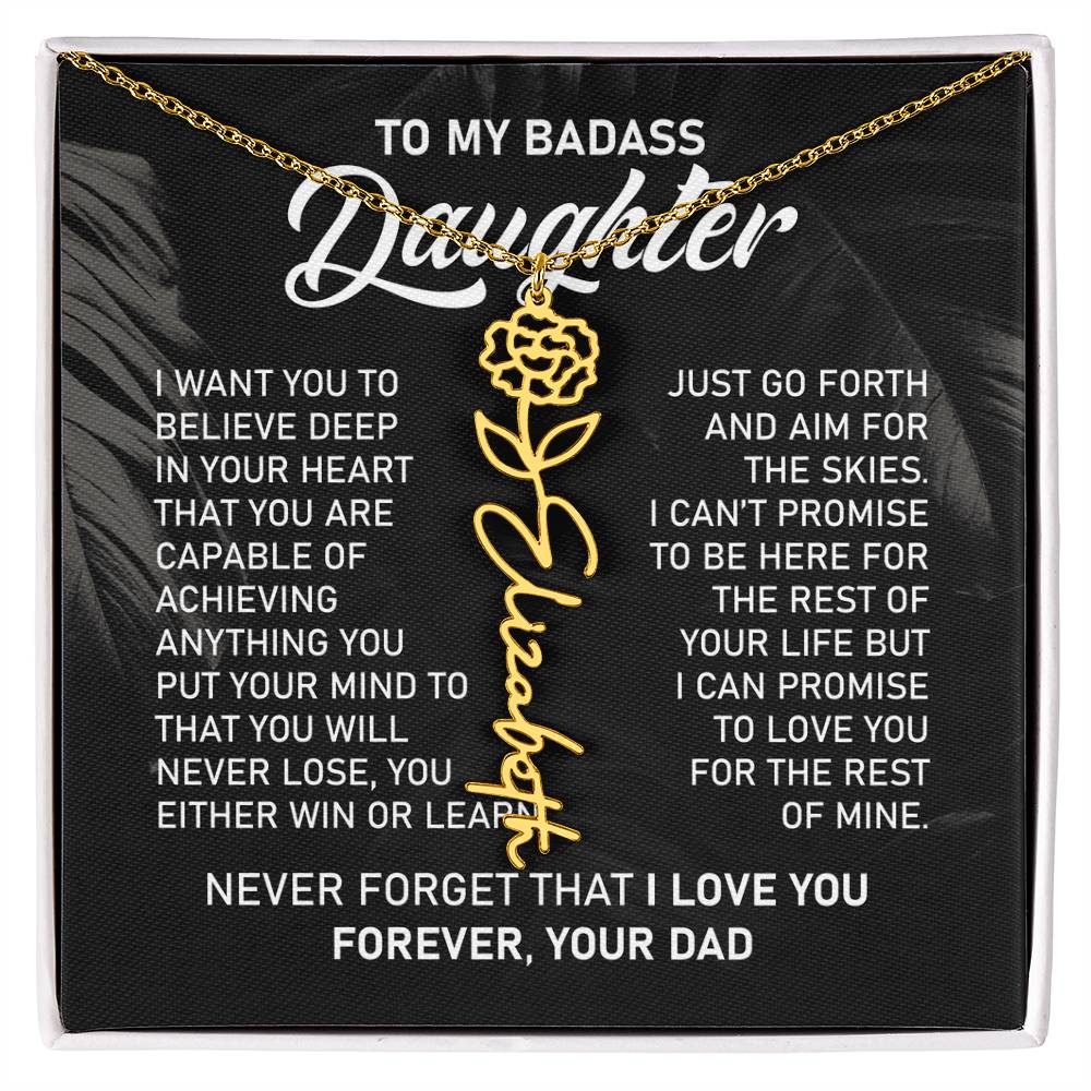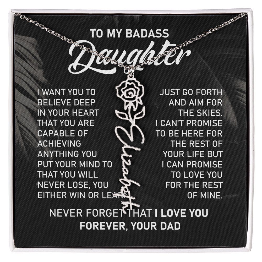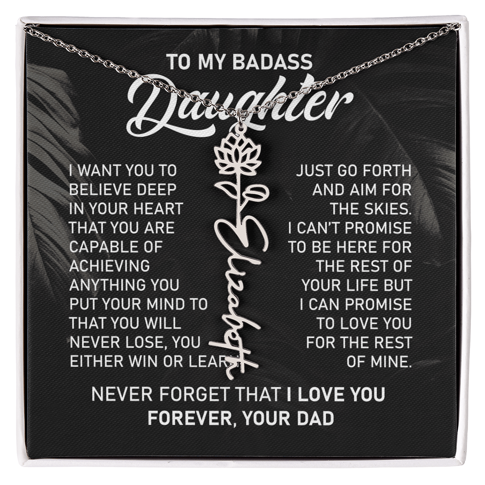 Need a gift that's as unique as she is? Then look no further than our Flower Name Necklace! With a customizable birth flower design, this necklace is a meaningful addition to any jewelry collection. Whether you're dressing up for a special occasion or simply want to add some flair to your everyday look, this necklace is perfect for your special someone. Handcrafted from high-quality materials, it is both stylish and durable. So why wait? Personalize your own floral name necklace today!