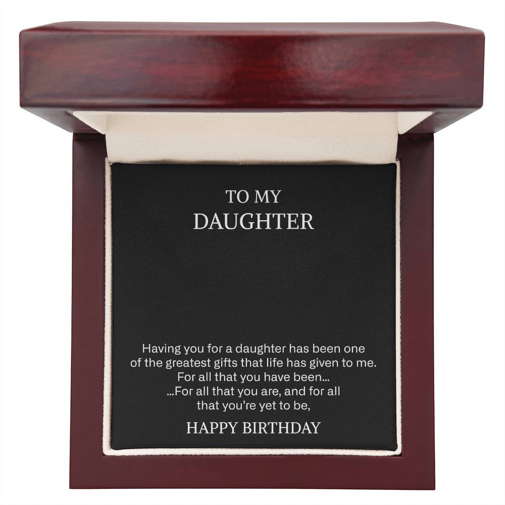 Your piece is lovingly packaged in a complimentary soft touch box for easy gifting. Elevate your presentation by upgrading to the mahogany style luxury box, which features a brilliant LED spotlight.