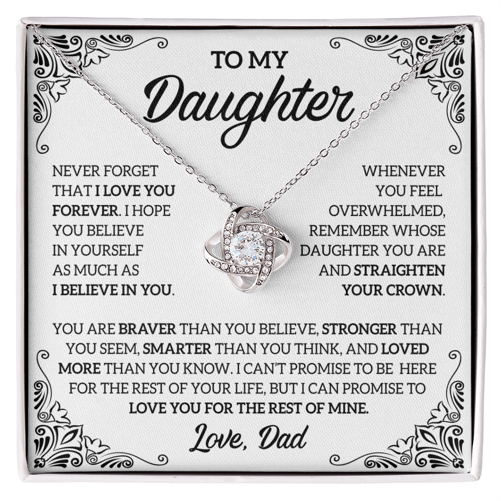 Imagine her reaction receiving this beautiful Love Knot Necklace. Representing an unbreakable bond between two souls, this piece features a beautiful pendant embellished with premium cubic zirconia crystals. Surprise your loved one with this gorgeous gift today!