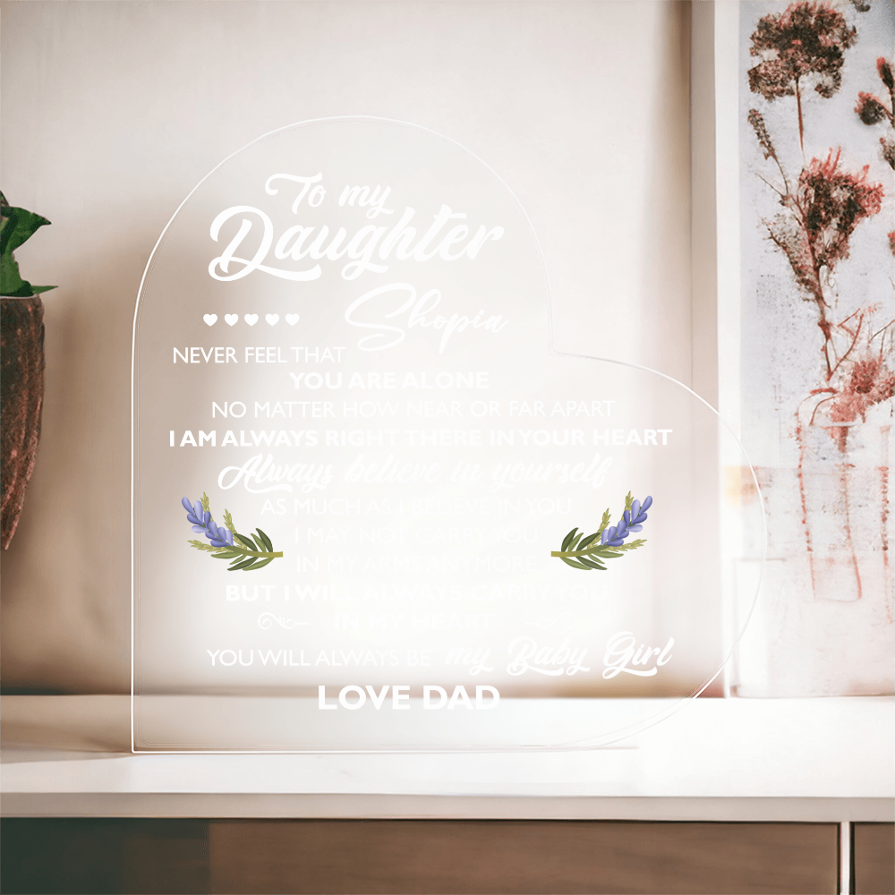 Show your loved ones how much you care with our Printed Heart Shaped Acrylic Plaque! Crafted with precision and care, this stunning piece of art is a perfect expression of your heartfelt emotions. Made from premium quality acrylic, it boasts a crystal-clear finish that catches the light, adding a touch of elegance to any space. The vibrant printed design creates a unique gift giving experience that will leave your special someone speechless! This is the ideal present for your beloved partner, family members, or dear friends on special occasions like anniversaries, weddings, birthdays, or Valentine's Day. Let your loved ones know how much they mean to you by purchasing today!