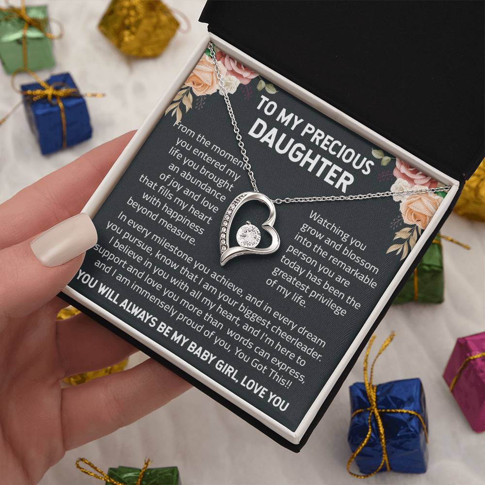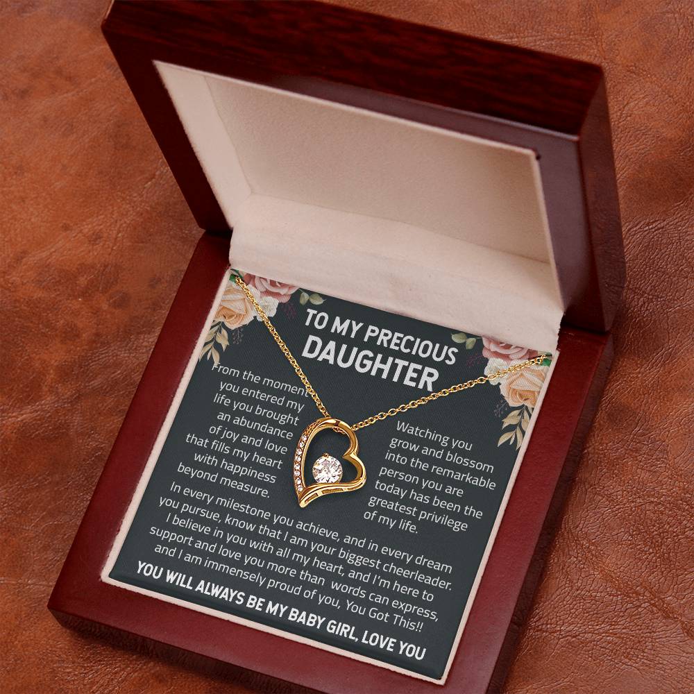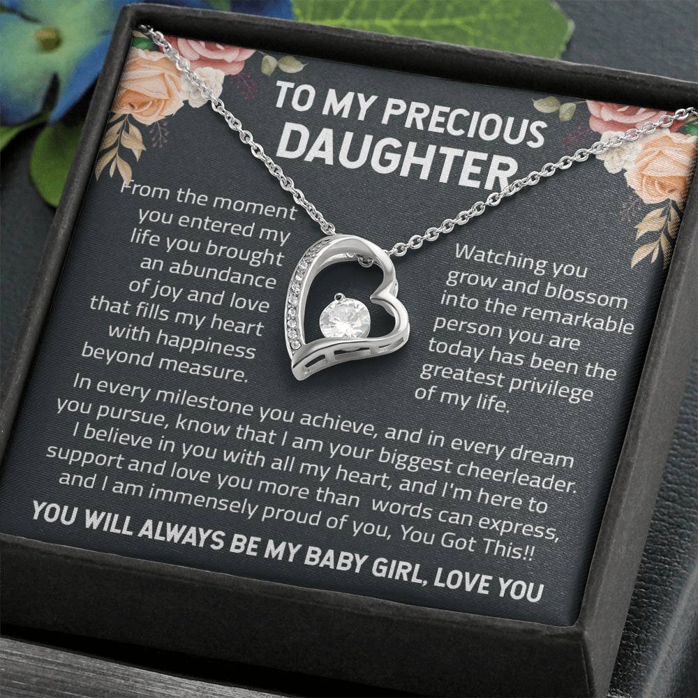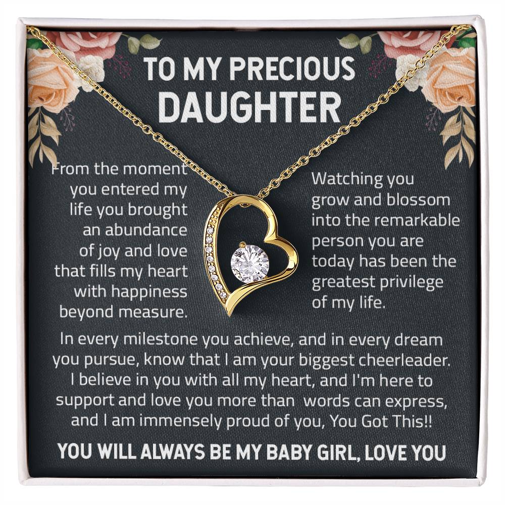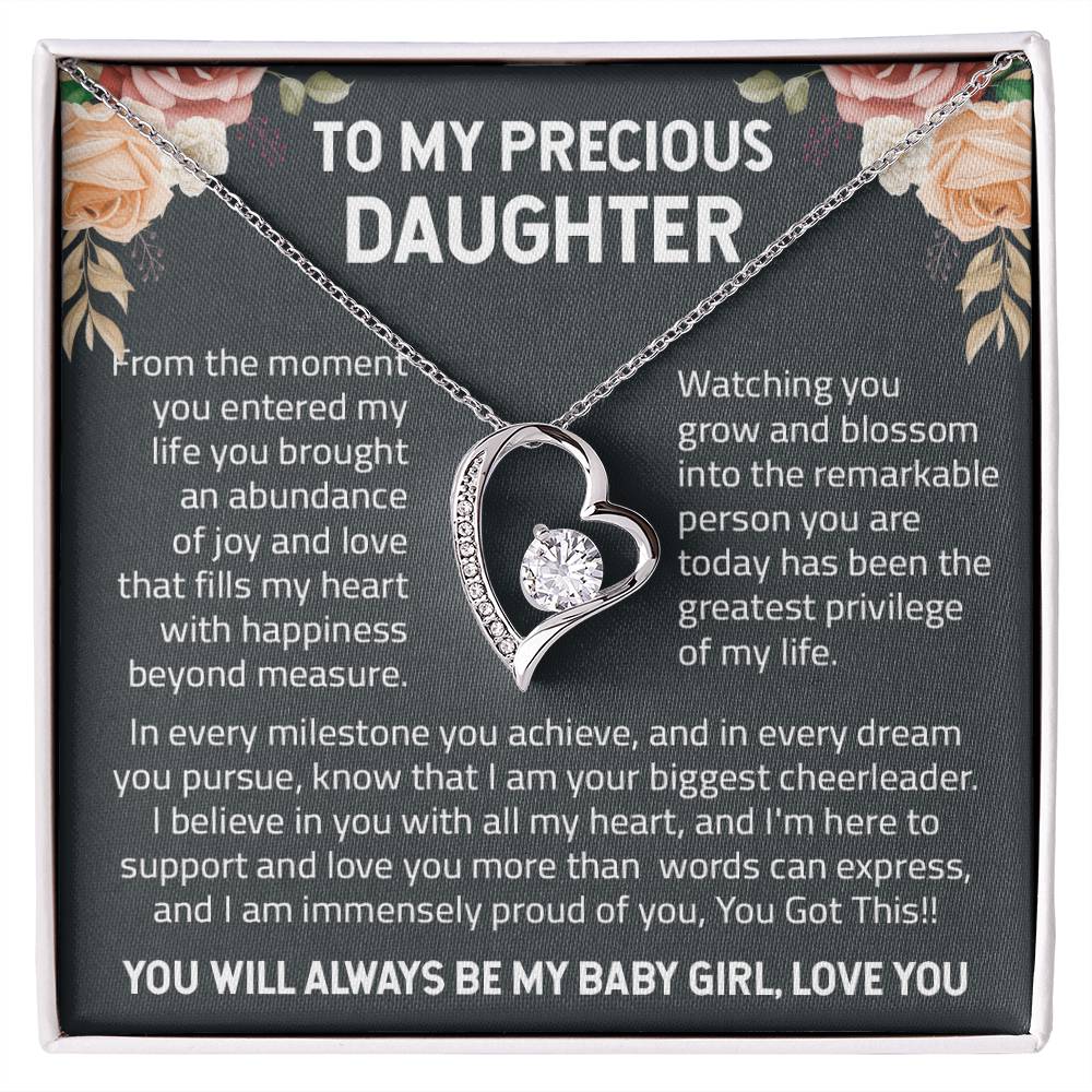 The dazzling Forever Love Necklace is sure to make her heart melt! This necklace features a stunning 6.5mm CZ crystal surrounded by a polished heart pendant embellished with smaller crystals to add extra sparkle and shine. Beautifully crafted with either a white gold or yellow gold finish, be sure to give her a classic gift she can enjoy everyday.