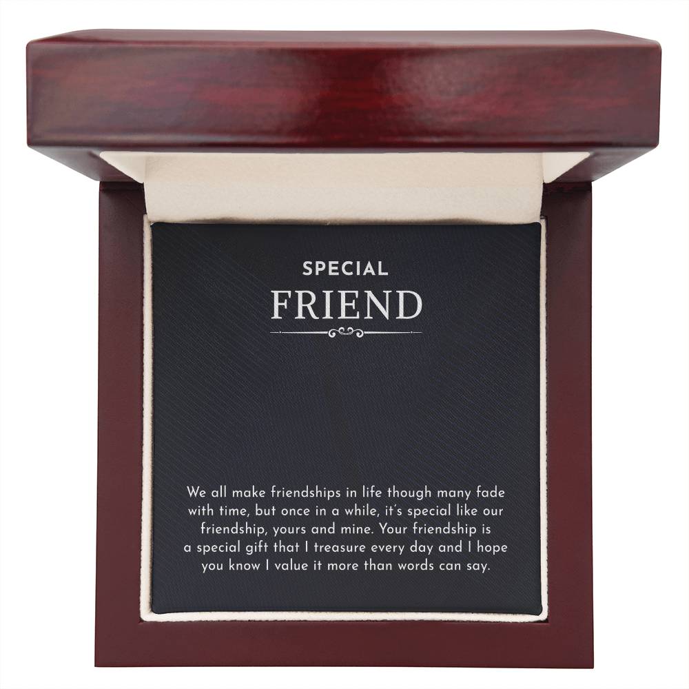 Your piece is lovingly packaged in a complimentary soft touch box for easy gifting. Elevate your presentation by upgrading to the mahogany style luxury box, which features a brilliant LED spotlight.