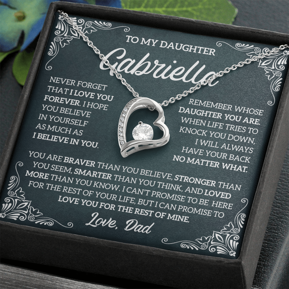 The dazzling Forever Love Necklace is sure to make her heart melt! This necklace features a stunning 6.5mm CZ crystal surrounded by a polished heart pendant embellished with smaller crystals to add extra sparkle and shine. Beautifully crafted with either a white gold or yellow gold finish, be sure to give her a classic gift she can enjoy everyday.